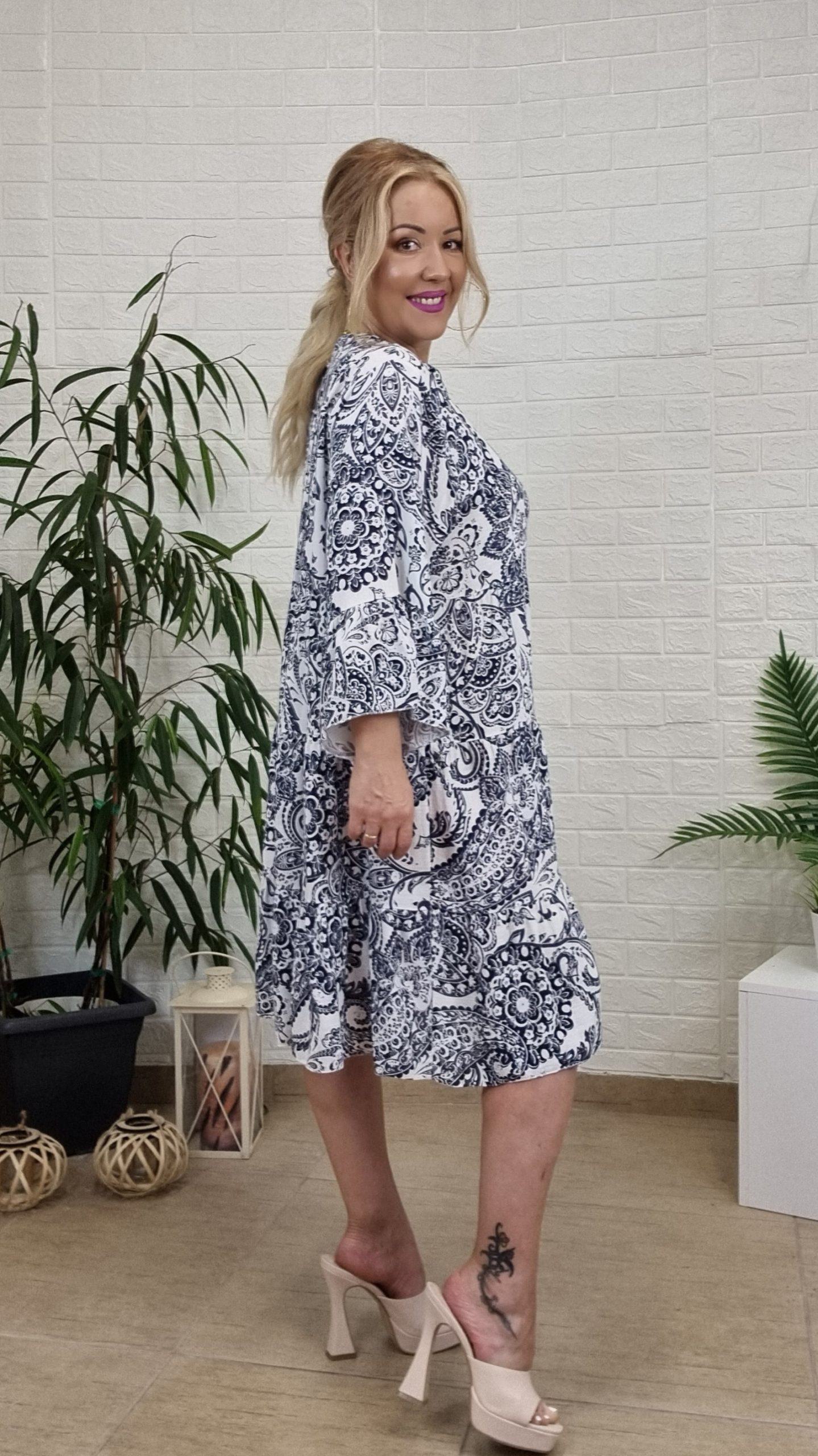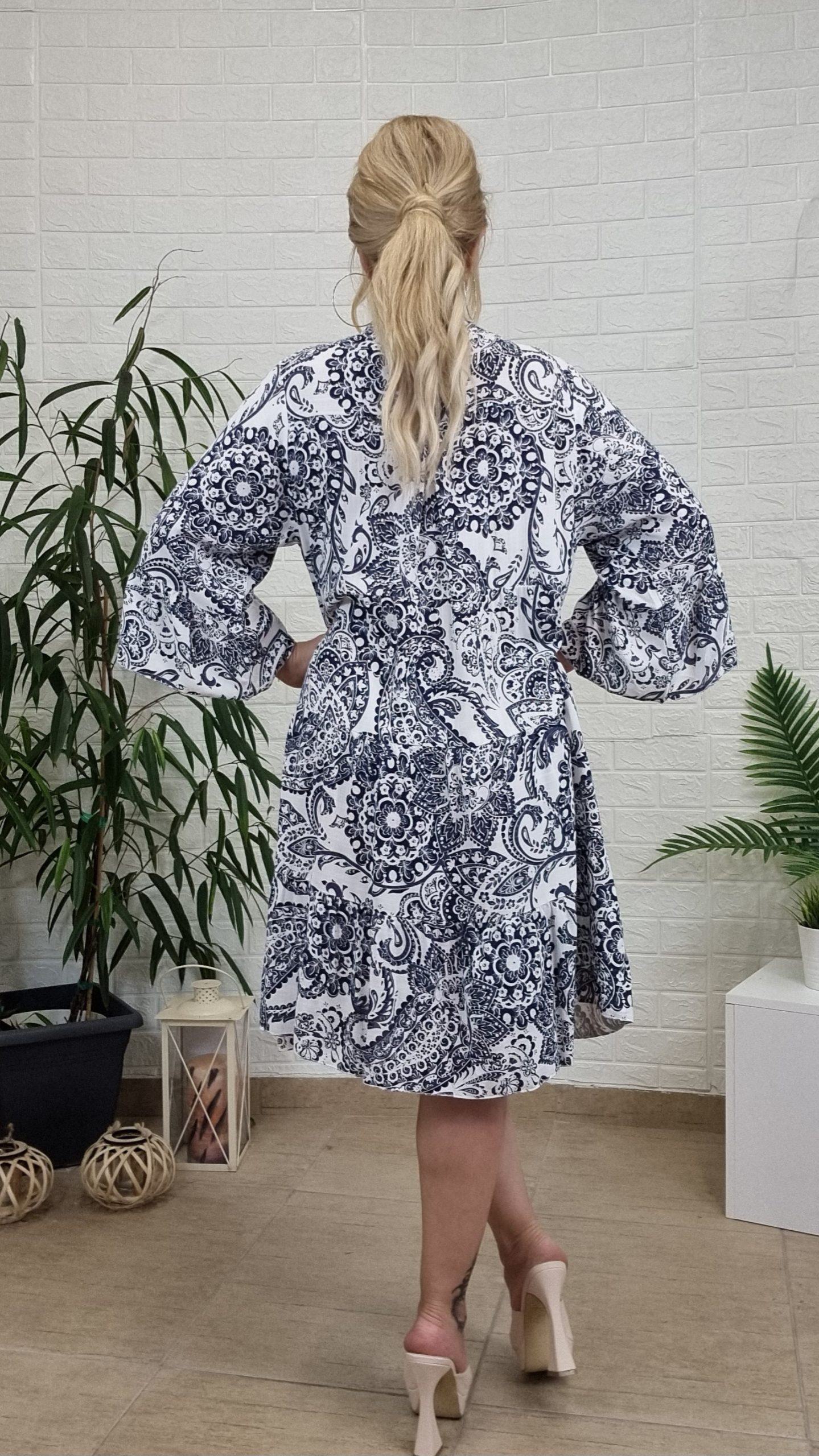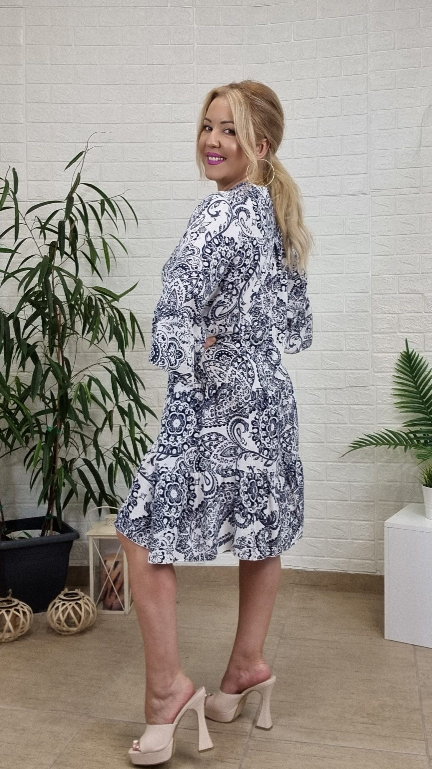 • Φόρεμα boho σχέδιο λαχούρ μπλέ σκούρο