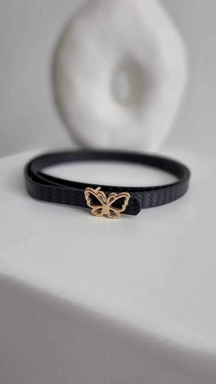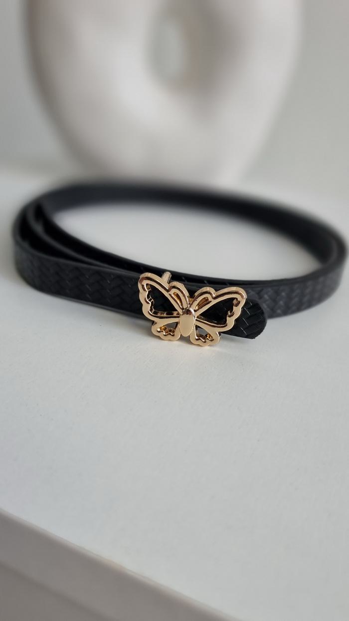 • Υπέροχη ζώνη δερματίνη χρώμα μαύρη με χρυσή αγκράφα σχέδιο πεταλούδα.
