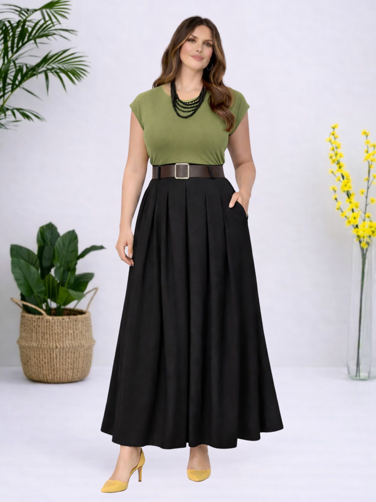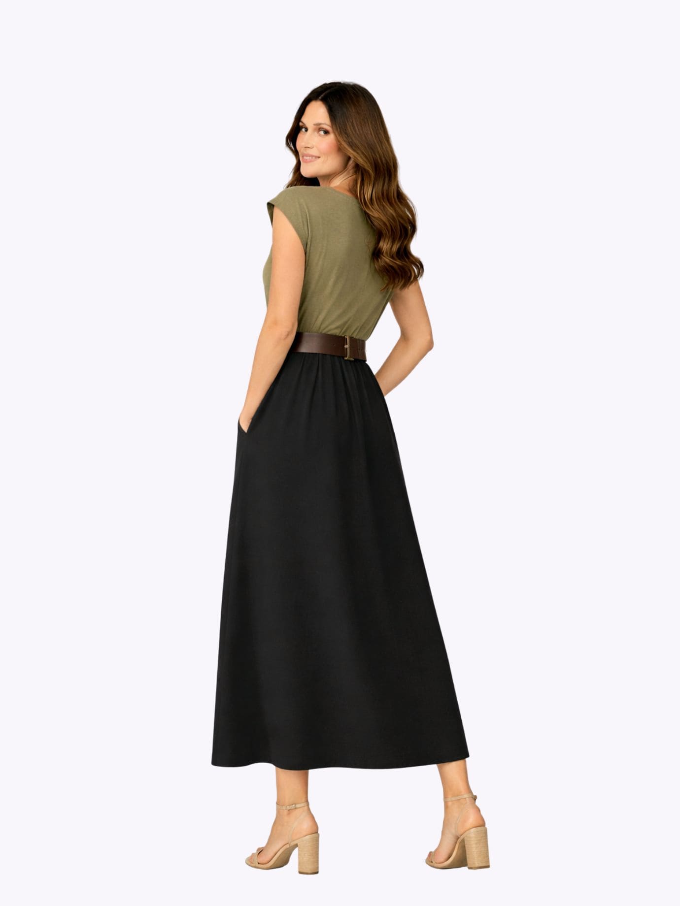 Φόρεμα Αμάνικο Με Φαρδιά Ζώνη-Χακί