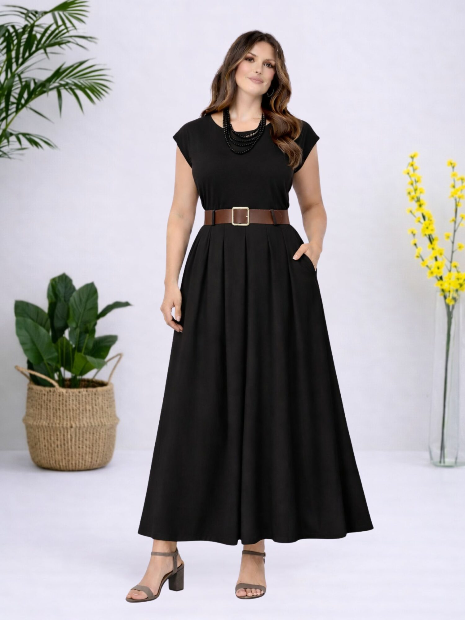 Φόρεμα Αμάνικο Με Φαρδιά Ζώνη-Μαύρο