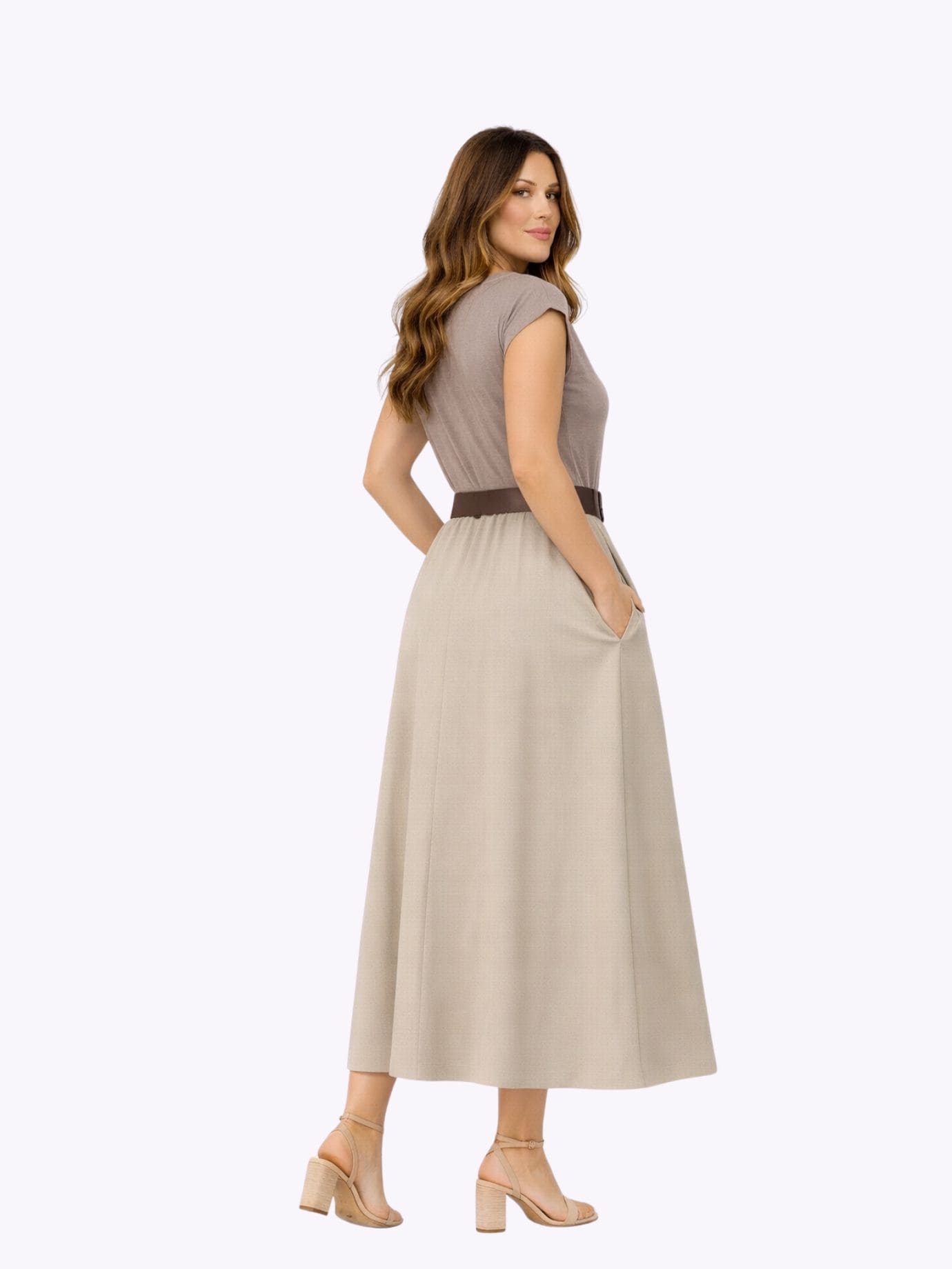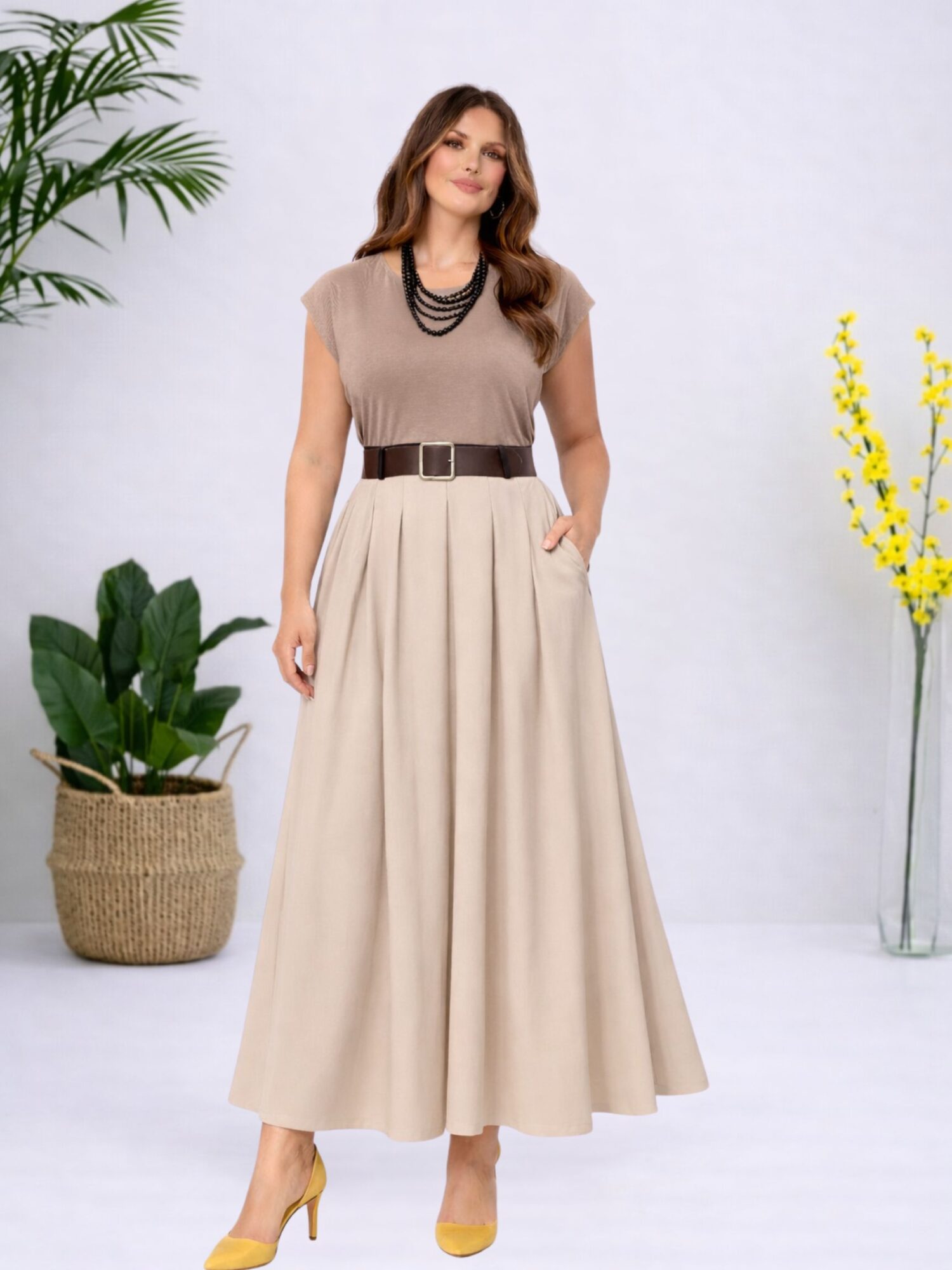 Κομψό φόρεμα για καθημερινές και πιο προσεγμένες εμφανίσεις Φοριέται εύκολα και αναδεικνύει τη σιλουέτα χωρίς να πιέζει. Styling tip : Παίξε με αξεσουάρ και παπούτσια για να αλλάξεις ύφος χωρίς κόπο. Διαθέτει ζώνη Σύνθεση: 28% visc 69% pol 3% elast- 100%pol Εφαρμογή: Κανονική