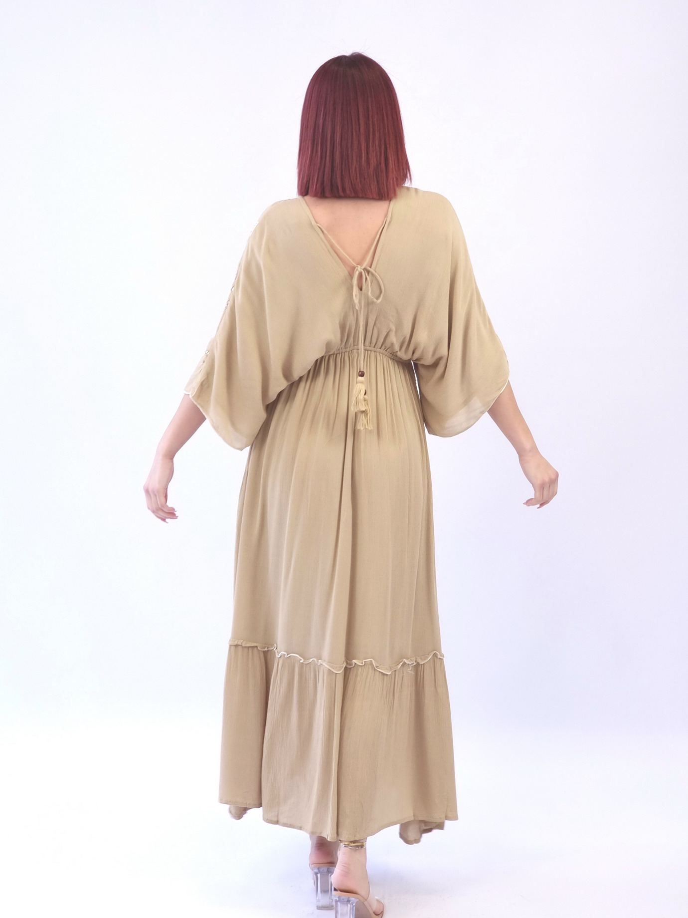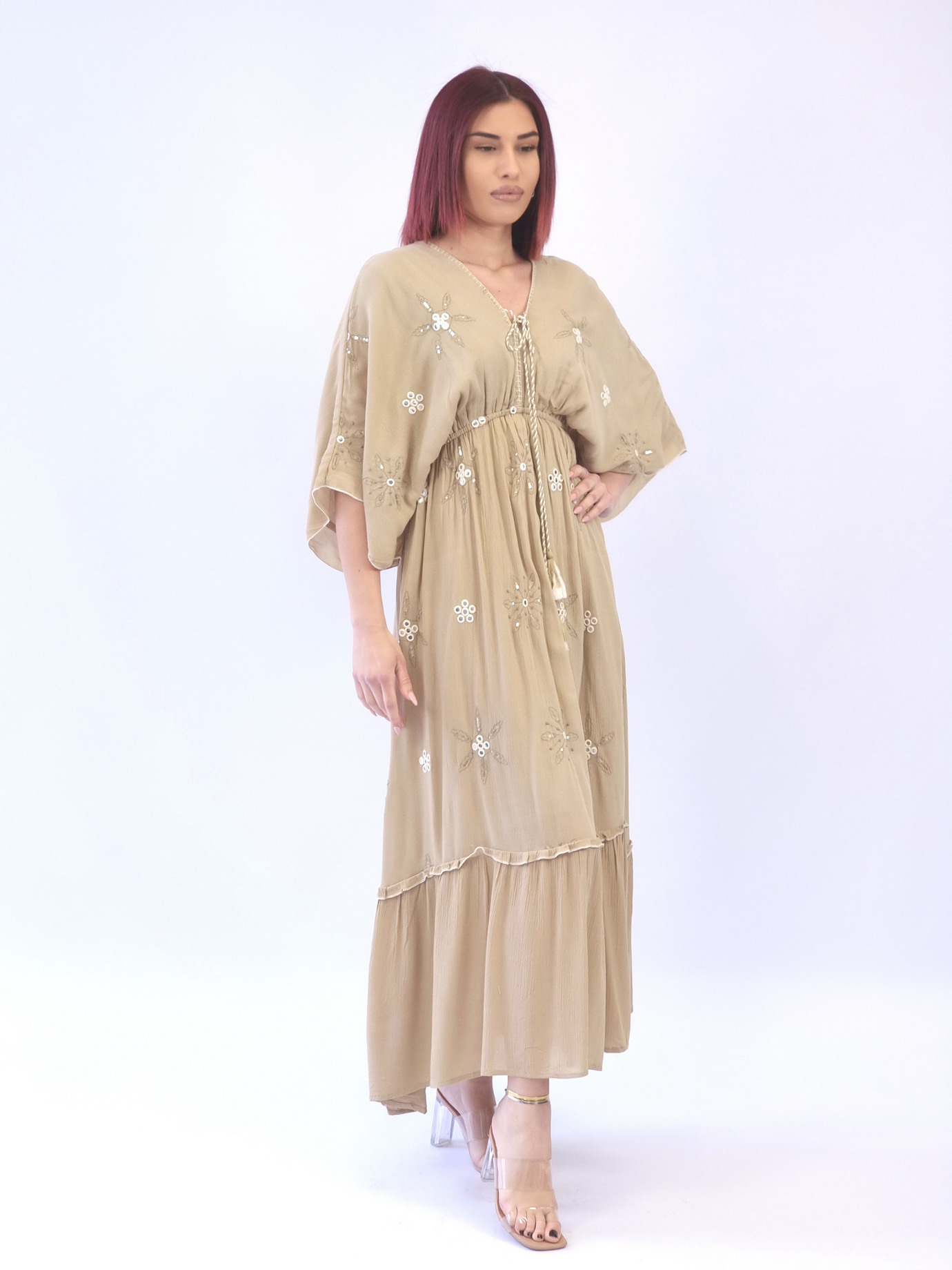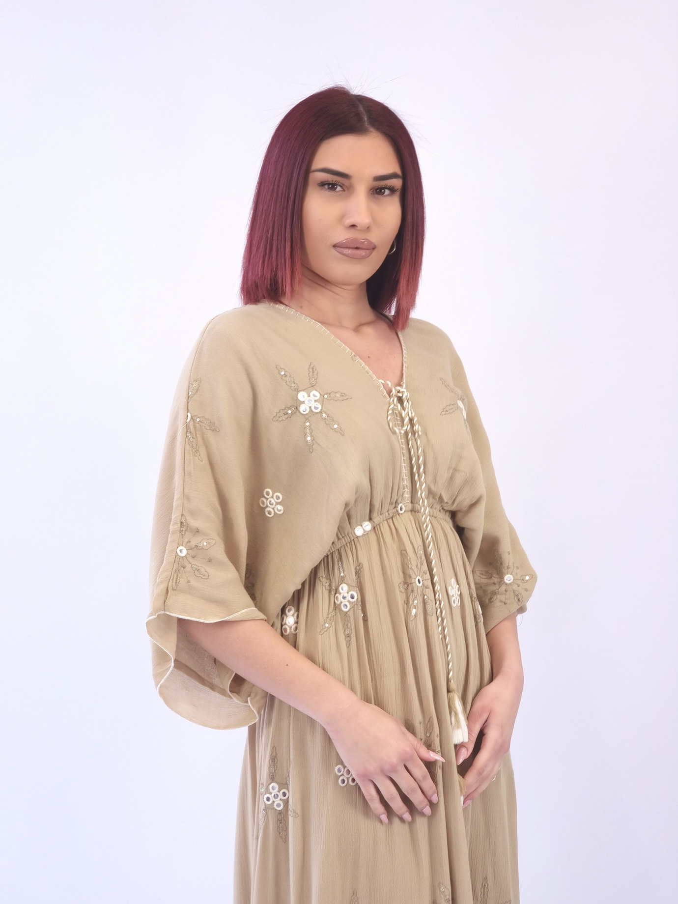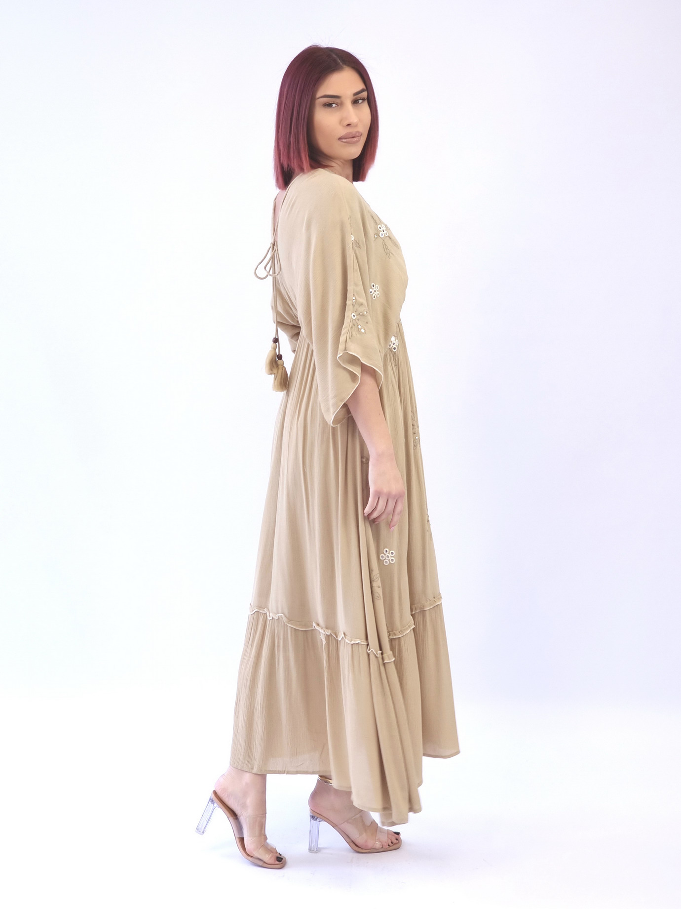 Φόρεμα boho κεντημένες λεπτομέρειες-Μπέζ