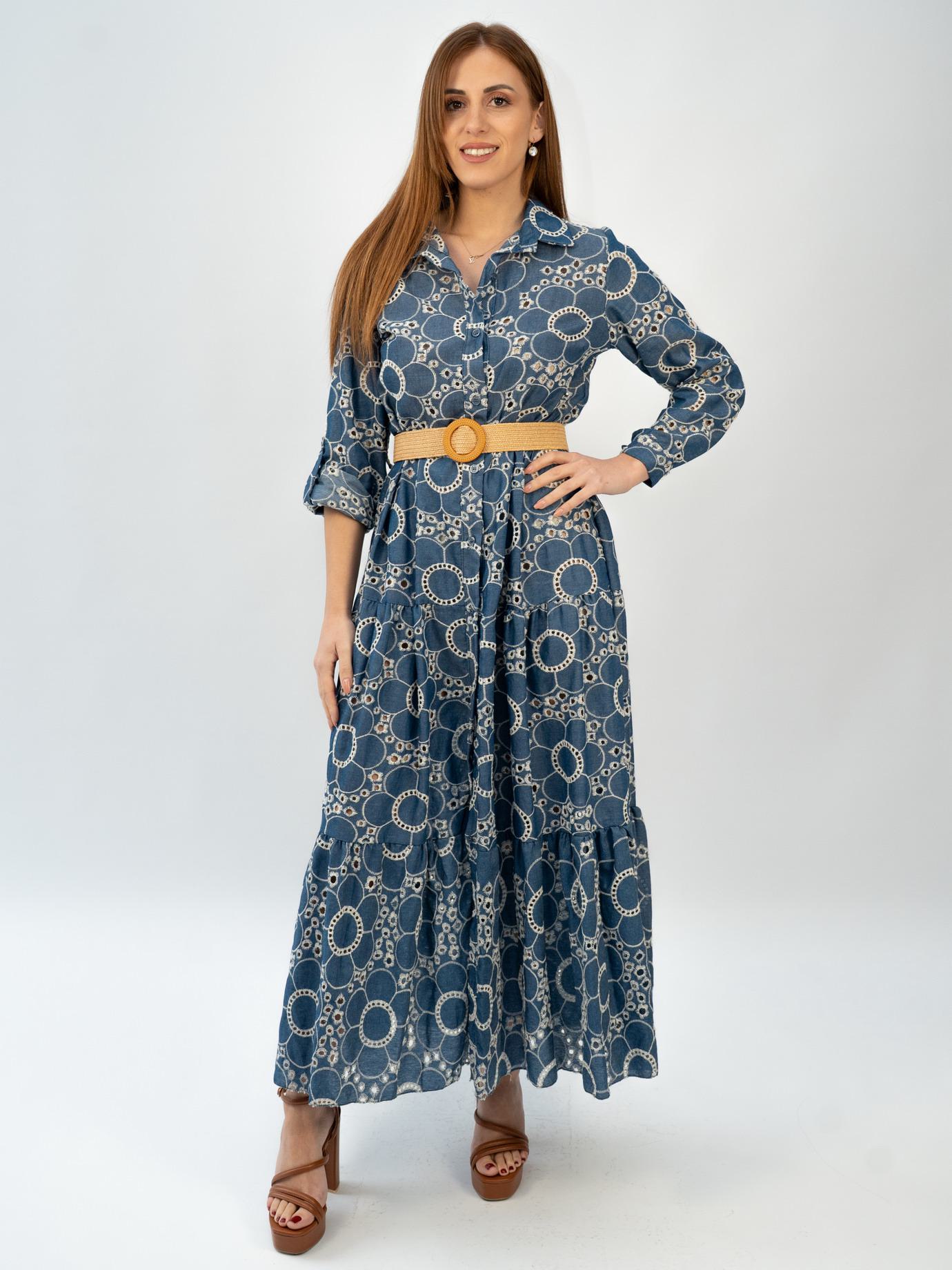 Φόρεμα κιπρούρ σεμιζιέ – Μπλέ