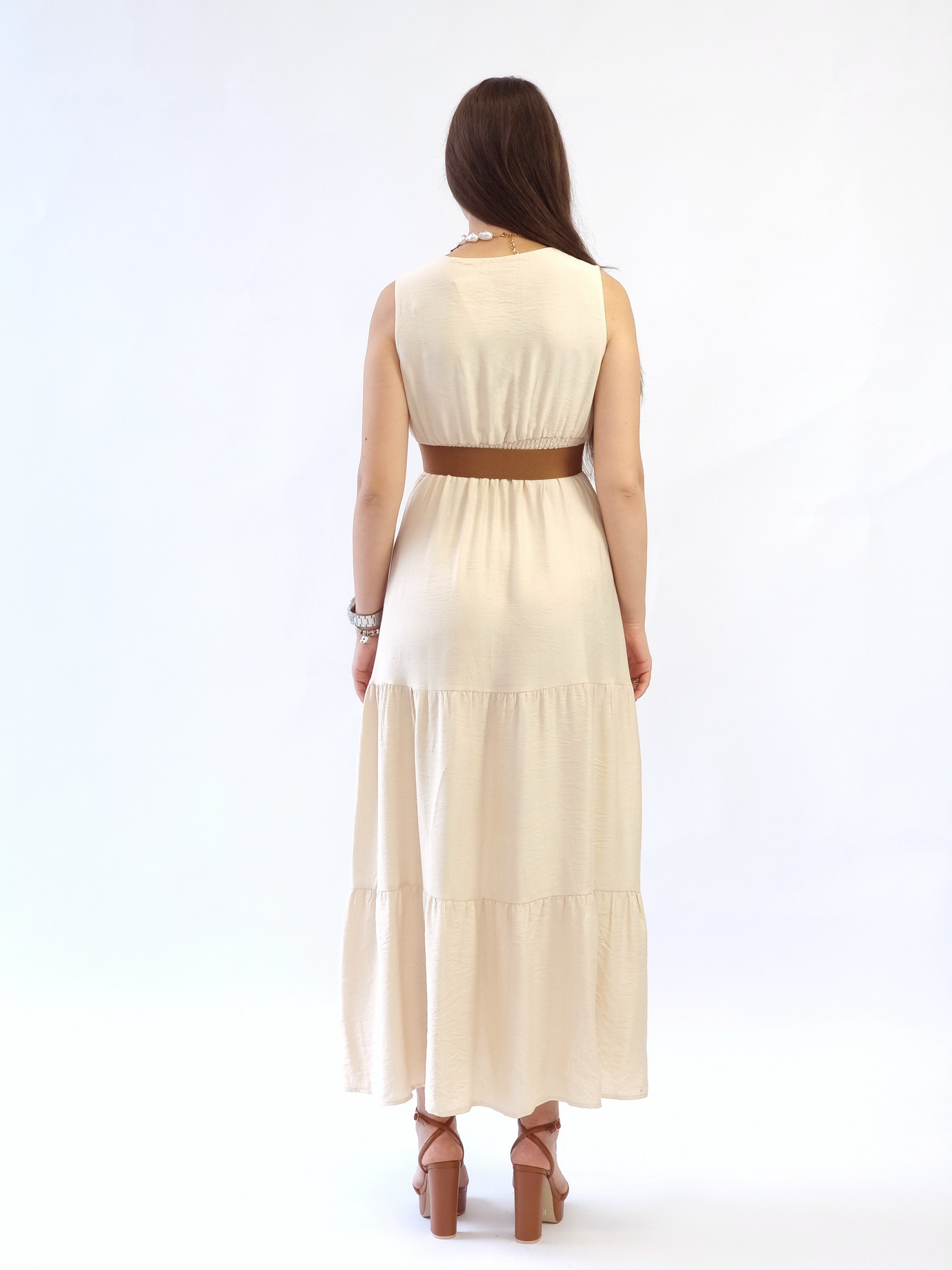 • Εκρού φόρεμα μάξι με κεντημένες εκρού λεπτομέρειες