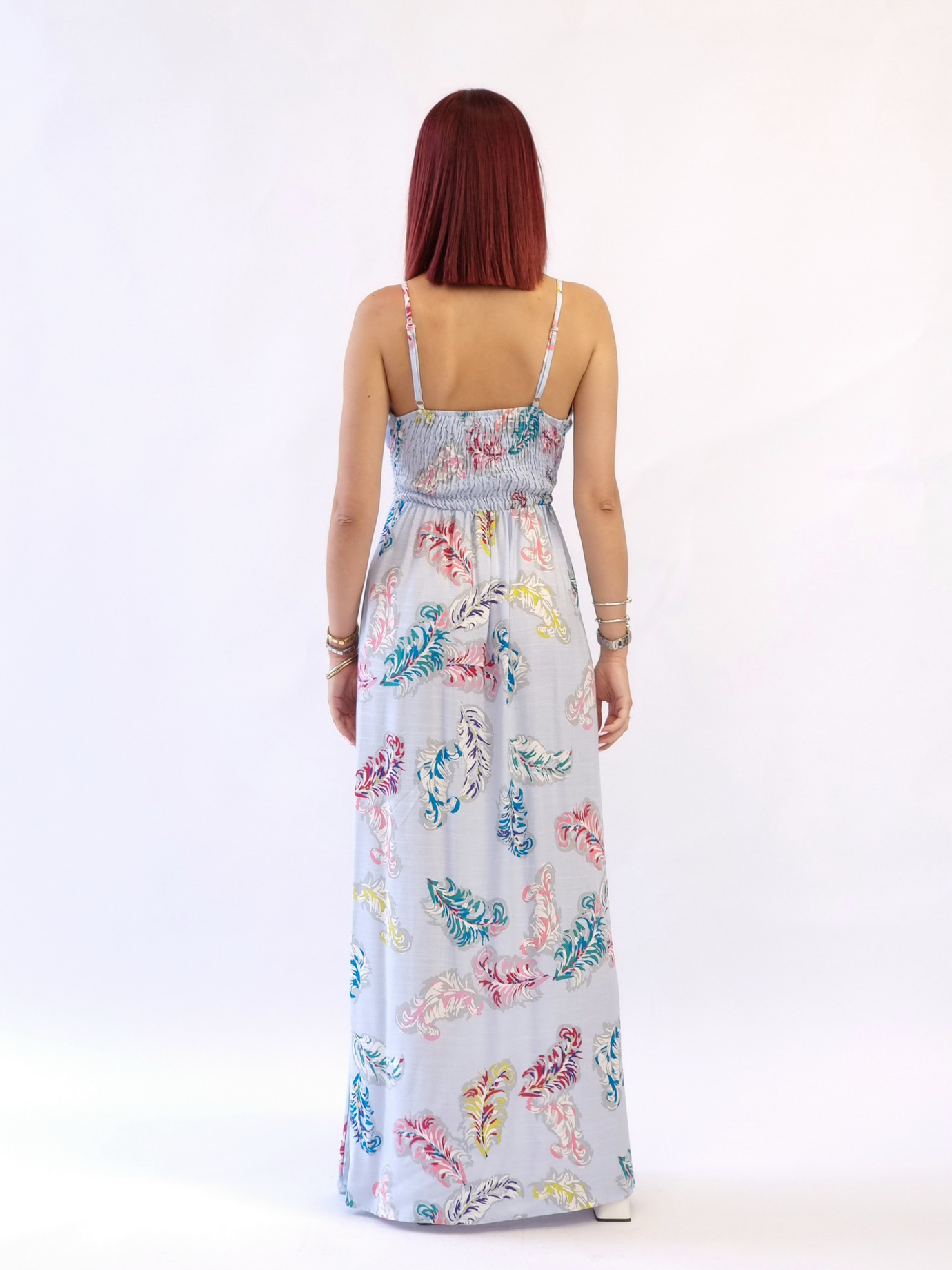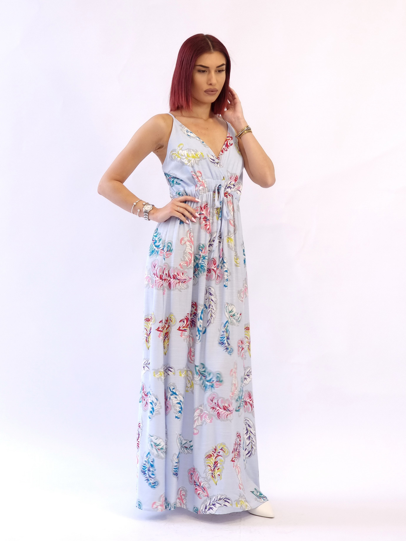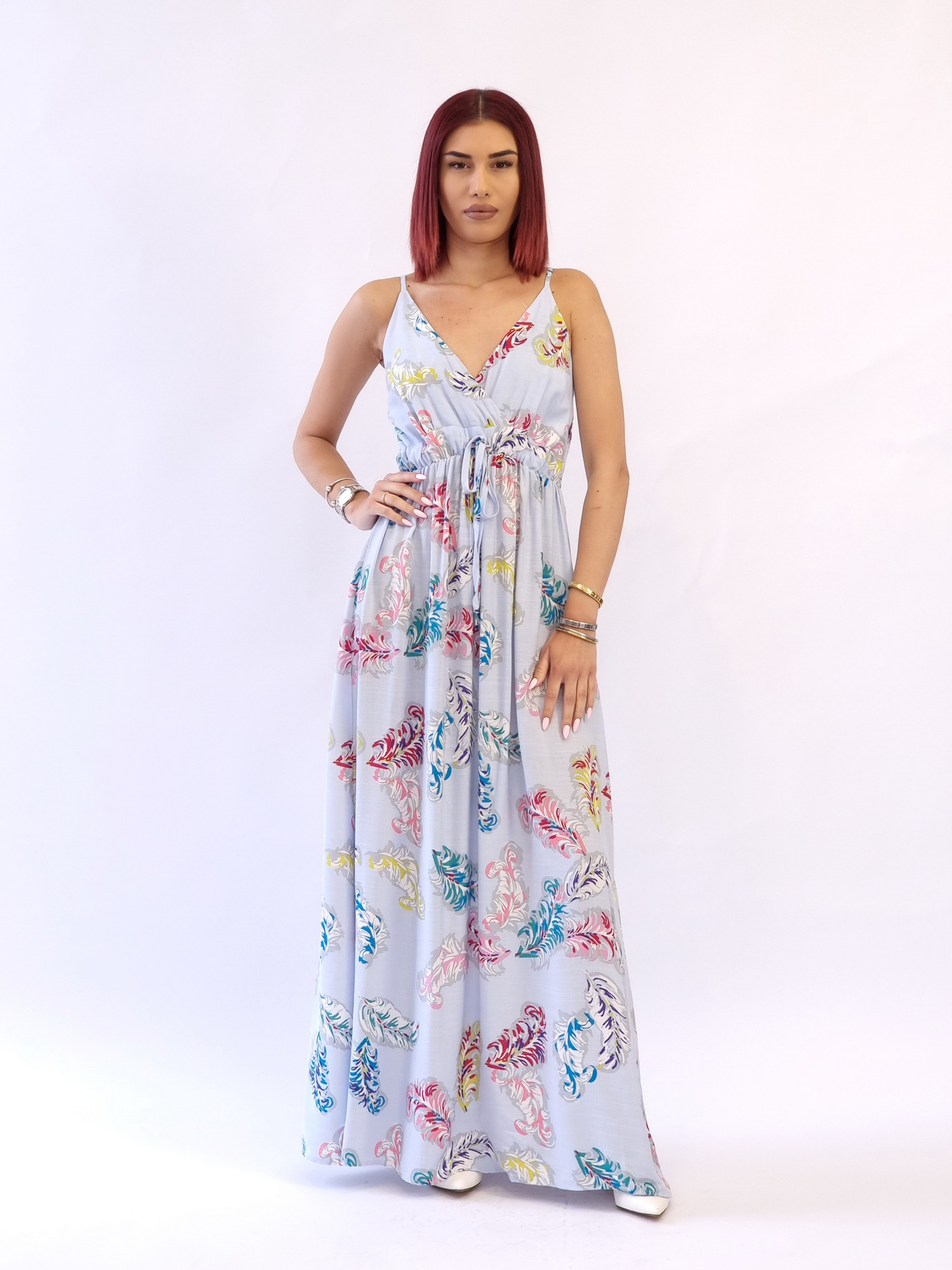 Φόρεμα μάξι κρουαζέ φτερά-Σιέλ