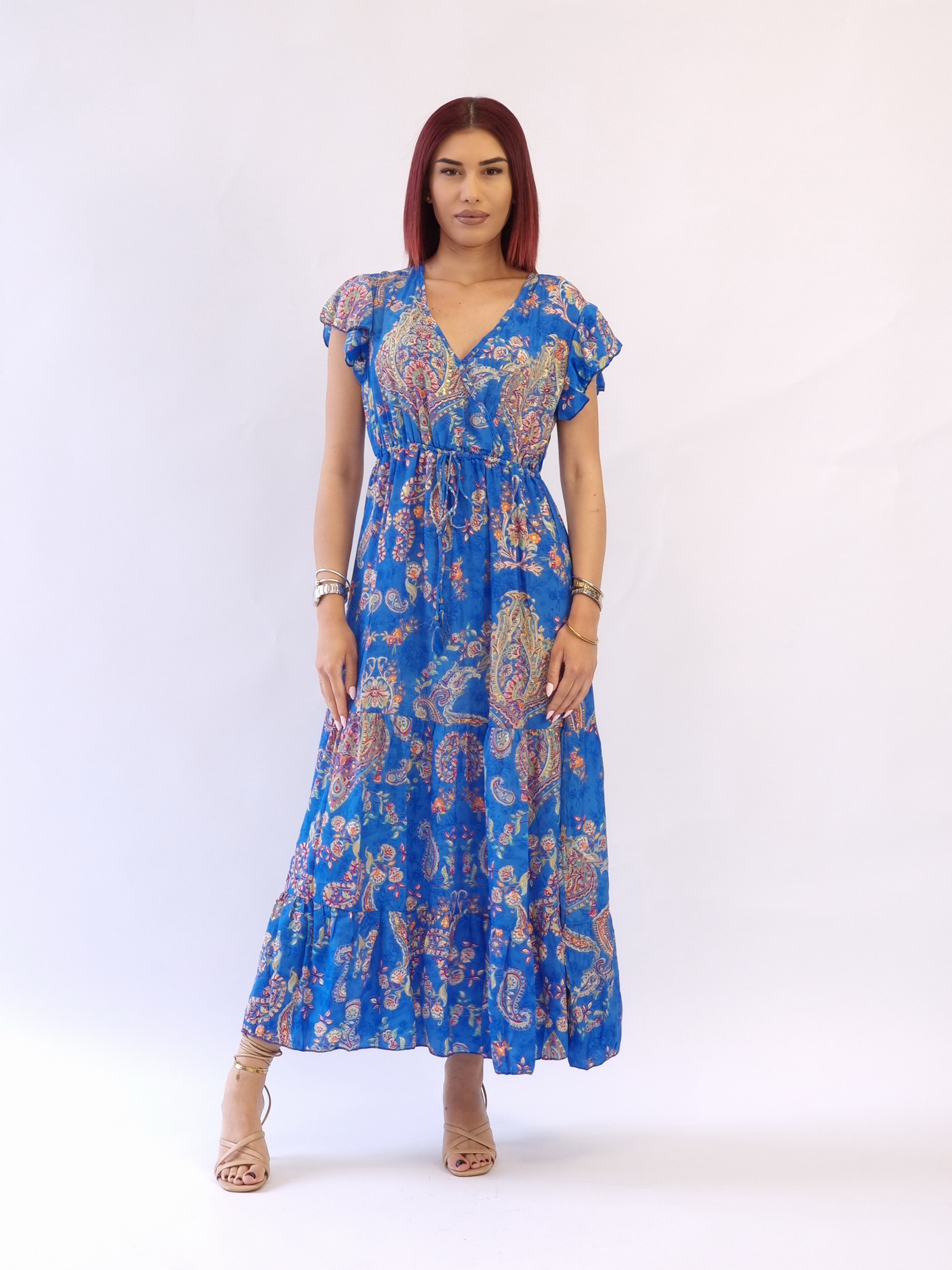 • Φόρεμα boho μεταξωτό μάξι με βολάν