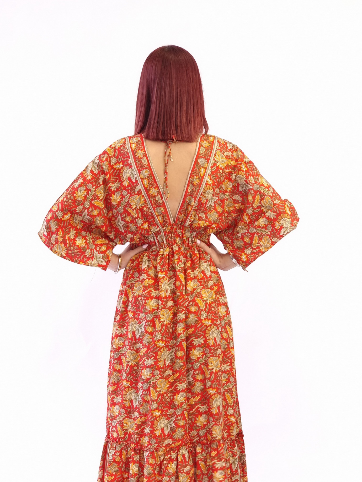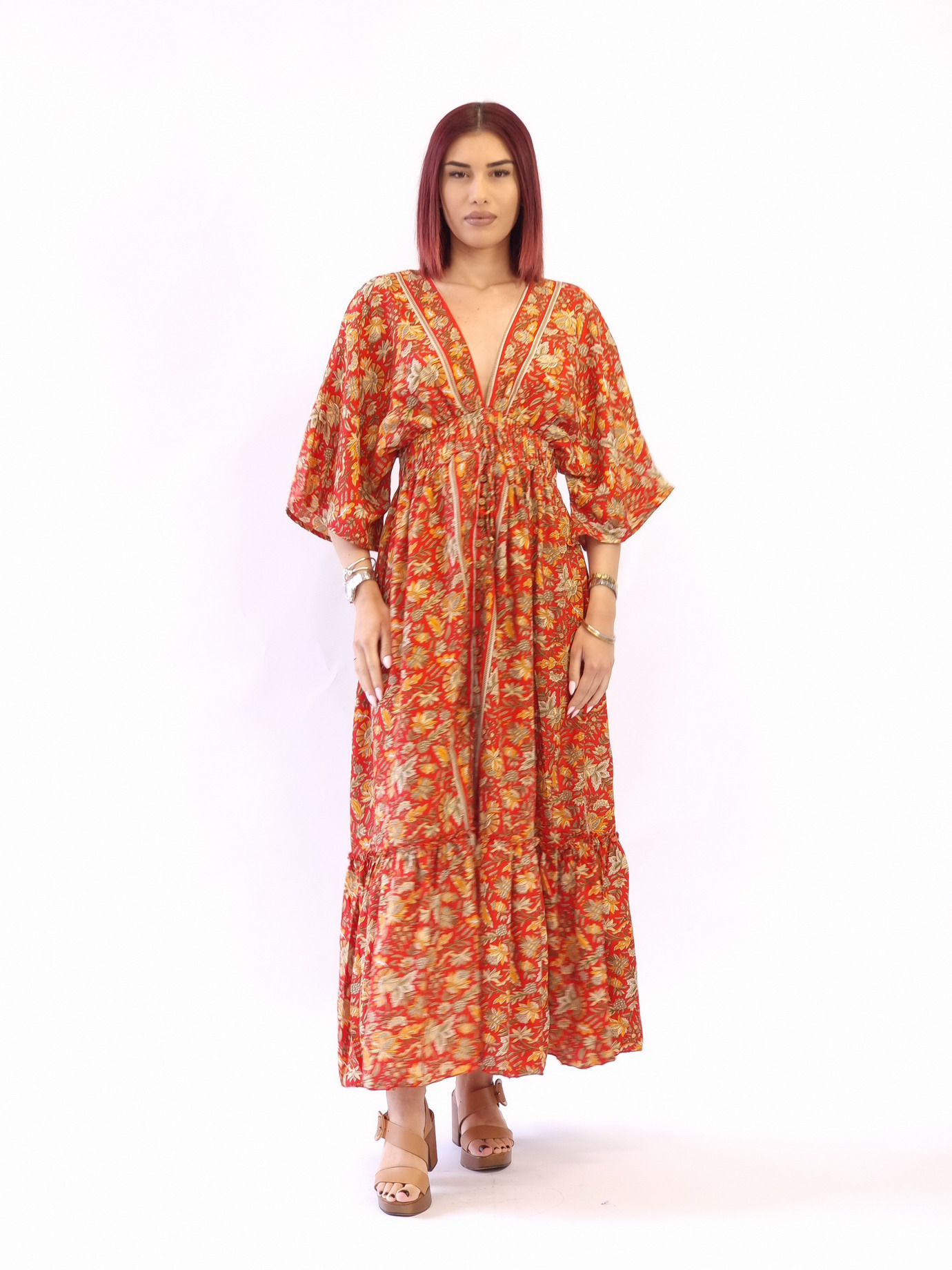 • Φόρεμα μεταξωτό μάξι με βολάν