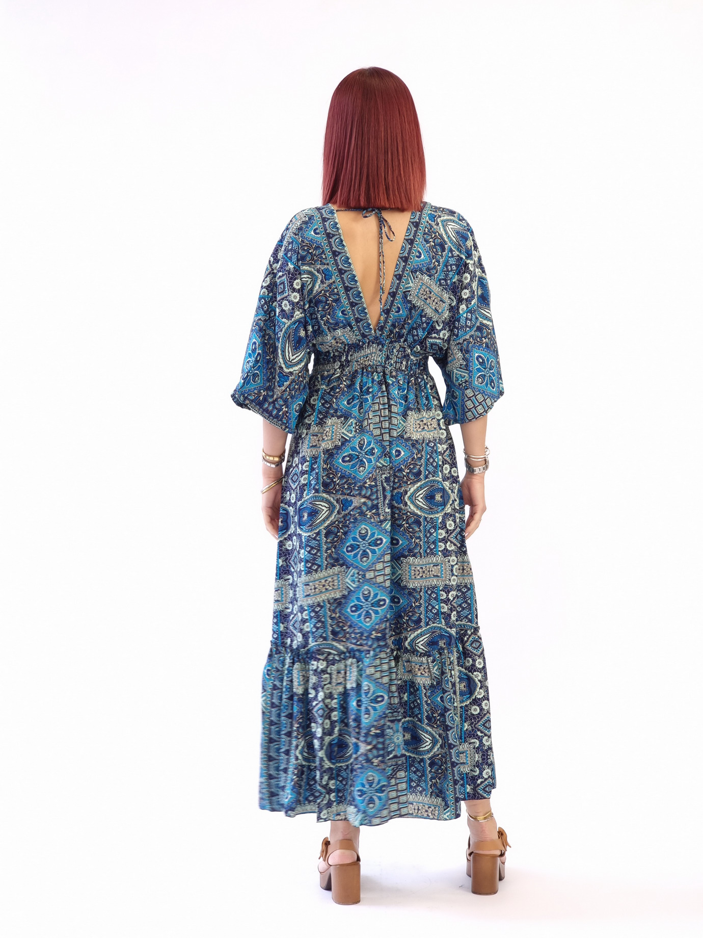 • Φόρεμα μεταξωτό μάξι με βολάν