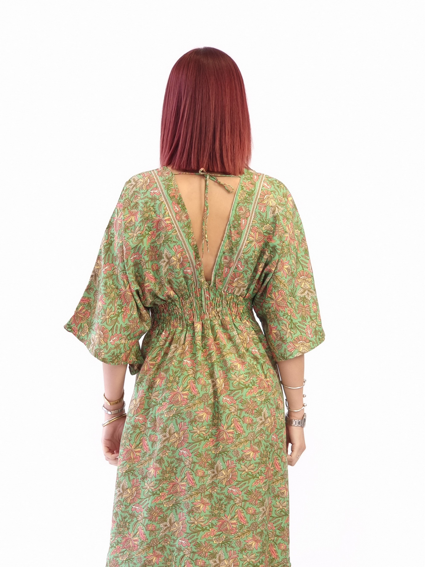 • Φόρεμα μάξι λάστιχο και κουμπιά-Πράσινο