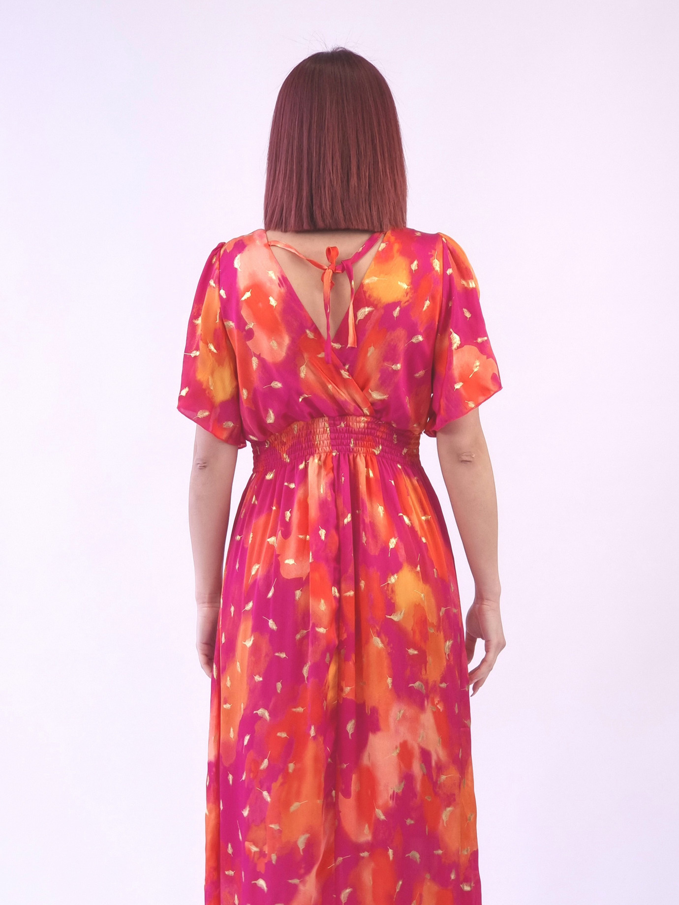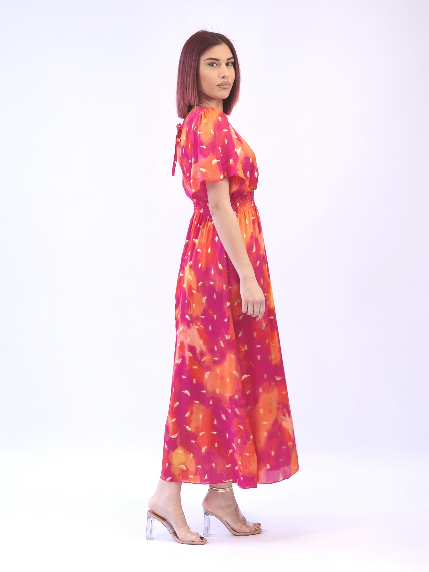 • Φόρεμα μάξι ματζέντα και πορτοκαλί μοτίβο