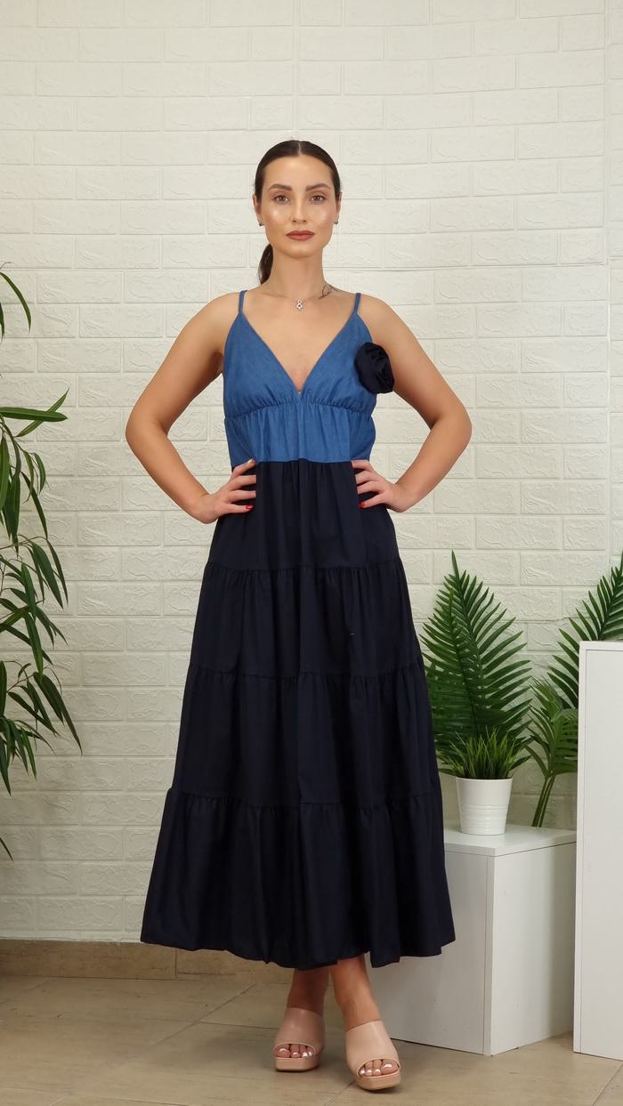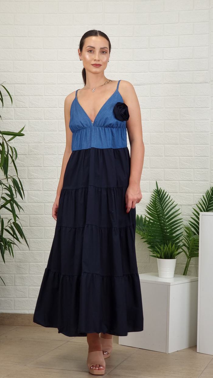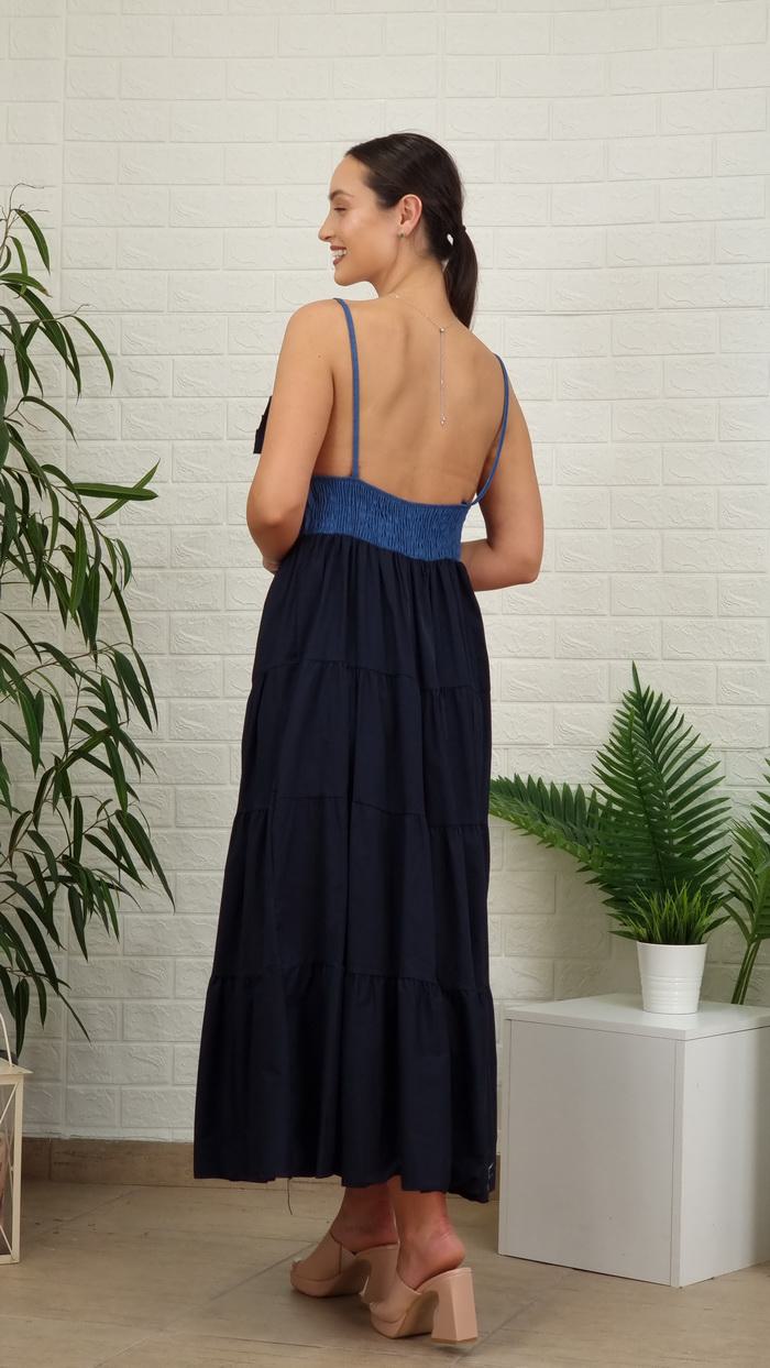 • Μπλέ σκούρο Φόρεμα μάξι με τιράντα
