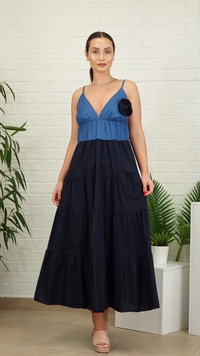 Φόρεμα βαμβακερό τιράντα-Μπλέ