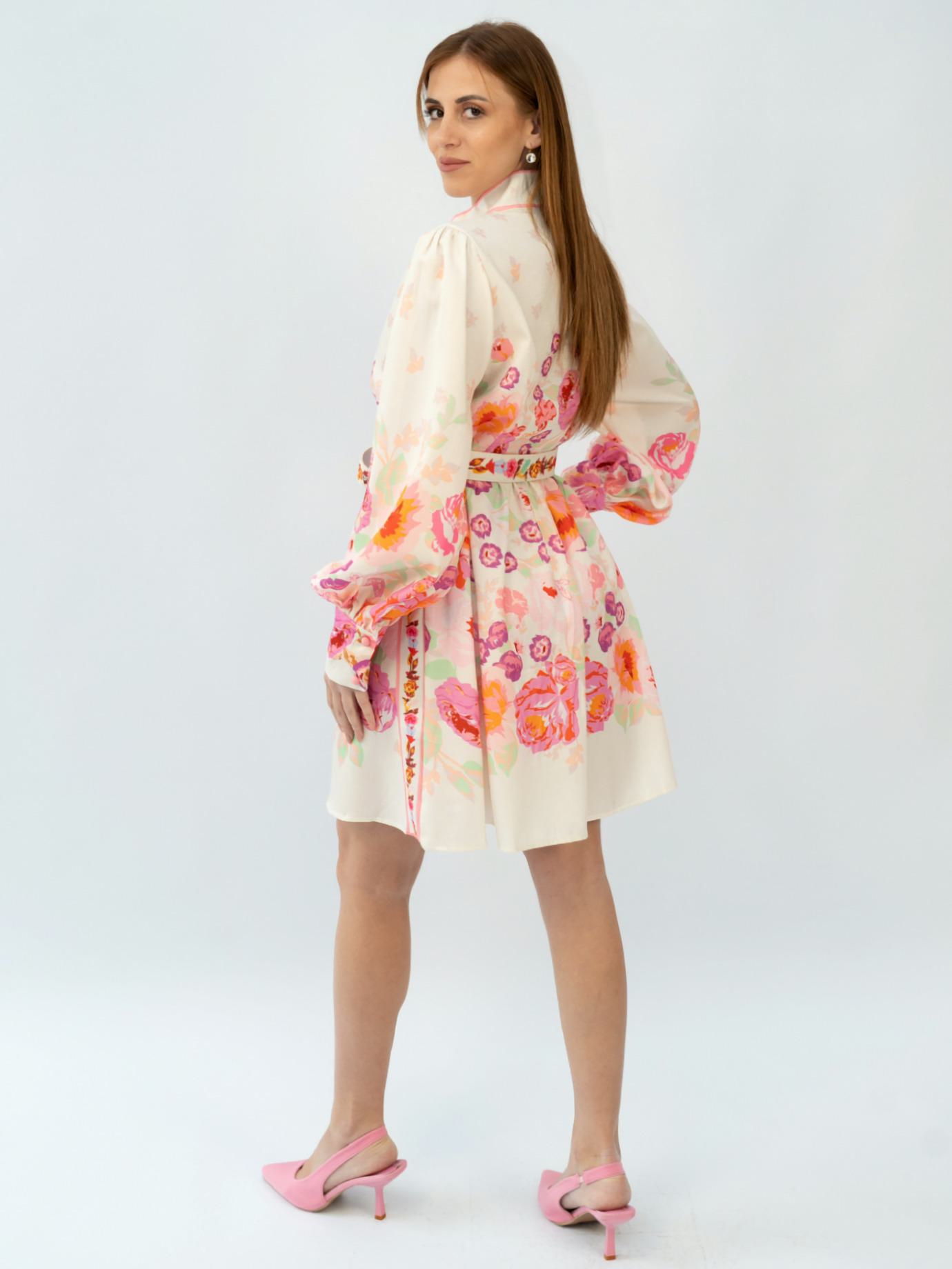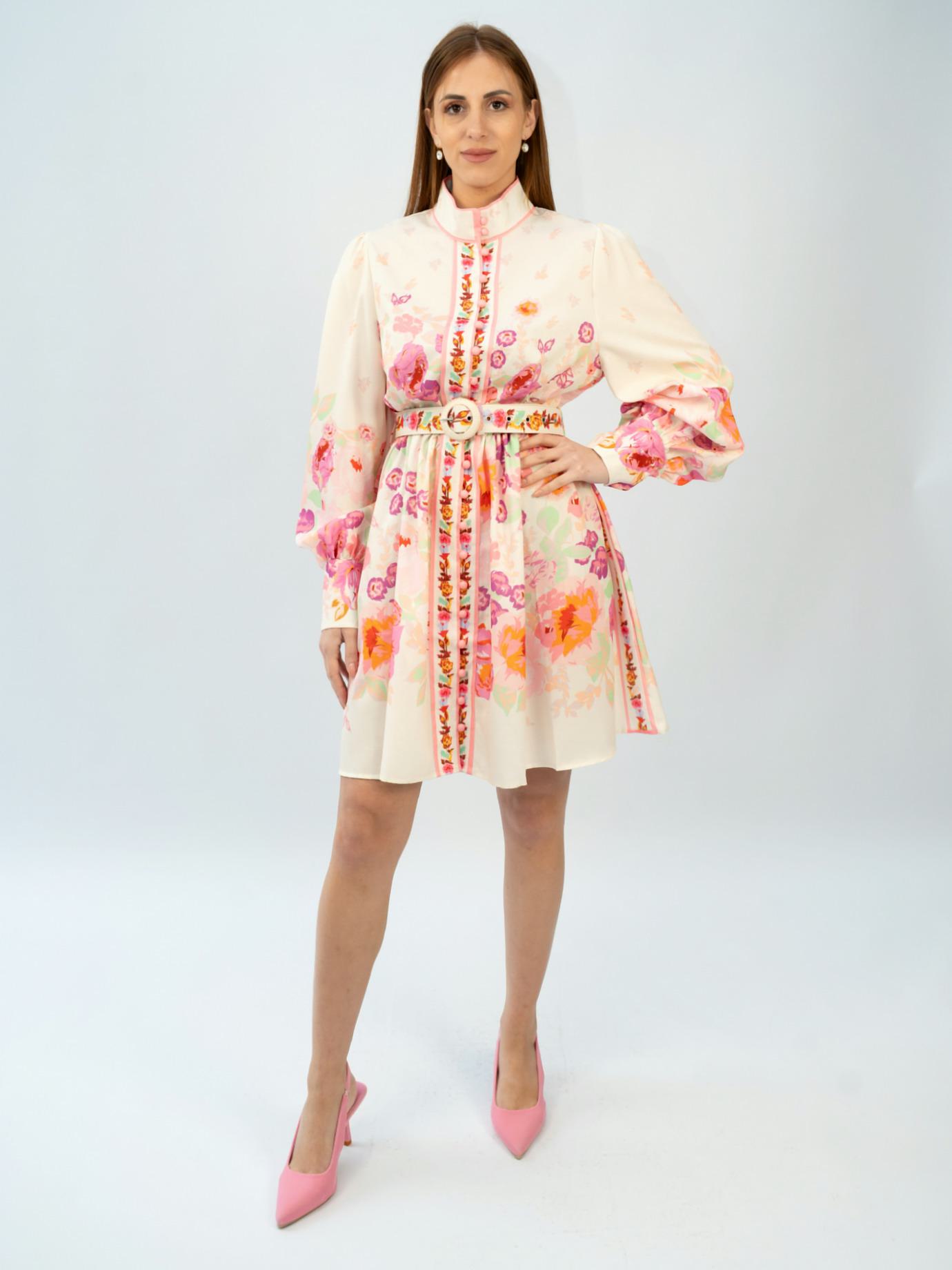Γυναικείο φόρεμα μίνι με υπέροχα πολύχρωμα λουλούδια Έχει κουμπιά κατα μήκος του φορέματος Μακριά μανίκια με κουμπιά στη μανσέτα Διαθέτει ζώνη Δεν διαφανίζει Σύνθεση προϊόντος: 52% linen, 40% pol 8% tensel