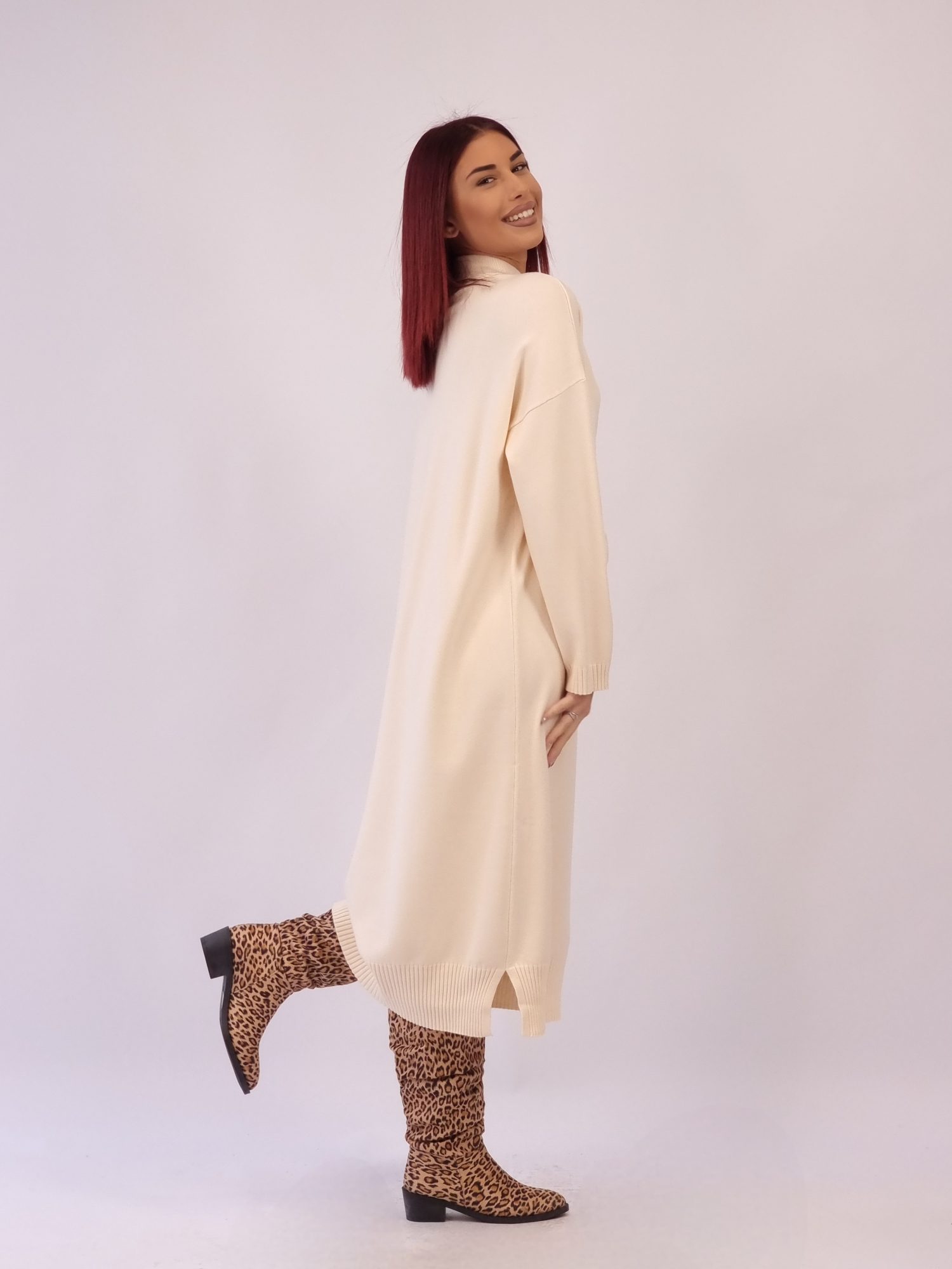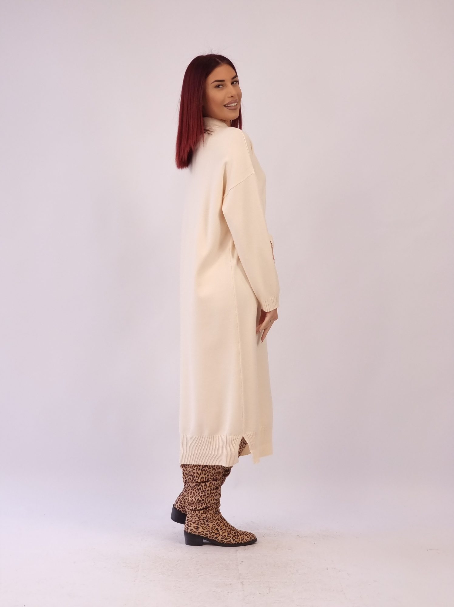 Ζωντανό, θηλυκό και άνετο το εκρού νημάτινο φόρεμα. Το ελαστικό του ύφασμα αγκαλιάζει απαλά το σώμα, αναδεικνύει τη σιλουέτα προσφέροντας άνεση και κομψότητα, ενώ η απαλή υφή του νήματος το καθιστά ιδανικό για καθημερινή χρήση ή βραδινές εξόδους.