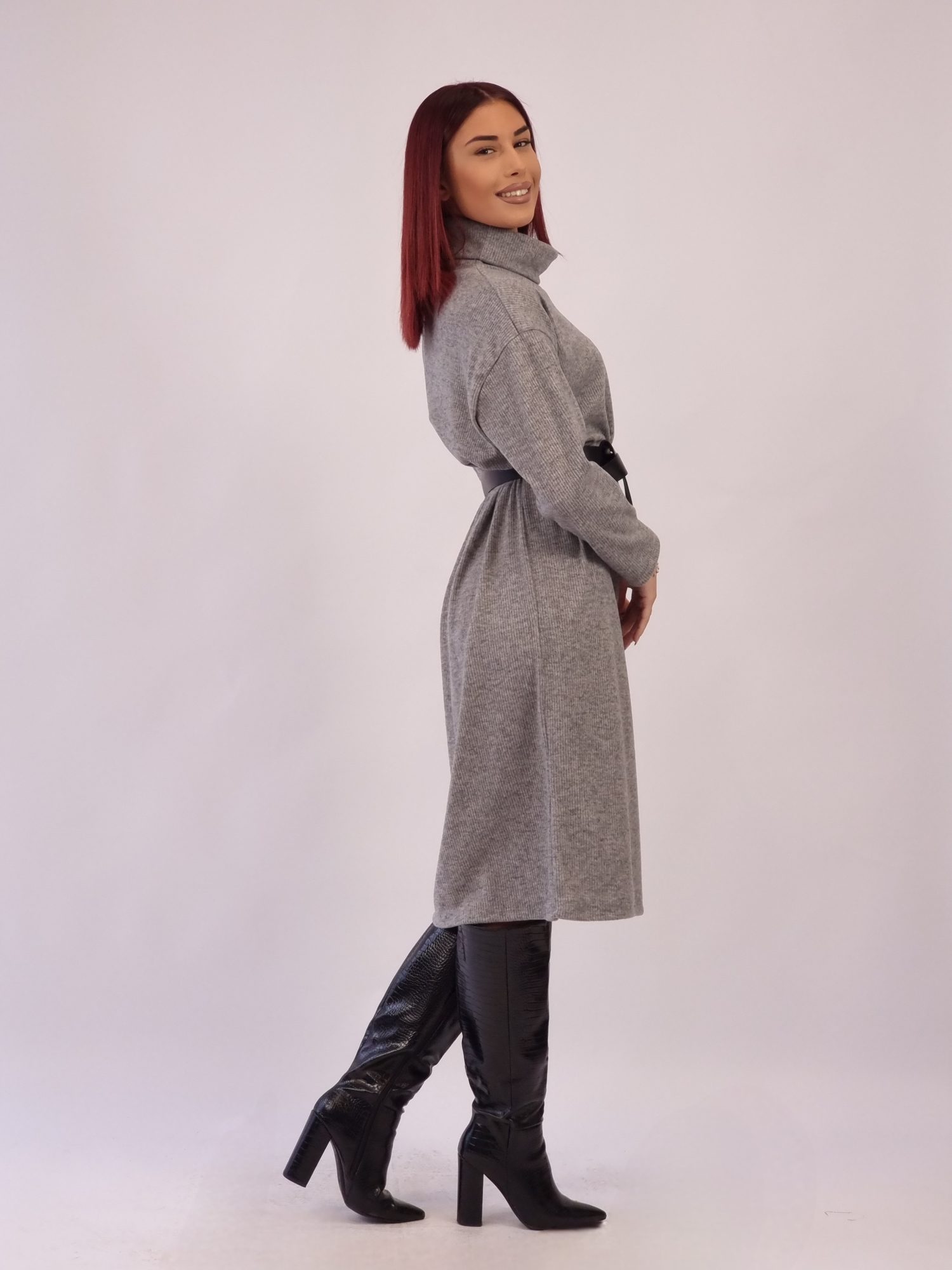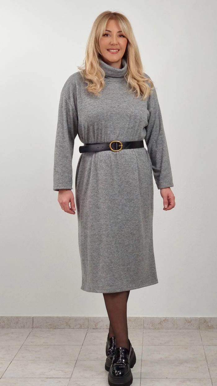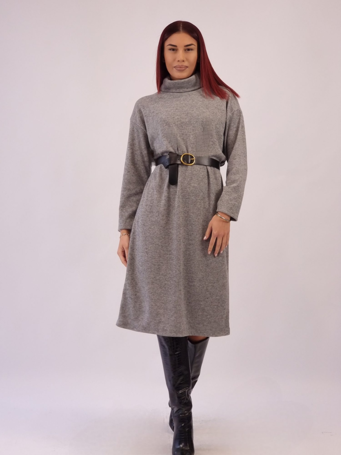 Ζεστό, μαλακό και άψογα θηλυκό — το φόρεμα σε γκρί απόχρωση είναι η επιτομή της κομψής άνεσης, θα γίνει το αγαπημένο σου κομμάτι για κάθε μέρα.