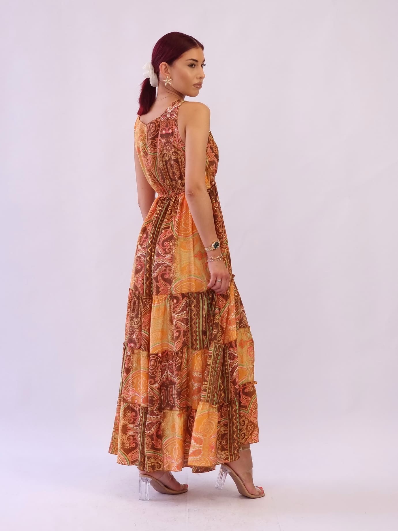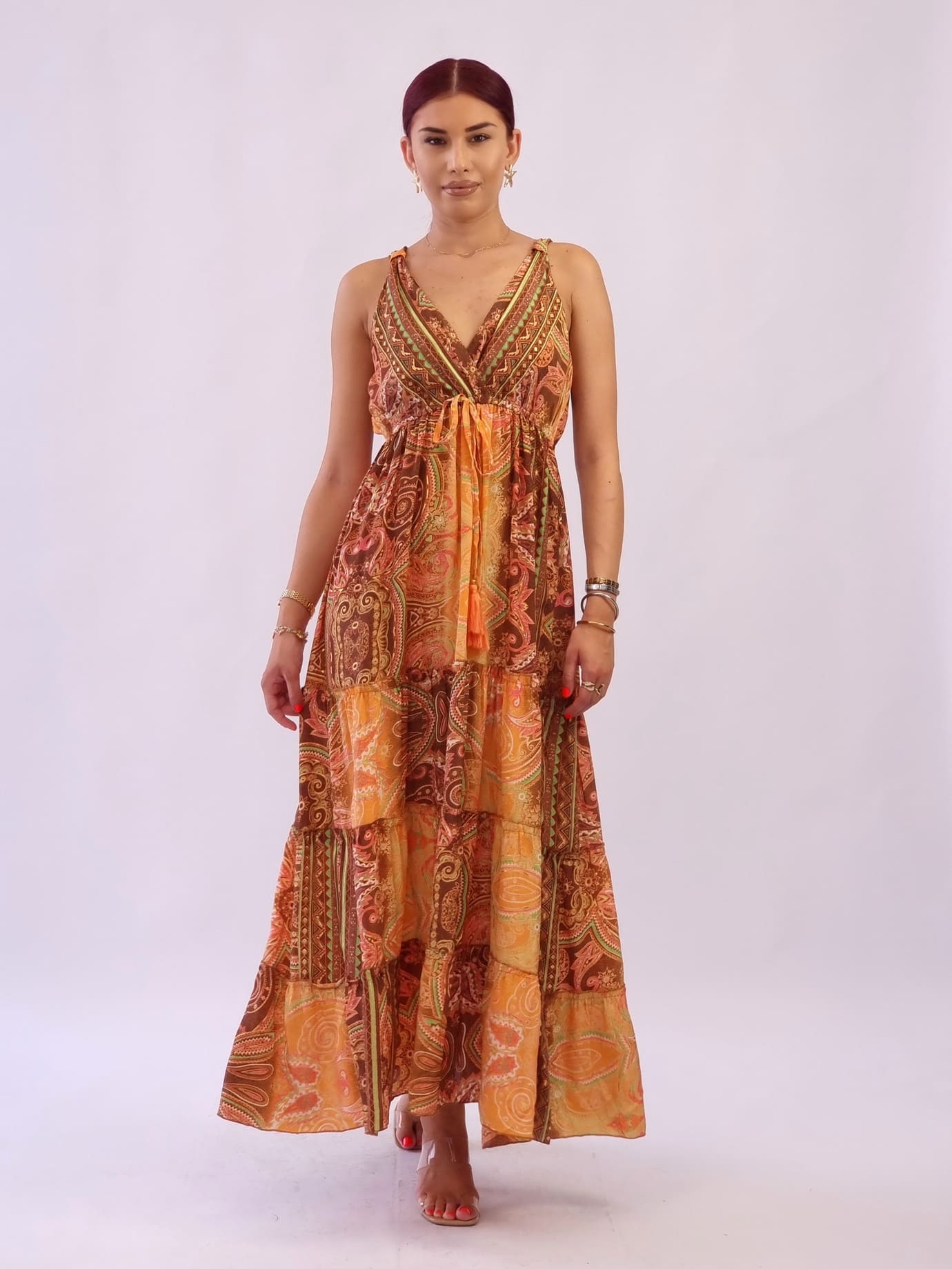 Φόρεμα μάξι μεταξωτό-Πορτοκαλί