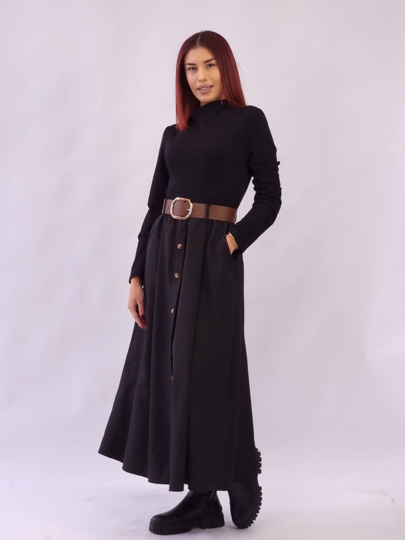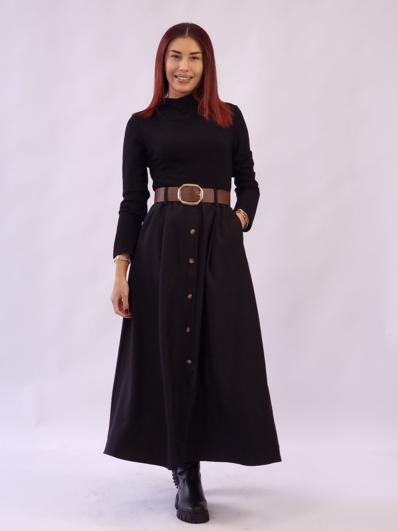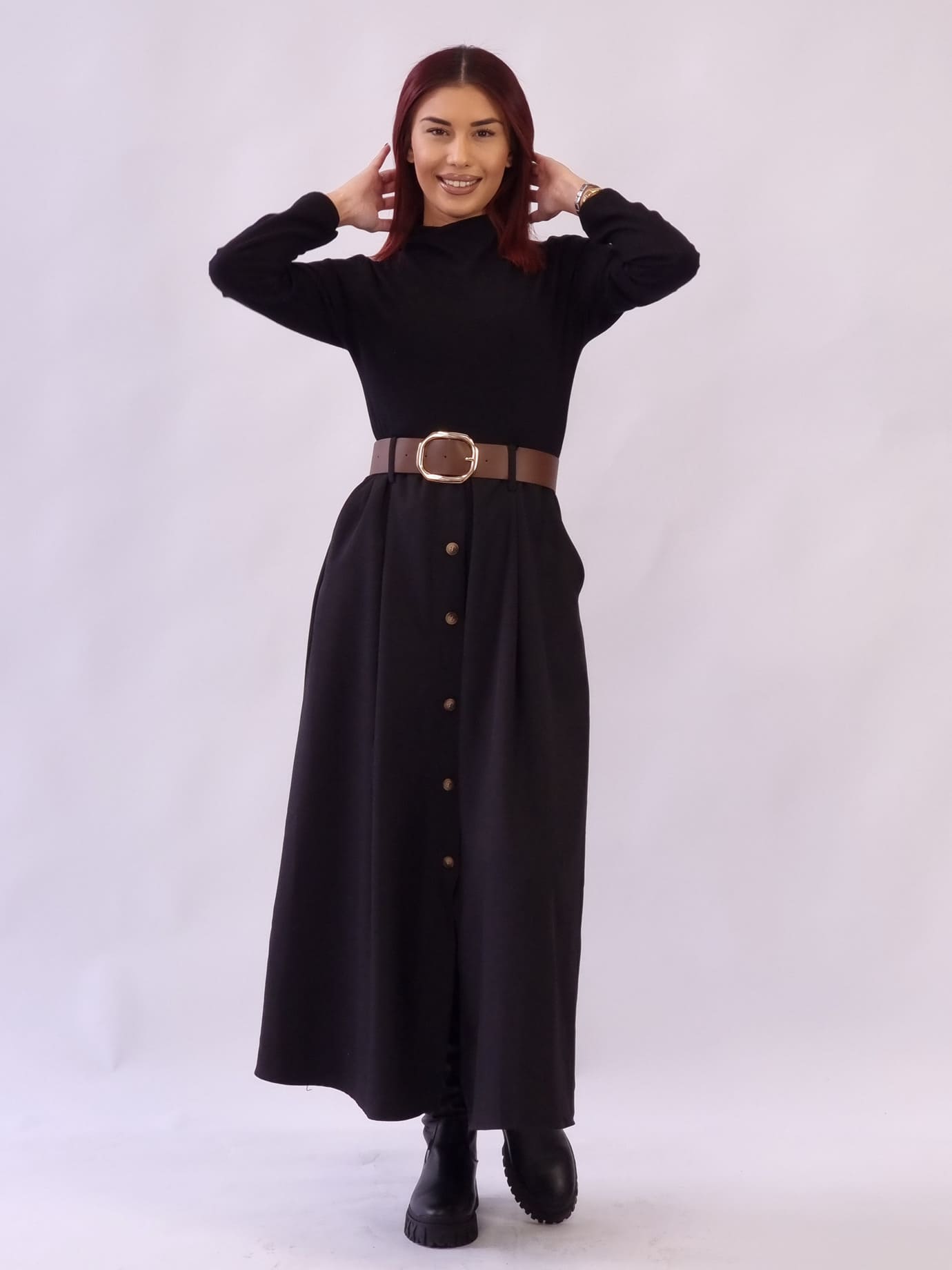 Φόρεμα Πλεκτό Διακοσμητικά Κουμπιά – Μαύρο