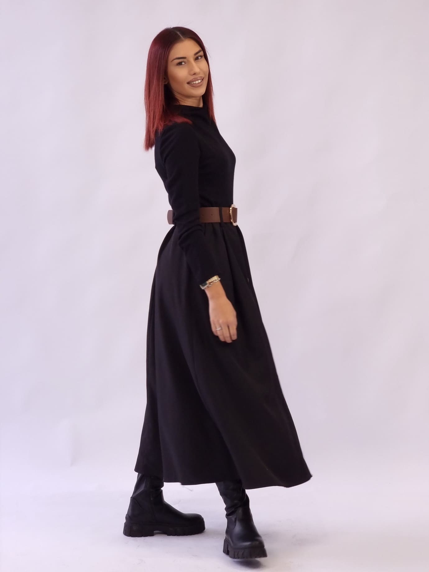 Πλεκτό φόρεμα με άνετη ελαστική μέση, ζώνη δώρο και αέρινη φούστα βισκόζη με διακοσμητικά κουμπιά και τσέπες.