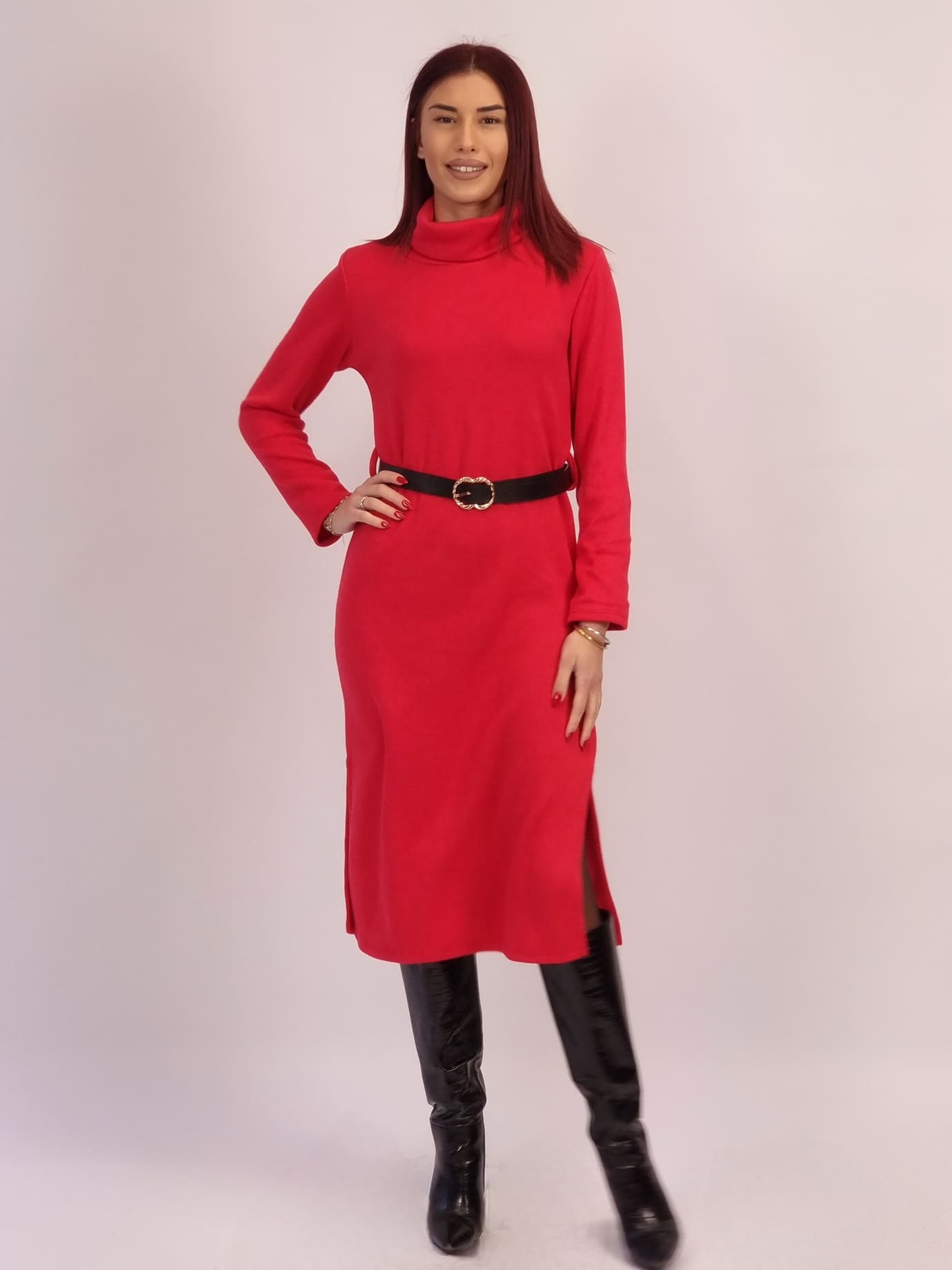 Ζεστό, μαλακό και άψογα θηλυκό — το φόρεμα σε κόκκινη απόχρωση είναι η επιτομή της κομψής άνεσης, θα γίνει το αγαπημένο σου κομμάτι για κάθε μέρα.