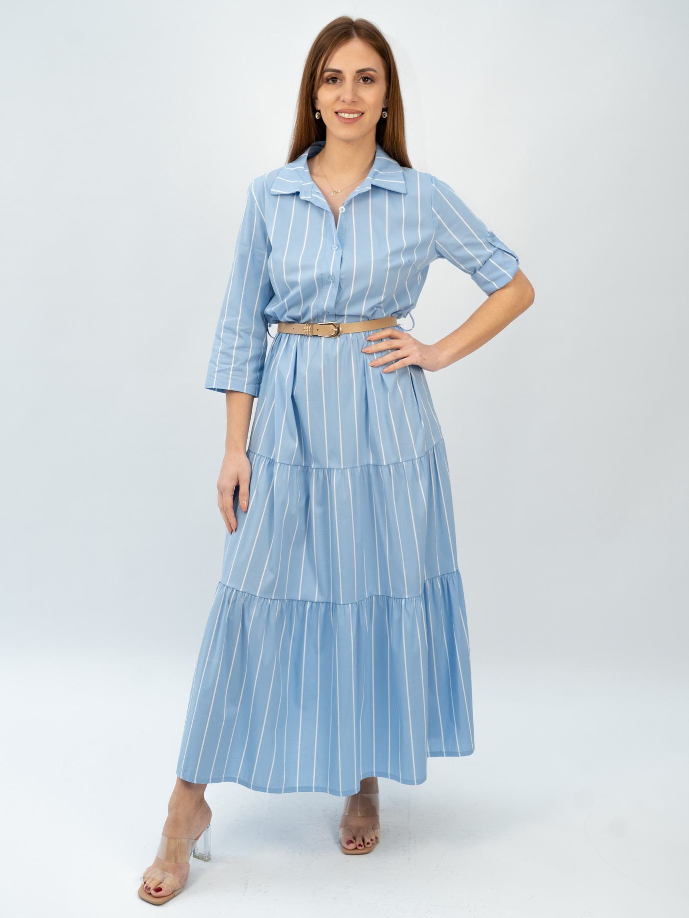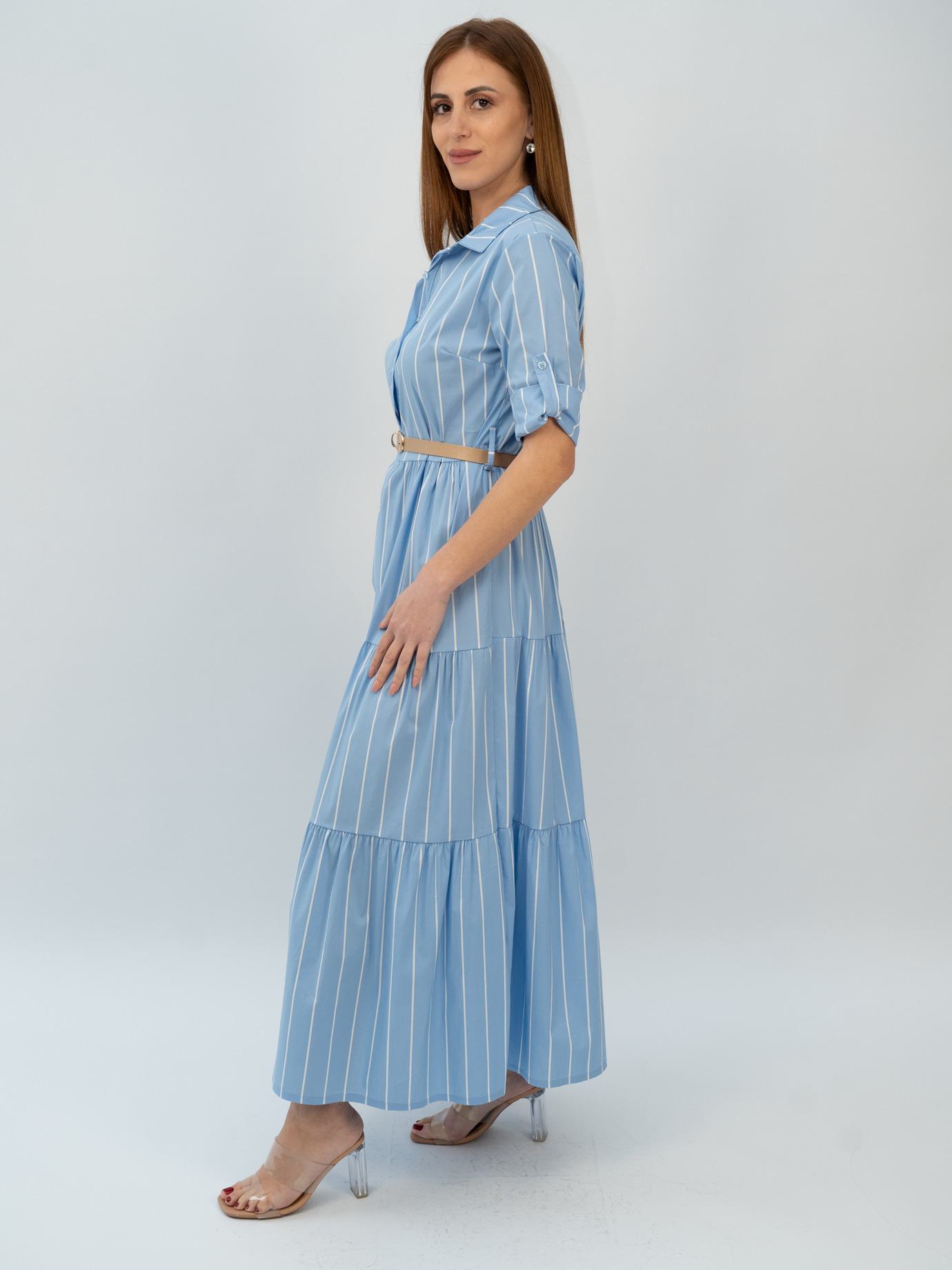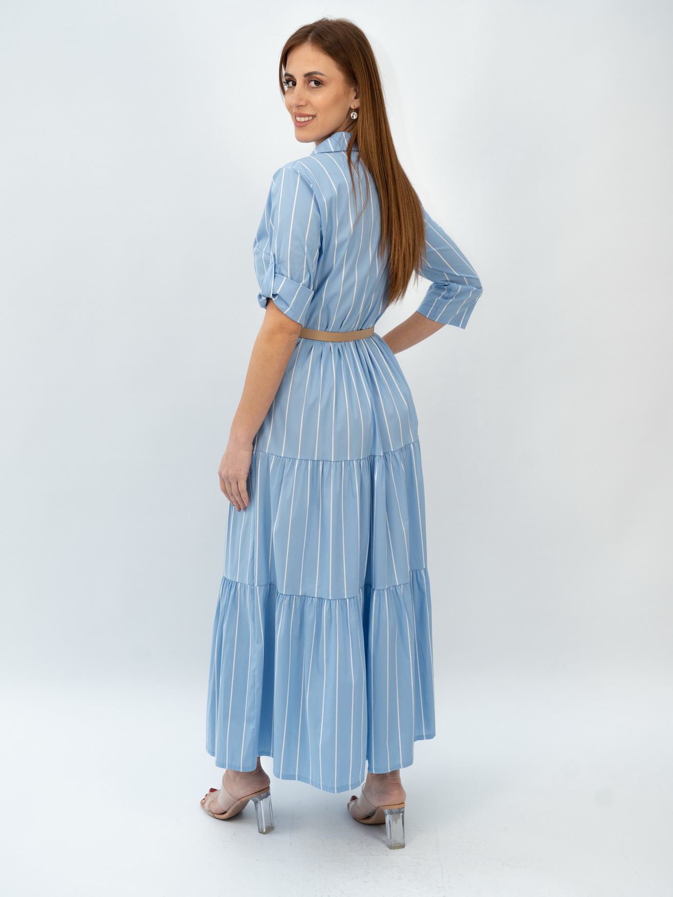 • Γυναικείο φόρεμα σιέλ μάξι με ρίγες λευκές