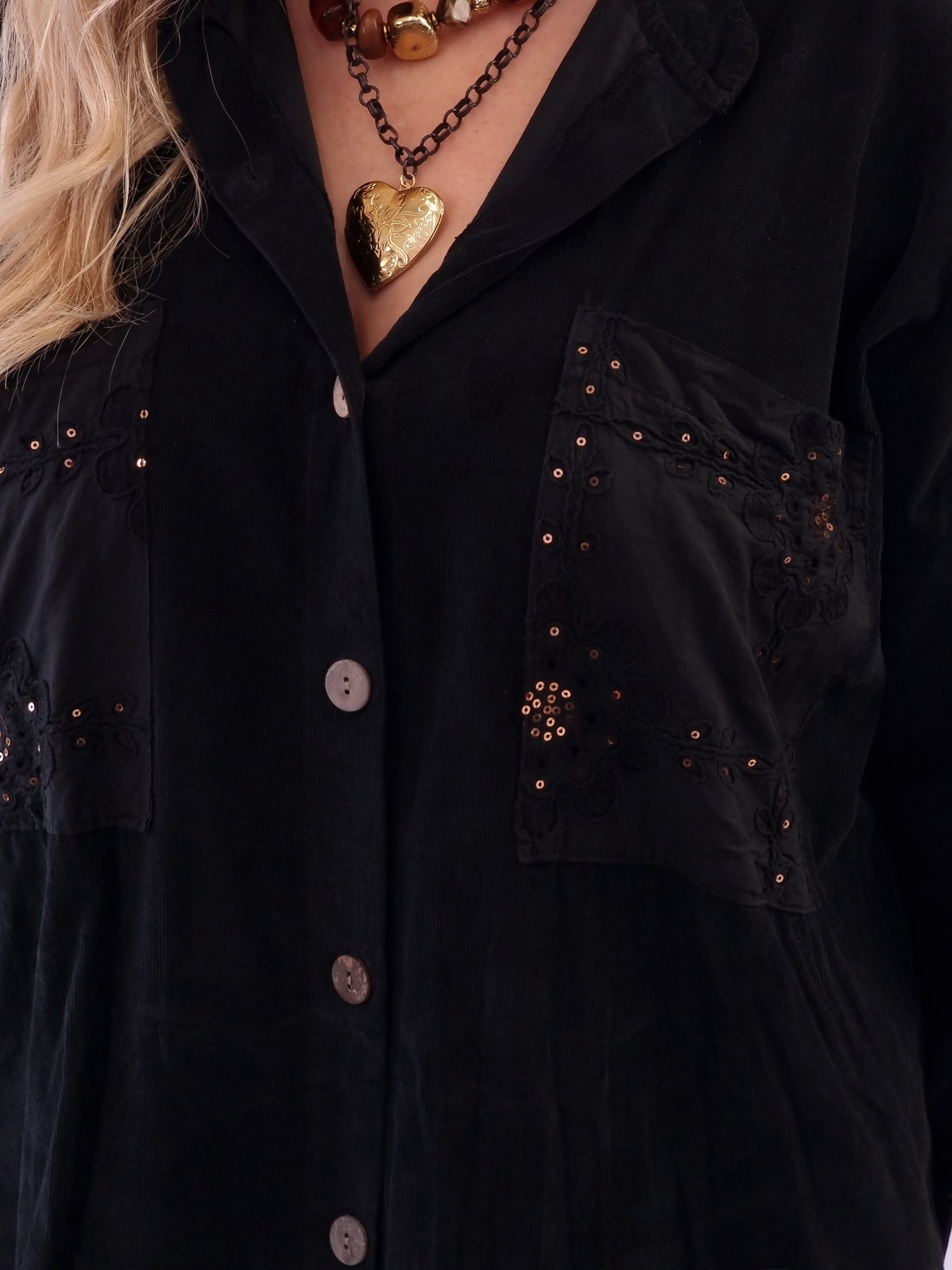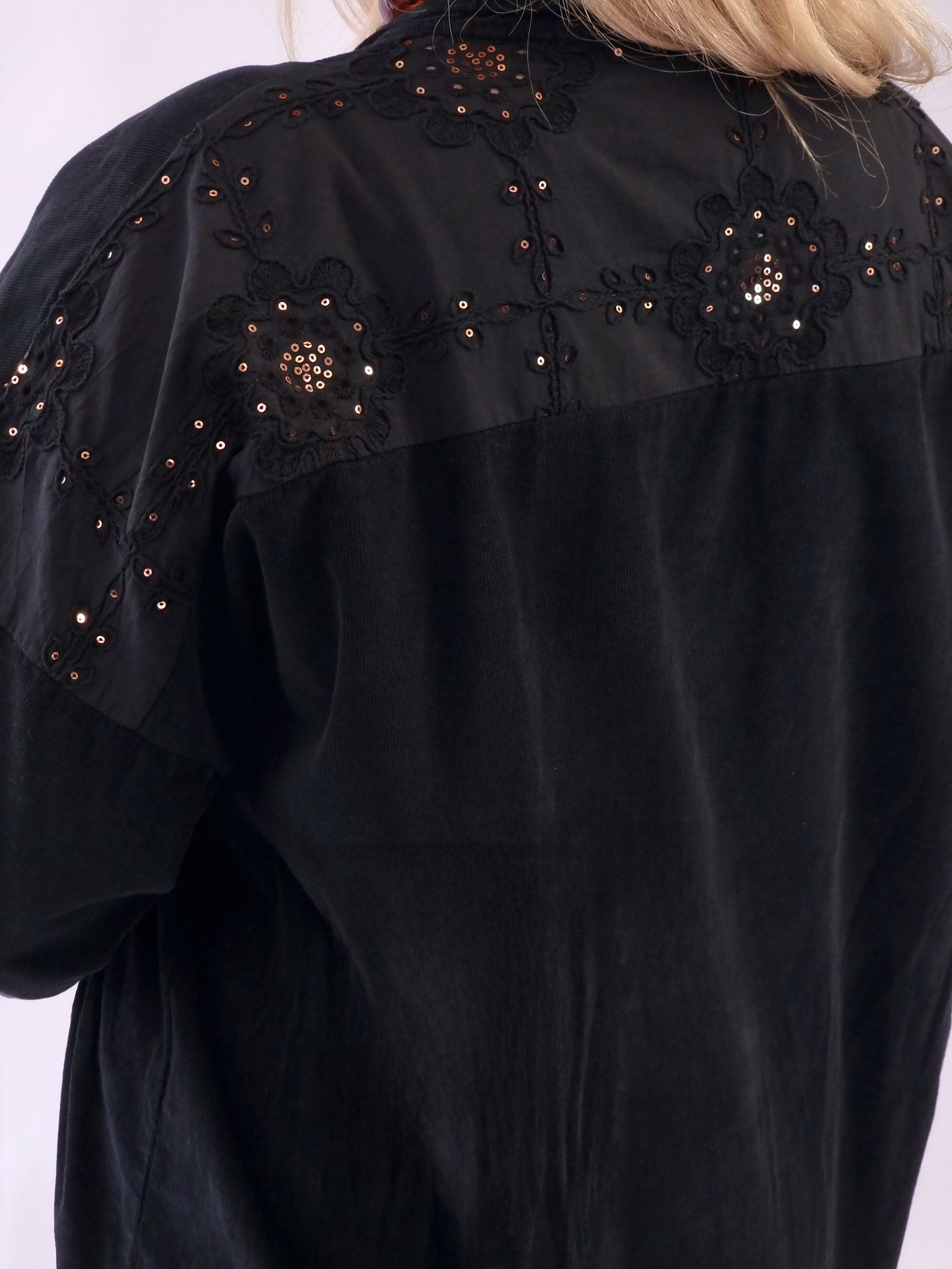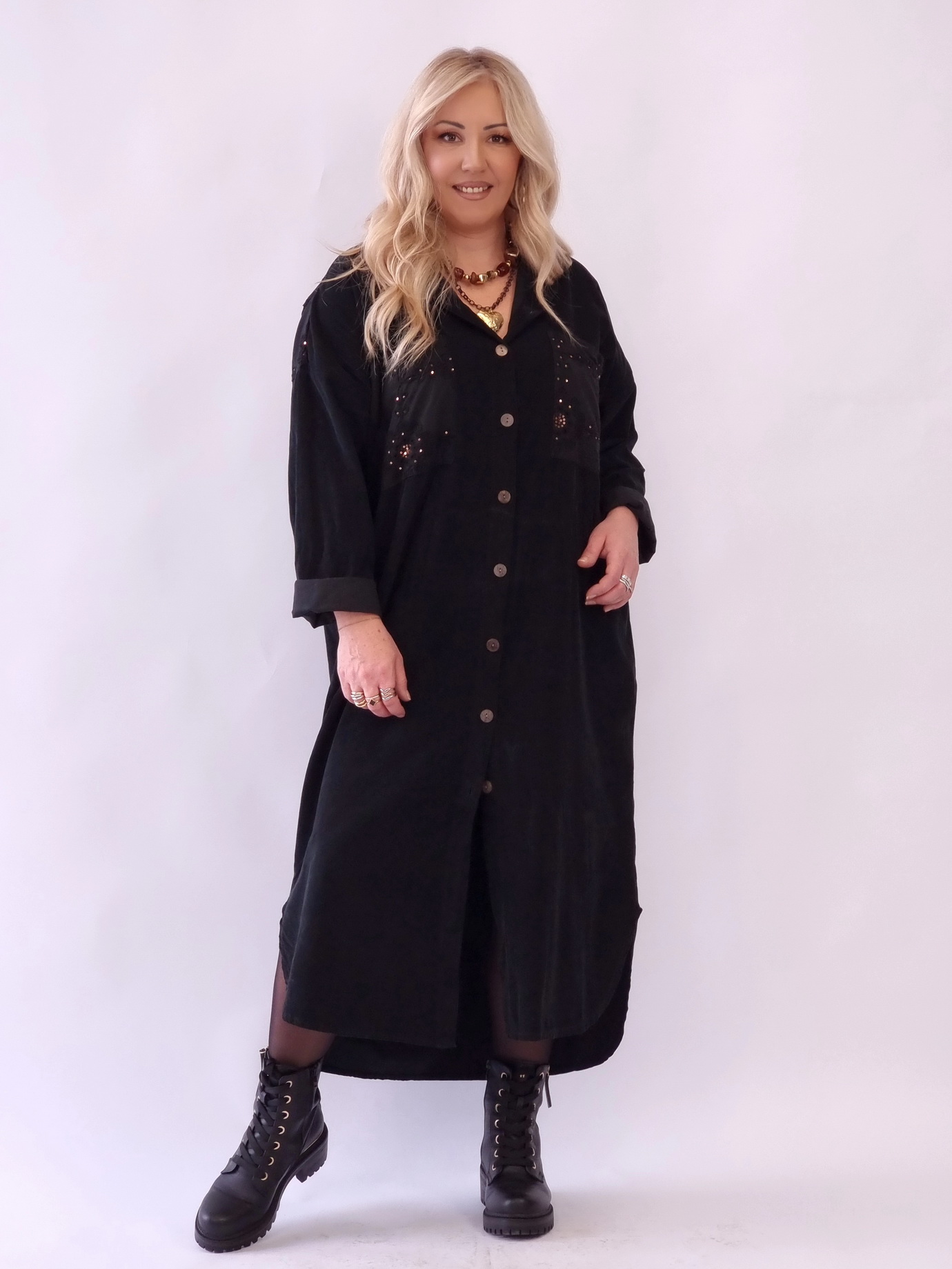 Ένα φόρεμα που συνδυάζει Ένα φόρεμα που συνδυάζει άνεση και διακριτική λάμψη, αναπνεύσιμο βαμβακερό ύφασμα, προσφέρει απόλυτη άνεση καθ’ όλη τη διάρκεια της ημέρας. Ξεχωρίζει για τις κεντημένες λεπτομέρειες με παγιέτες στο επάνω μέρος, που χαρίζουν διακριτική λάμψη και κάνουν το look μοναδικό. Μπορεί να φορεθεί ως φόρεμα ή και ως μακρύ πουκάμισο πάνω από παντελόνι ή leggings για layering εμφανίσεις με χαρακτήρα. Άμεση αποστολή εντός 24 ωρών
