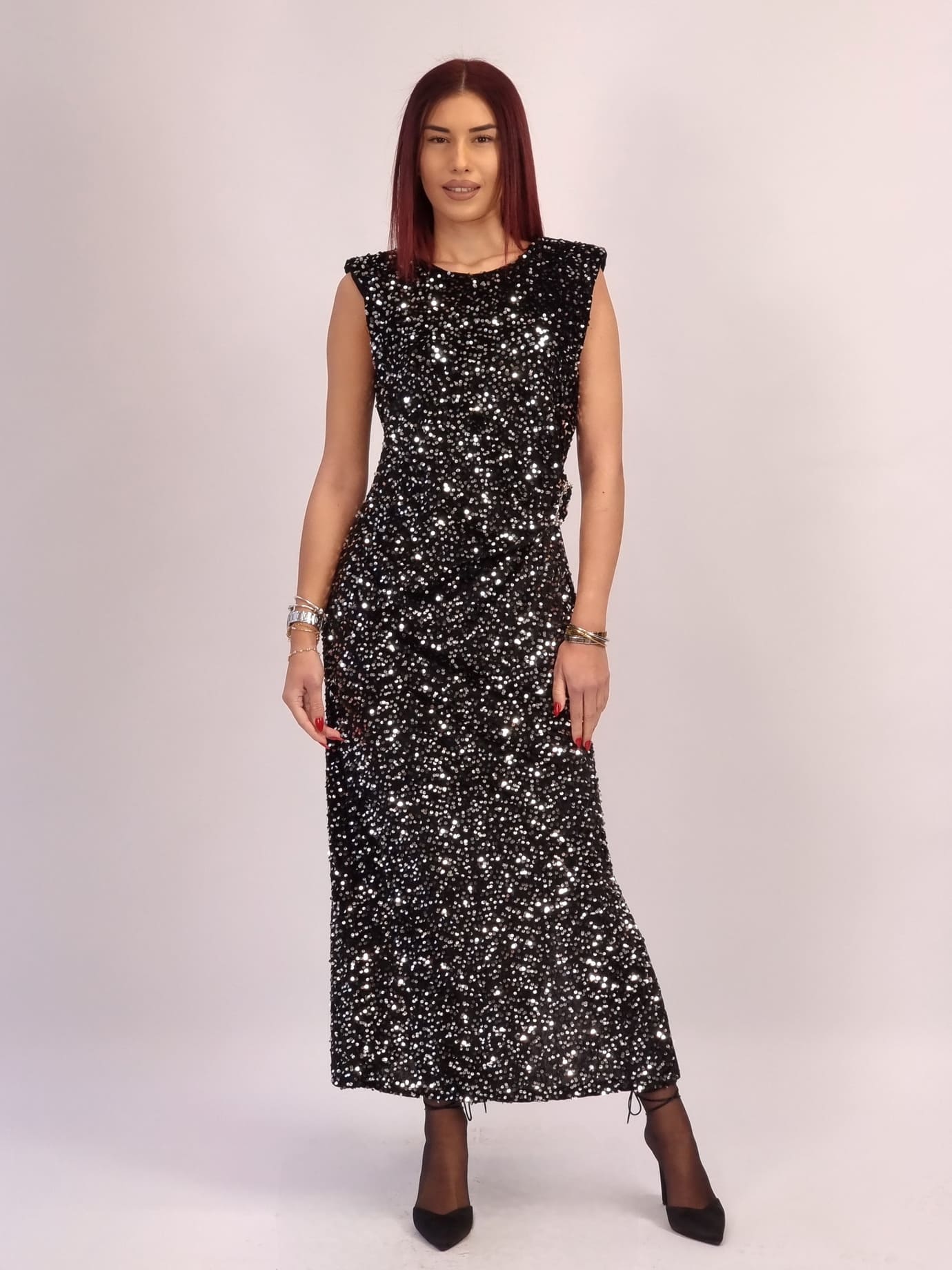 Φόρεμα Βελουτέ Παγιέτα Ασημί- Μαύρο
