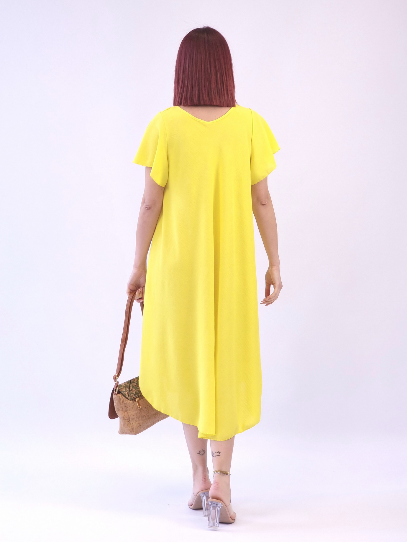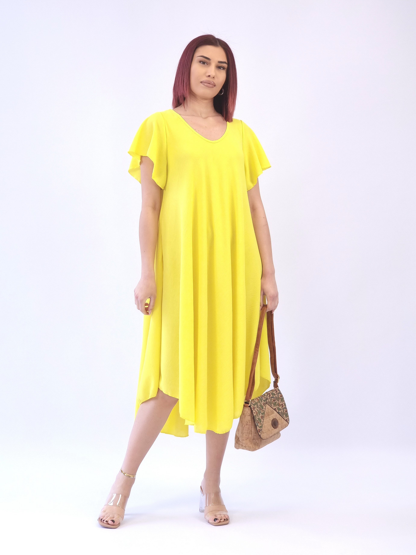 Φόρεμα βολάν στο μανίκι-Κίτρινο