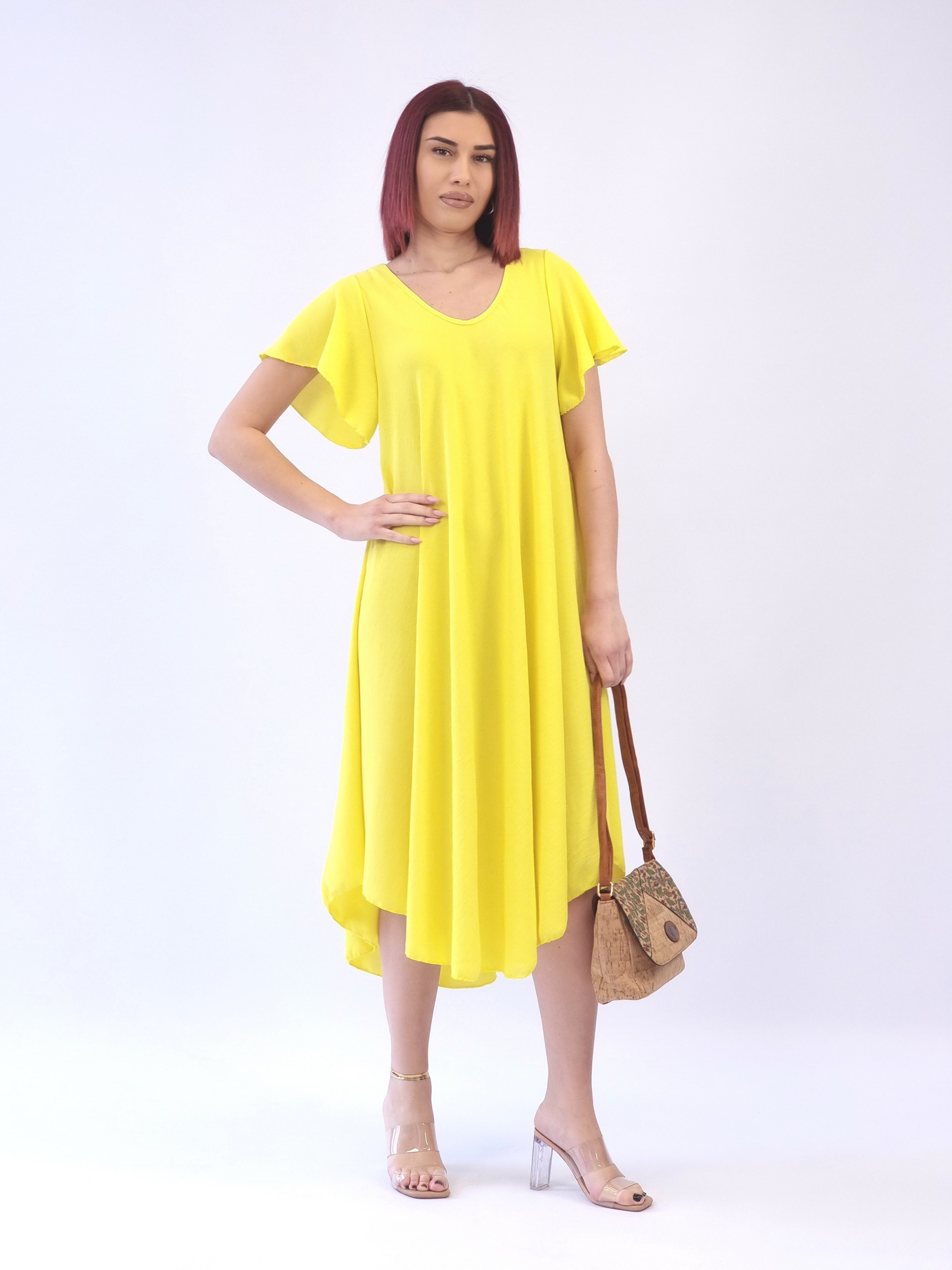 • Φόρεμα κοντομάνικο χρώμα κίτρινο