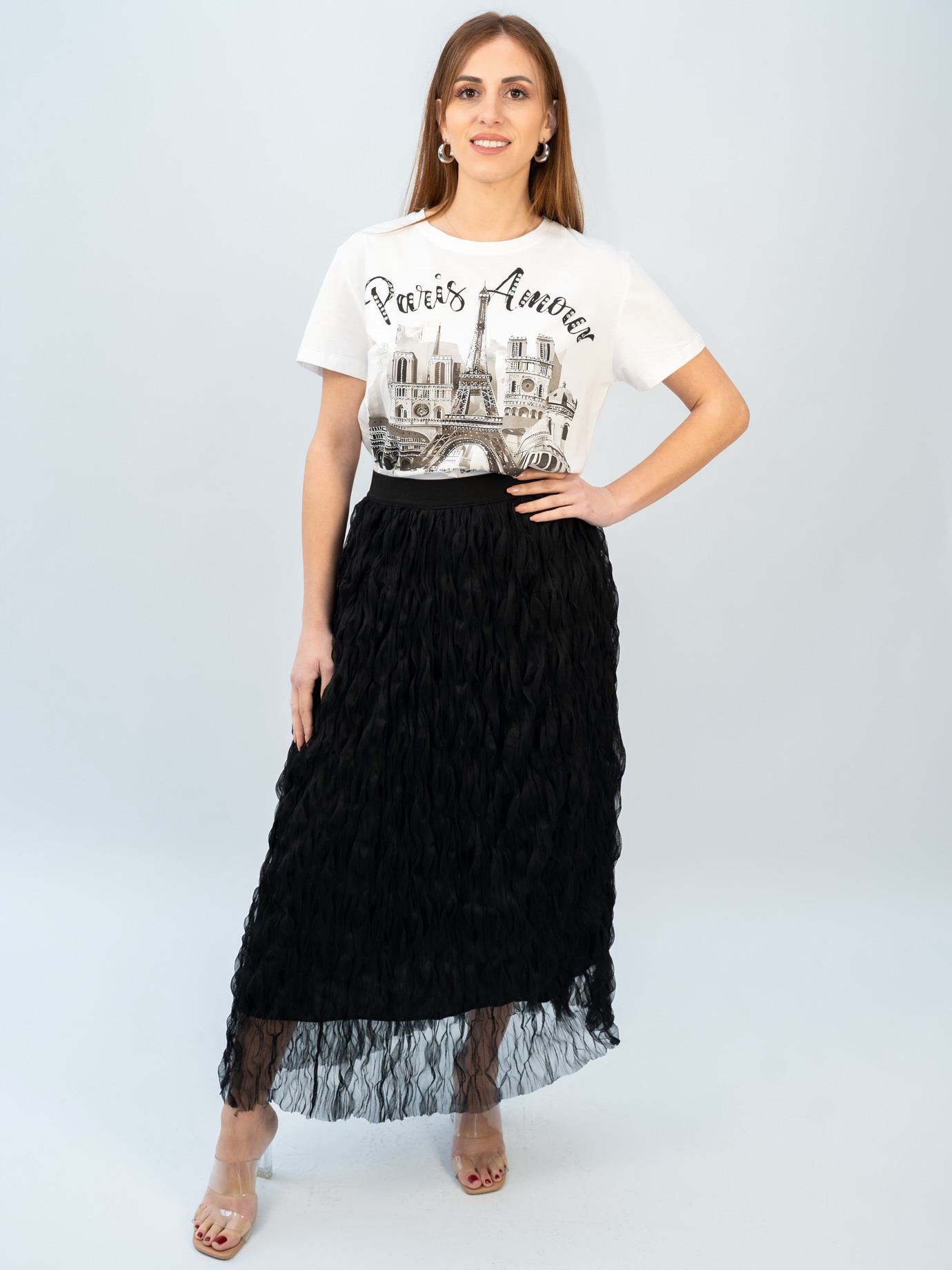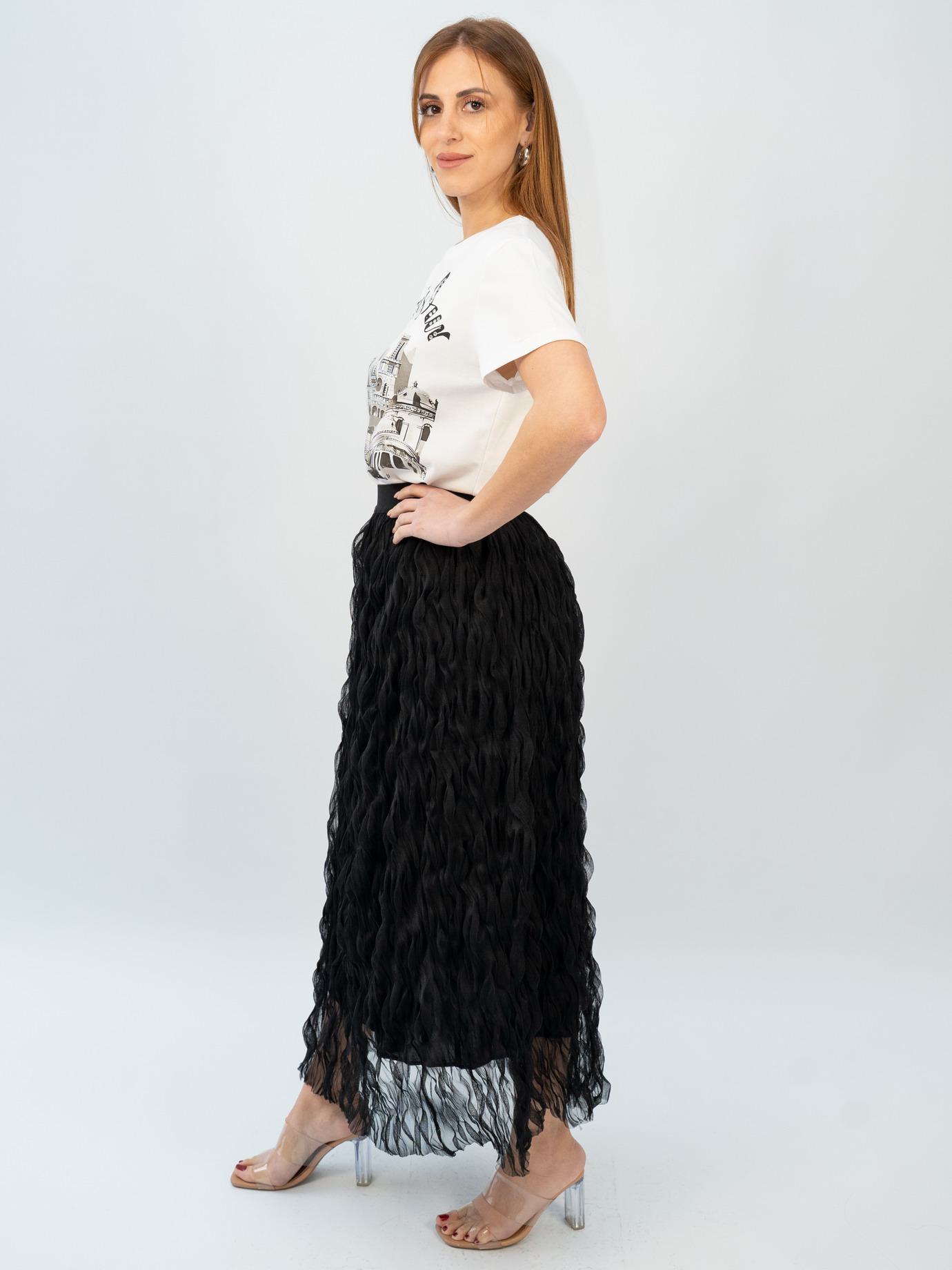 • Μαύρη Φούστα μακριά με ιδιαίτερο ύφασμα τούλι