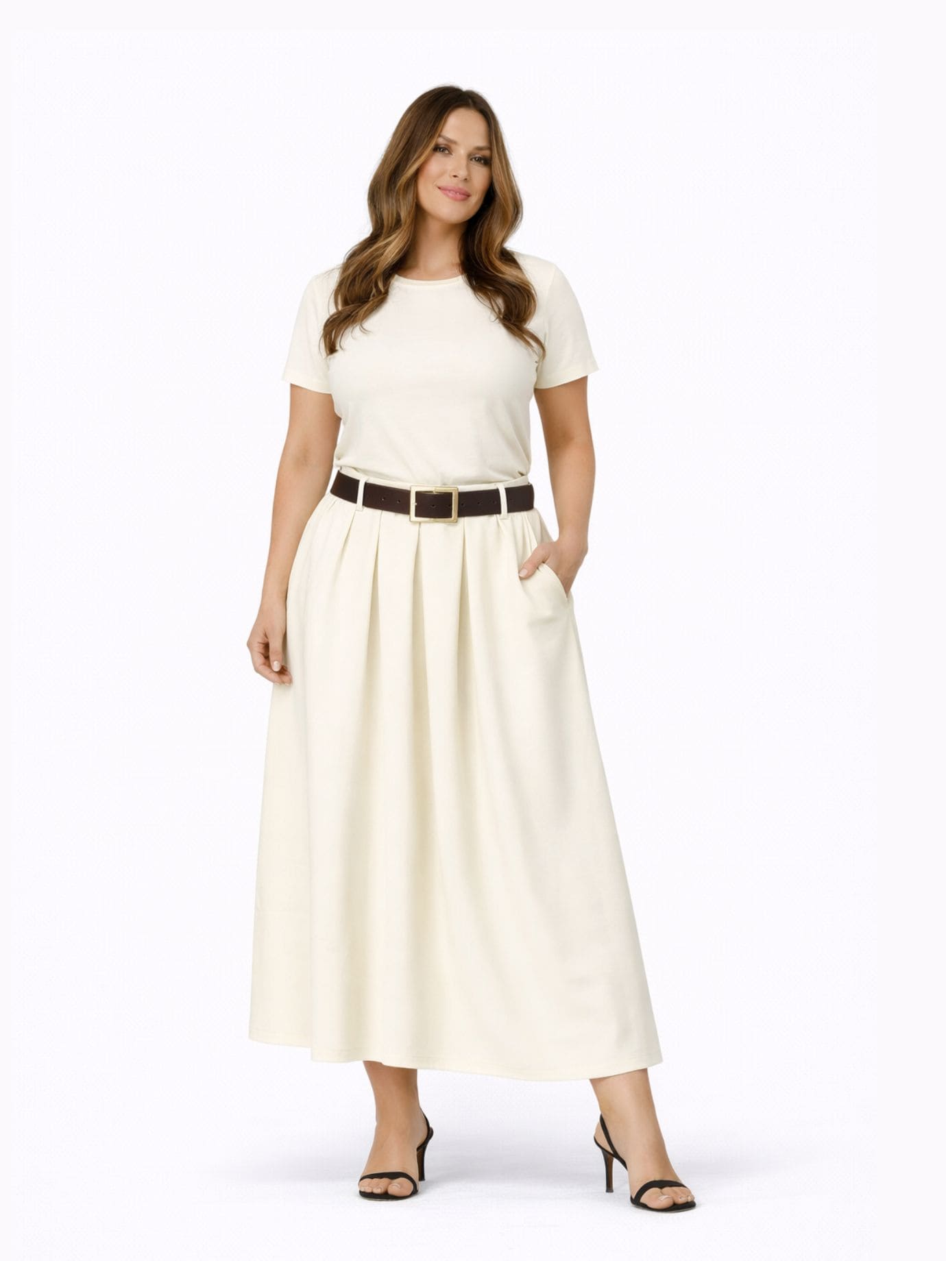 Ευέλικτη φούστα χρώμα εκρού που φοριέται άνετα και συνδυάζεται εύκολα με μπλούζες και πουκάμισα. Styling tip : Συνδυάζεται ιδανικά με t-shirts ή πουκάμισα για άνετο look Διαθέτει λάστιχο στη μέση και ζώνη Σύνθεση: 63% pol 32% visc 5% elast Εφαρμογή: Άνετη Αν διστάζεις για τα μεγέθη, μπορείς να επικοινωνήσεις μαζί μας ✔ Δωρεάν αλλαγή • Άμεση αποστολή σε 24 ώρες