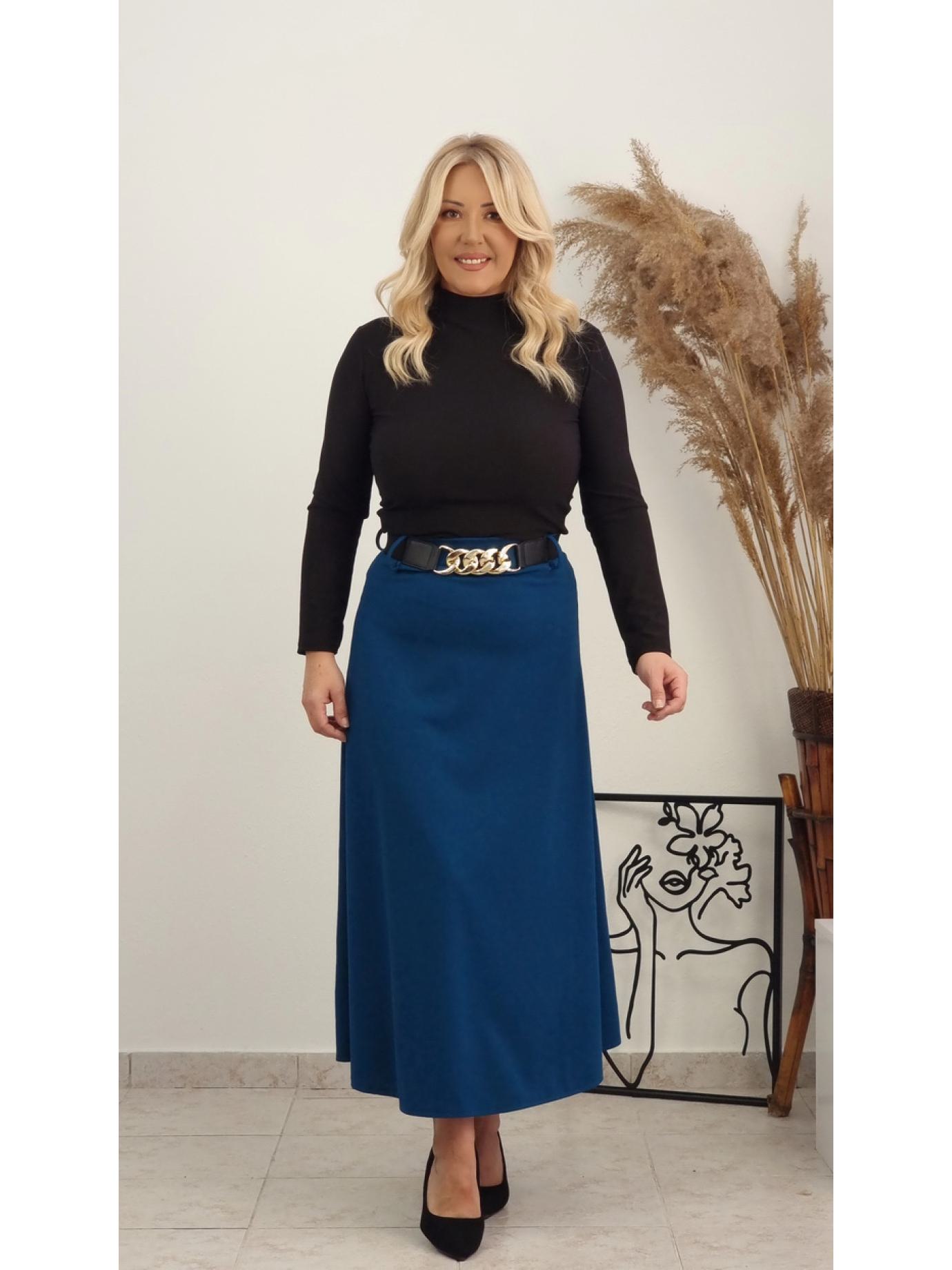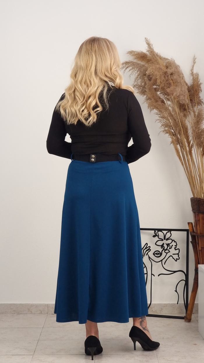 • Φούστα μίντι με ζώνη -Πετρόλ