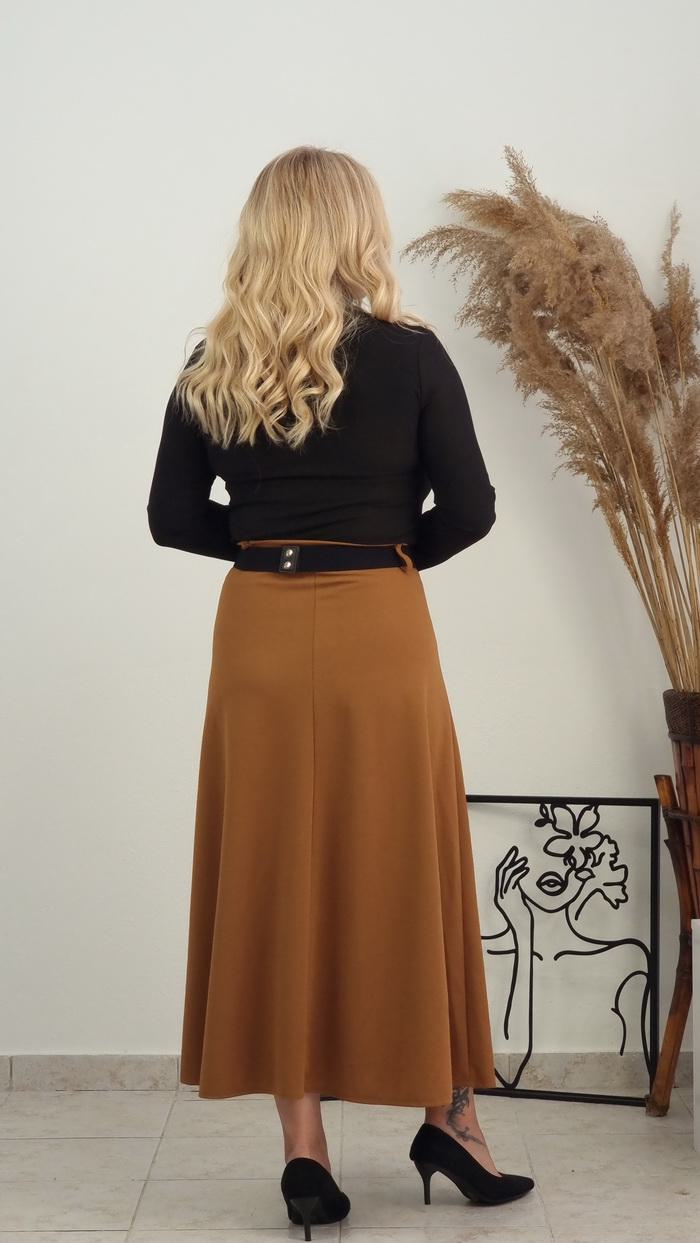 • Μίντι φούστα σε άλφα γραμμή με ύφασμα κρεπ και λάστιχο στη μέση