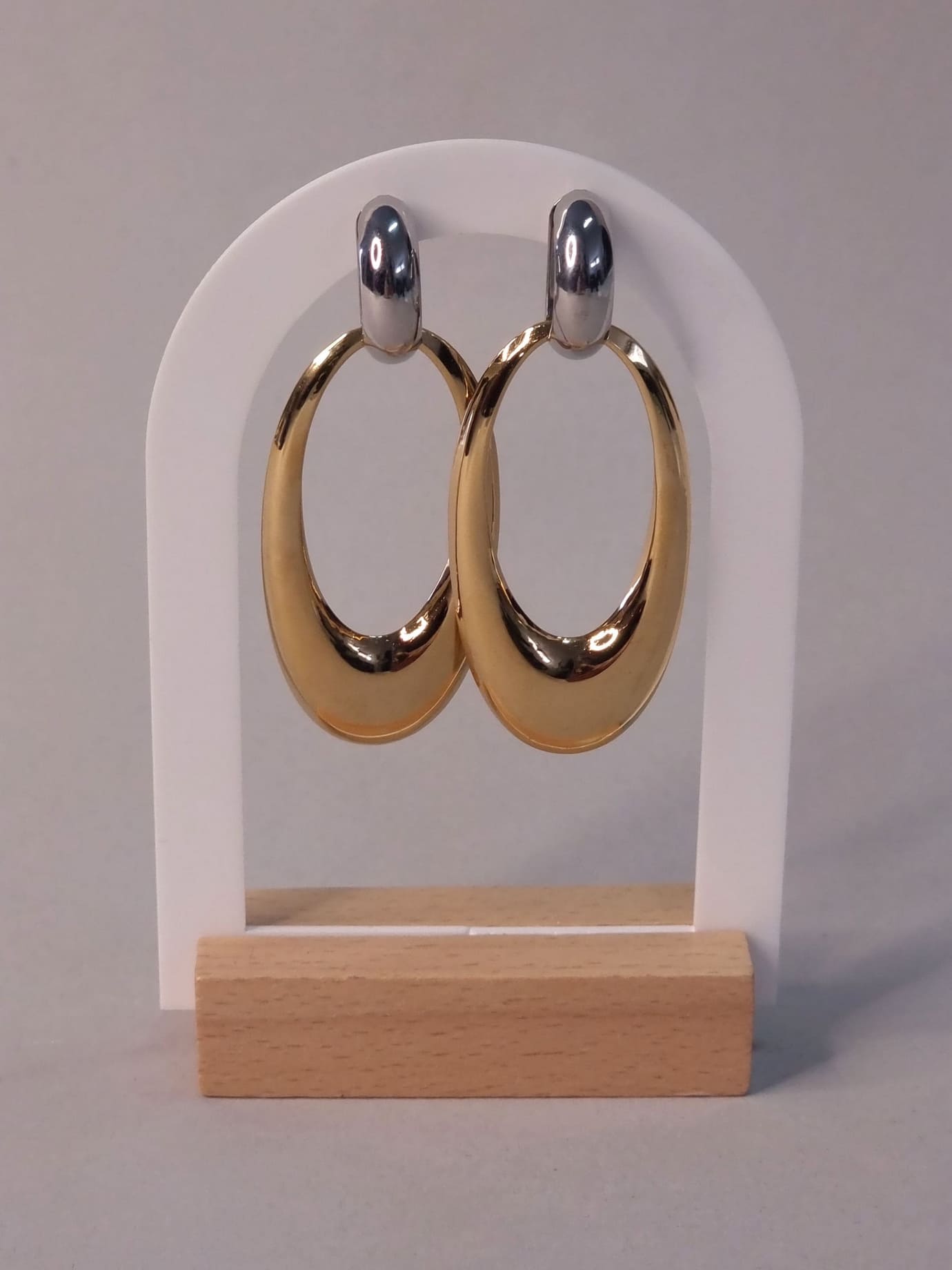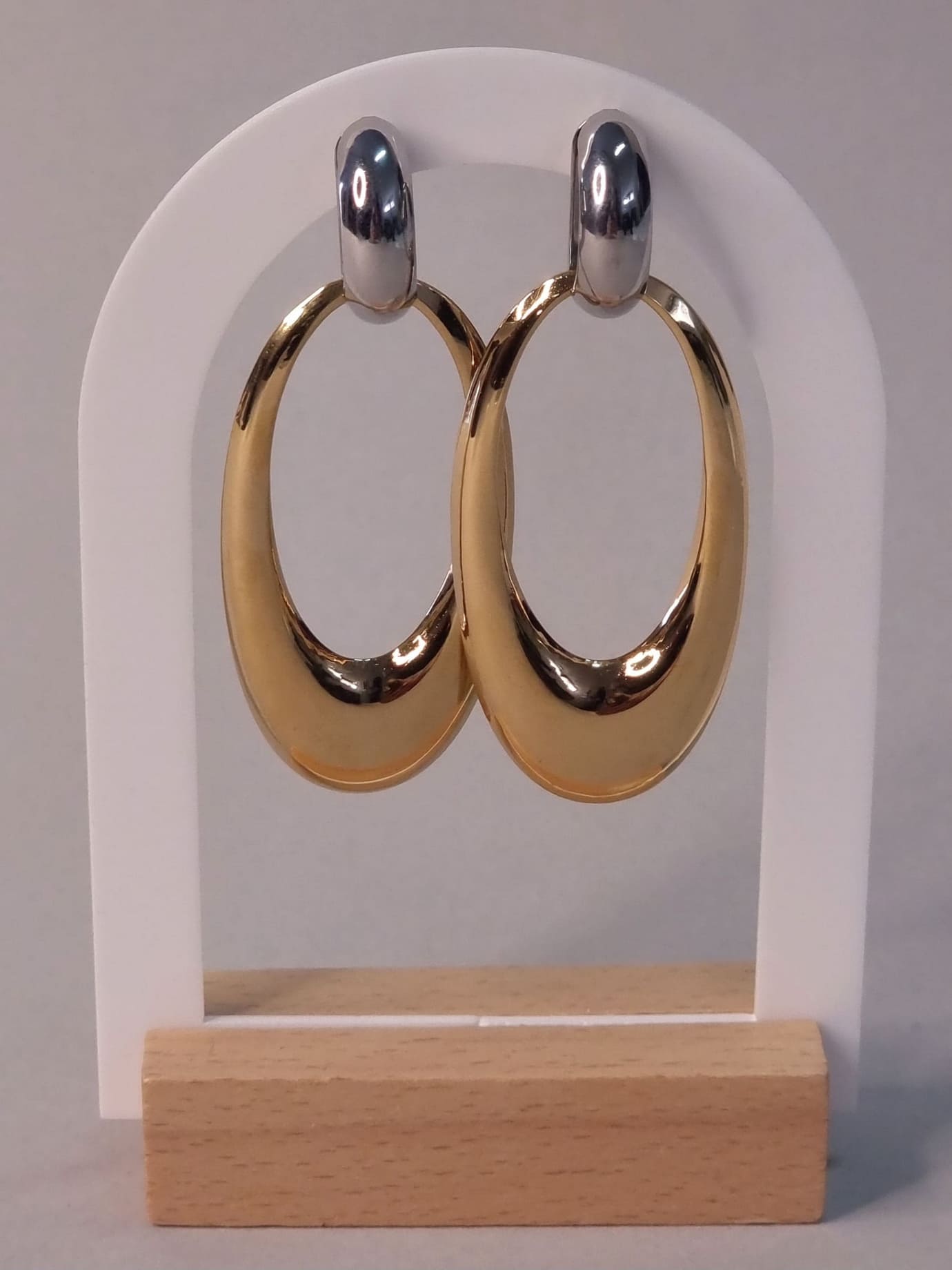 Γυναικεία κρεμαστά σκουλαρίκια δίχρωμα με οβάλ κρίκο