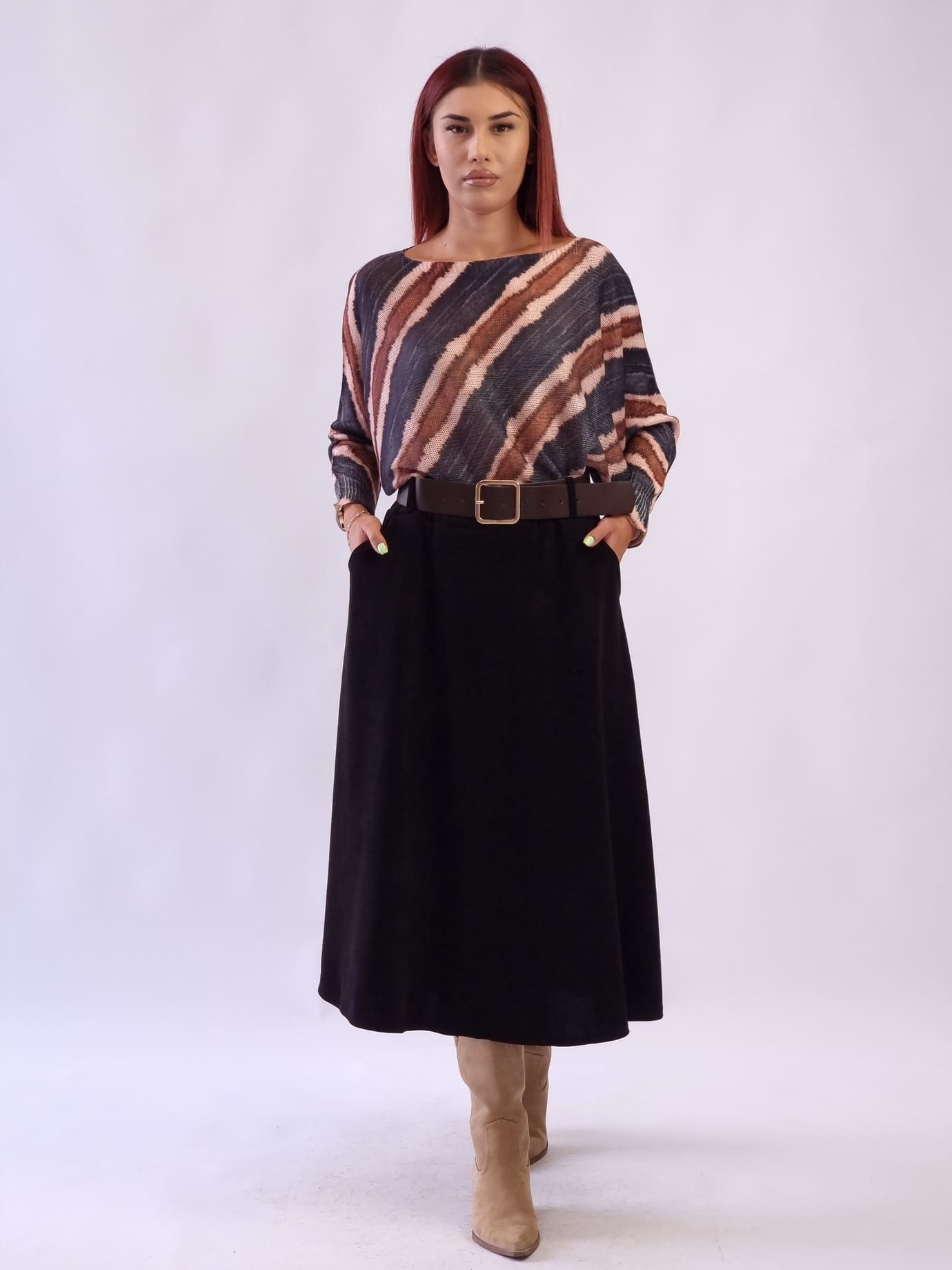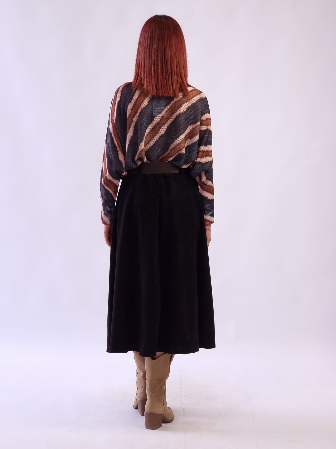 Γυναικεία μίντι φούστα με λάστιχο και ζώνη Μαύρο