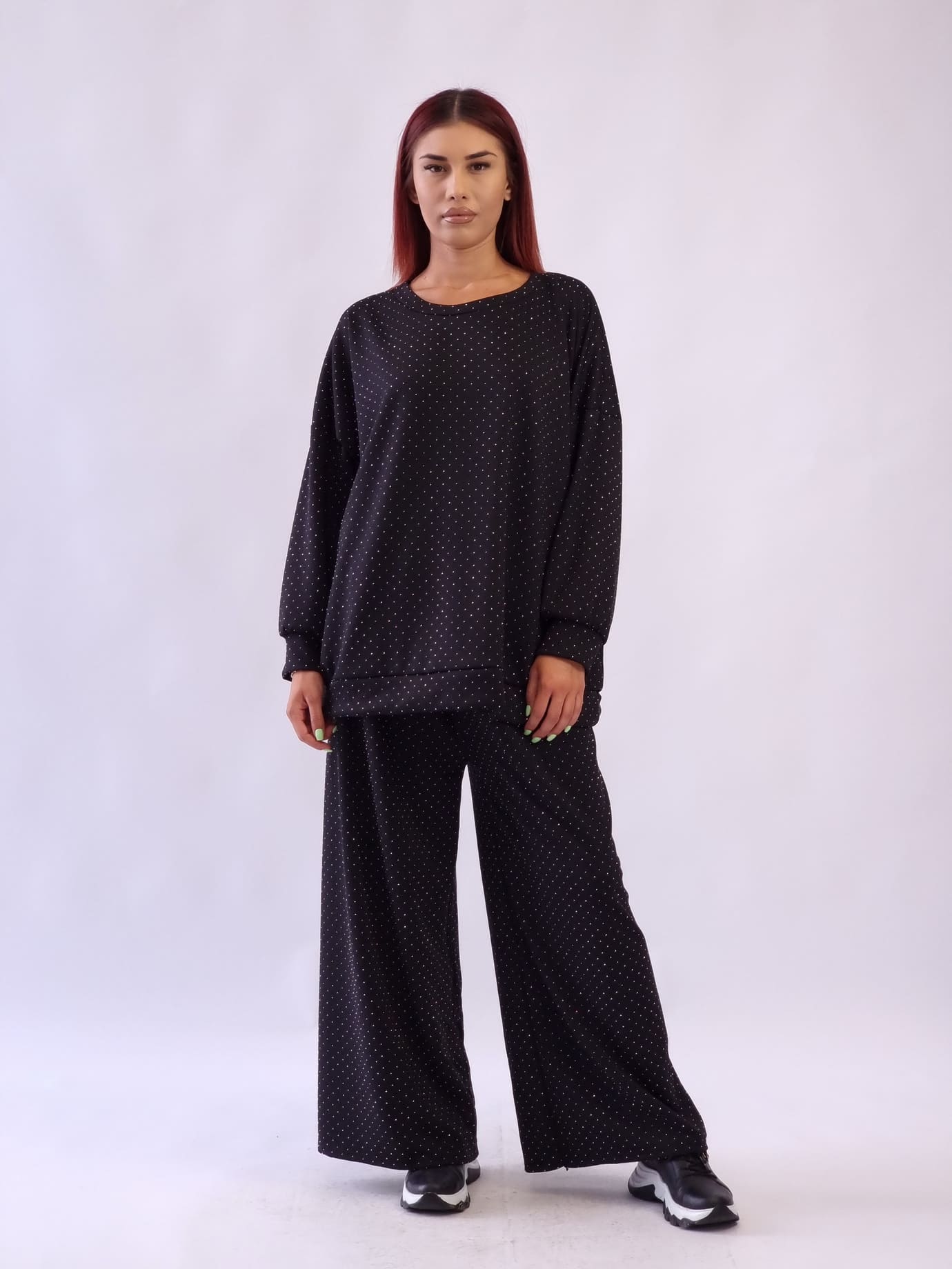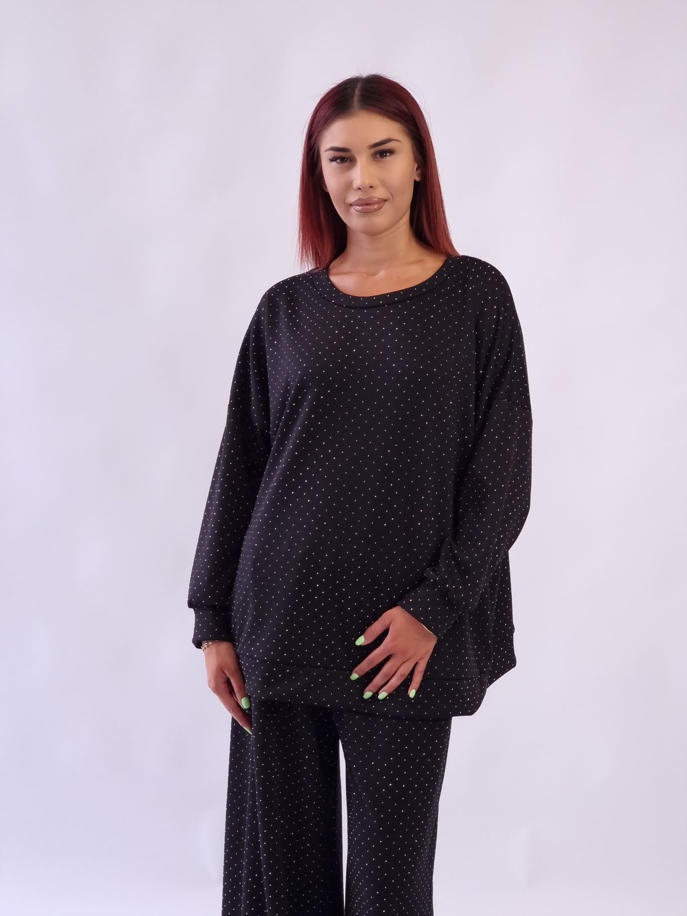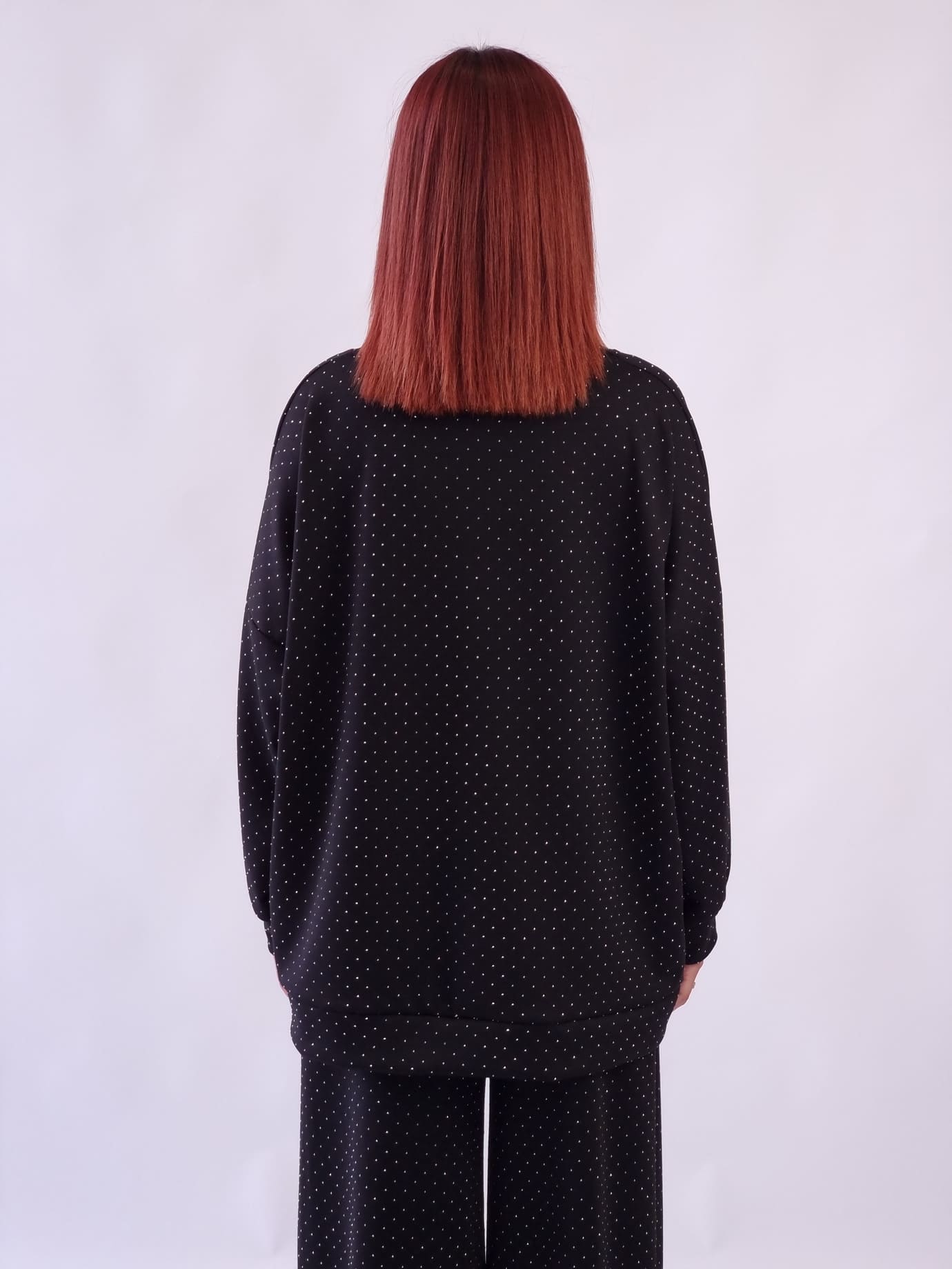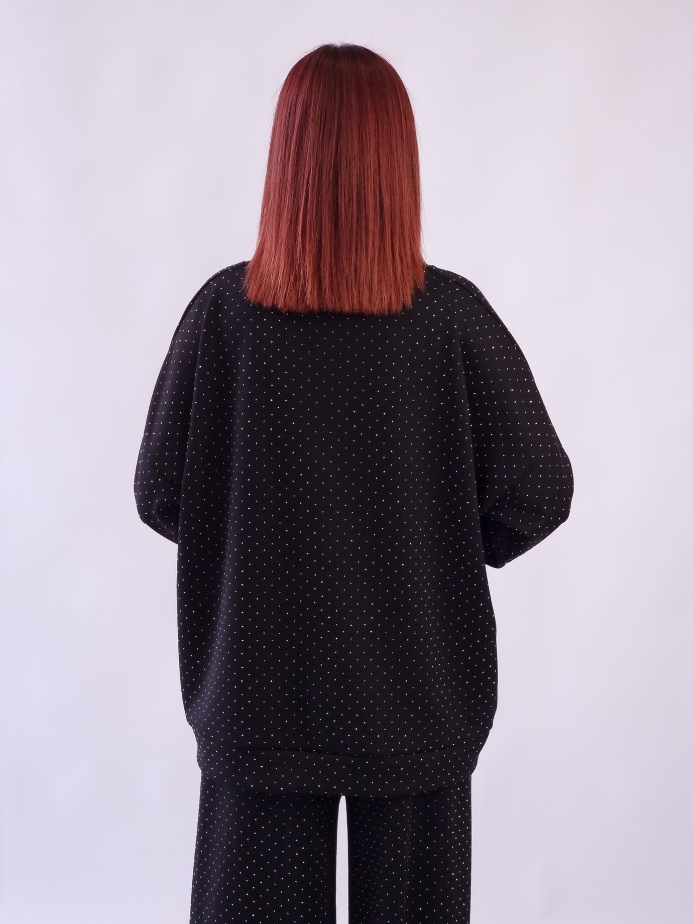 • Γυναικεία μπλούζα με στρας λεπτομέρεια oversized Μαύρο