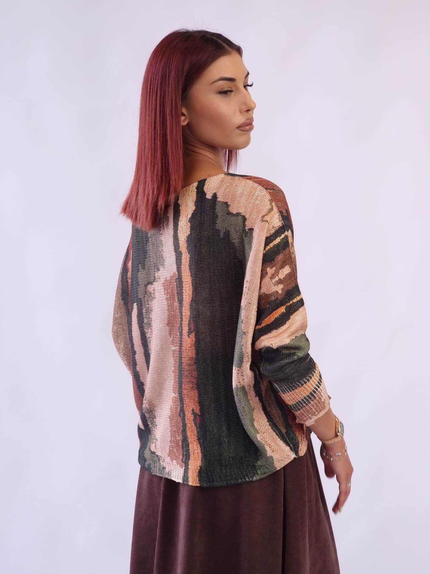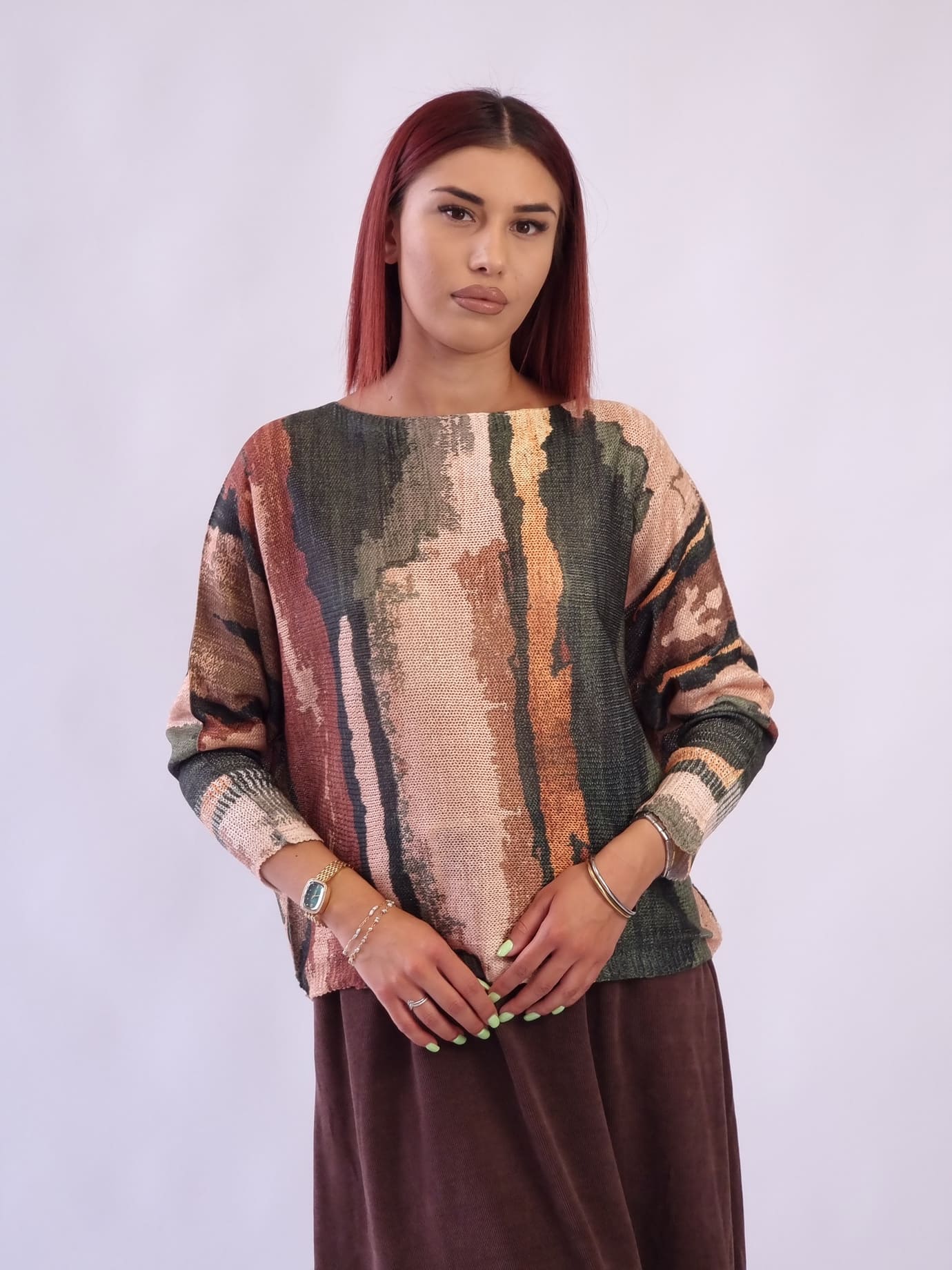 • Γυναικεία μπλούζα oversized με ρίγες Πράσινο