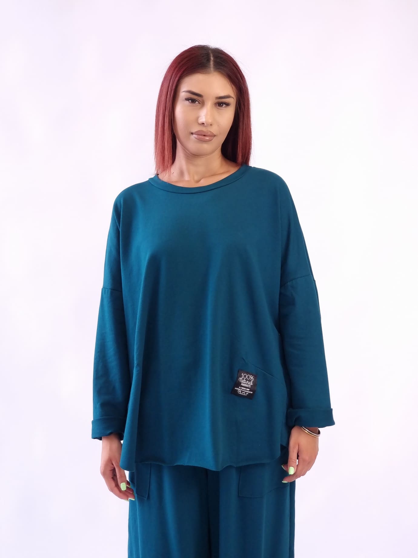 Γυναικεία μπλούζα βαμβακερή Πετρόλ