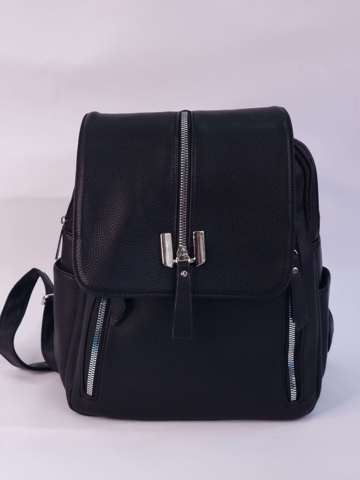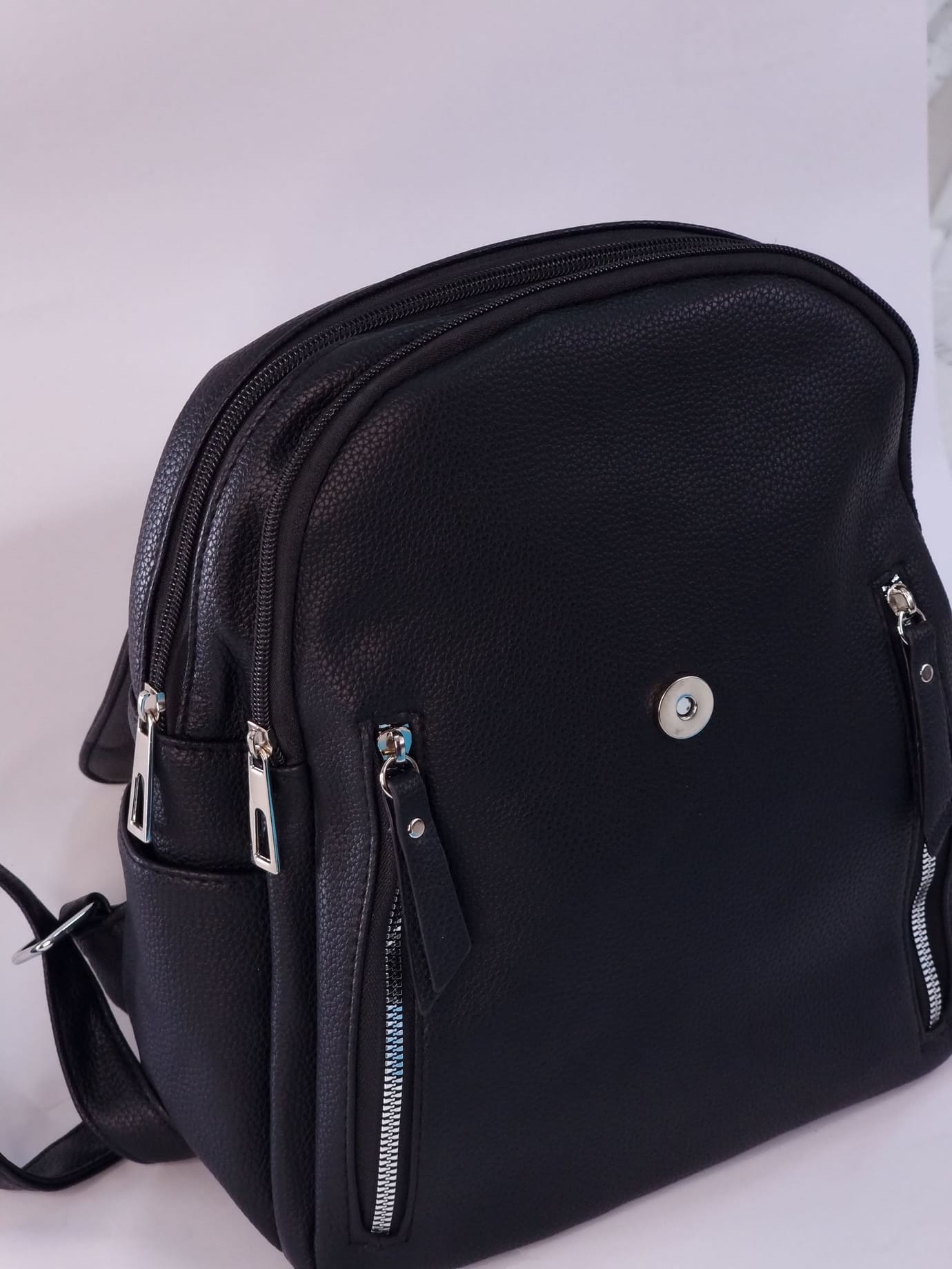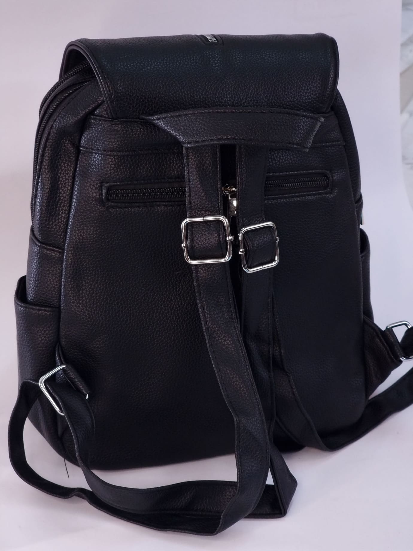 Γυναικεία τσάντα πλάτης δερματίνη ασημί λεπτομέρειες Μαύρο