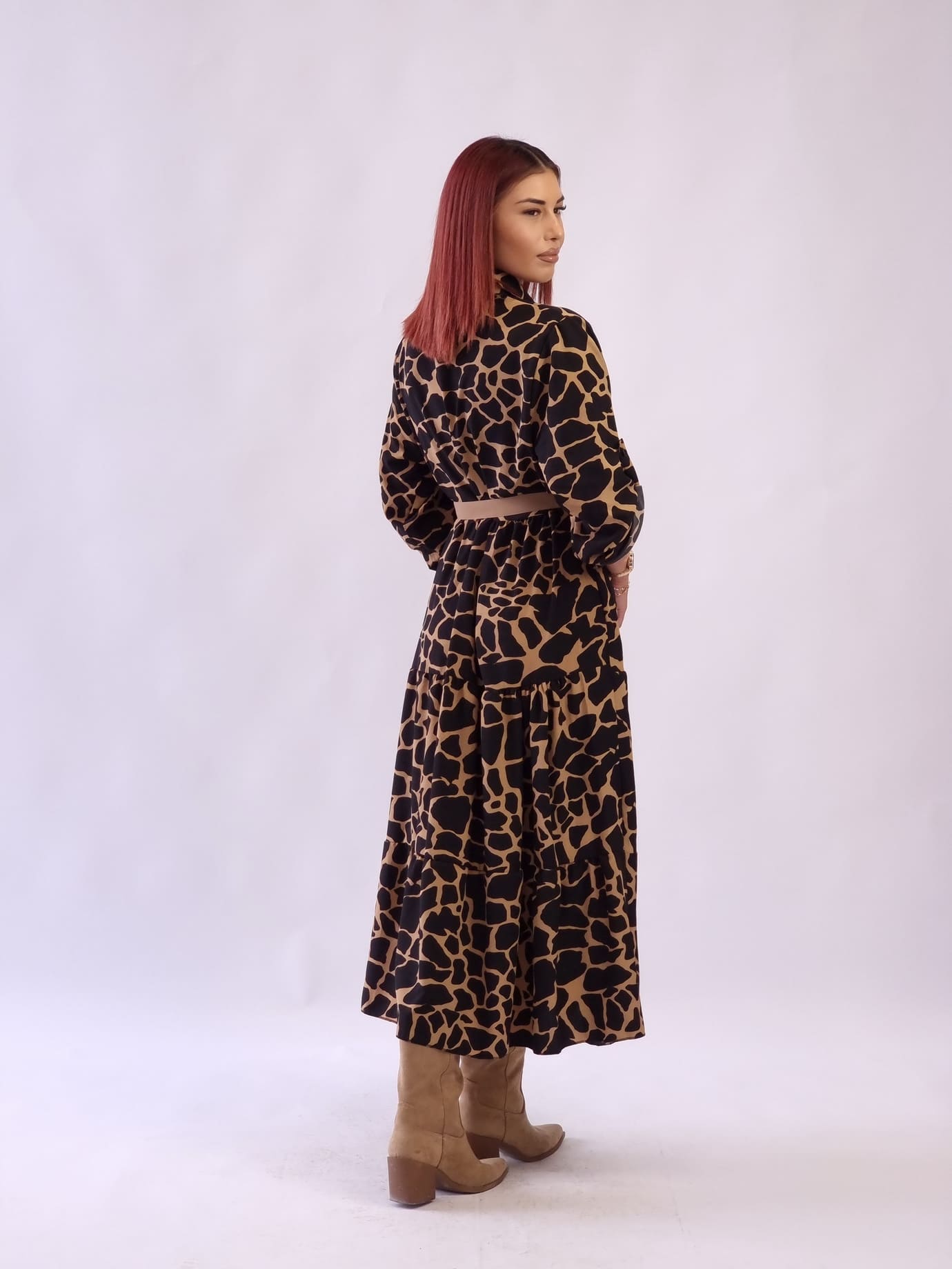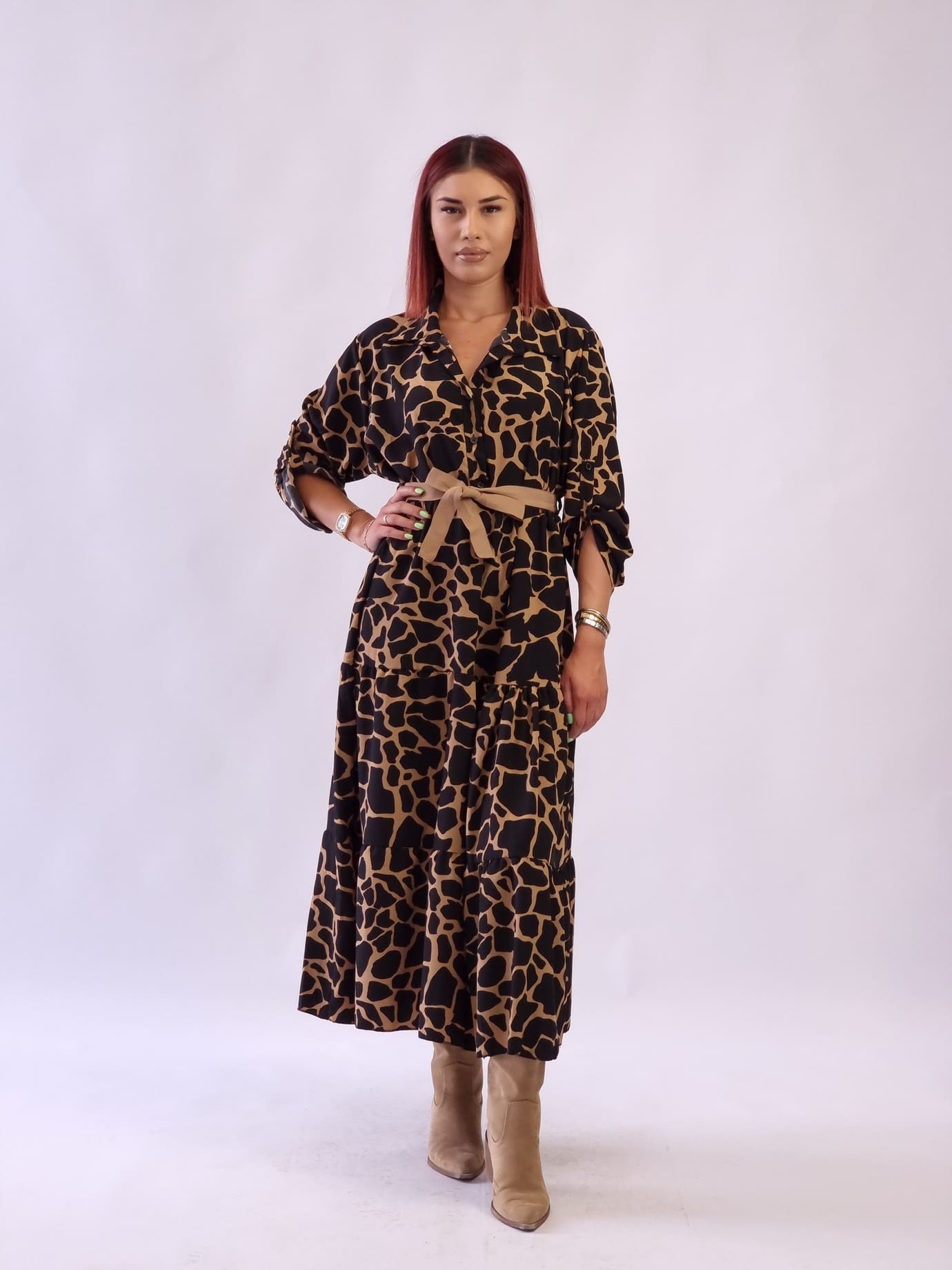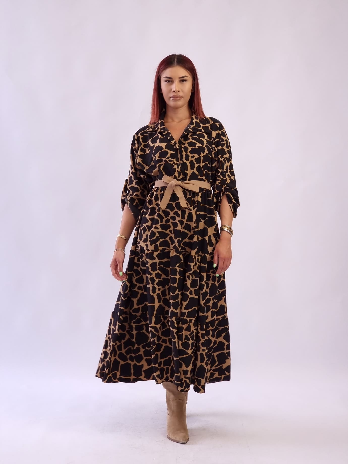 Γυναικείο φόρεμα animal print με ζώνη Giraffe