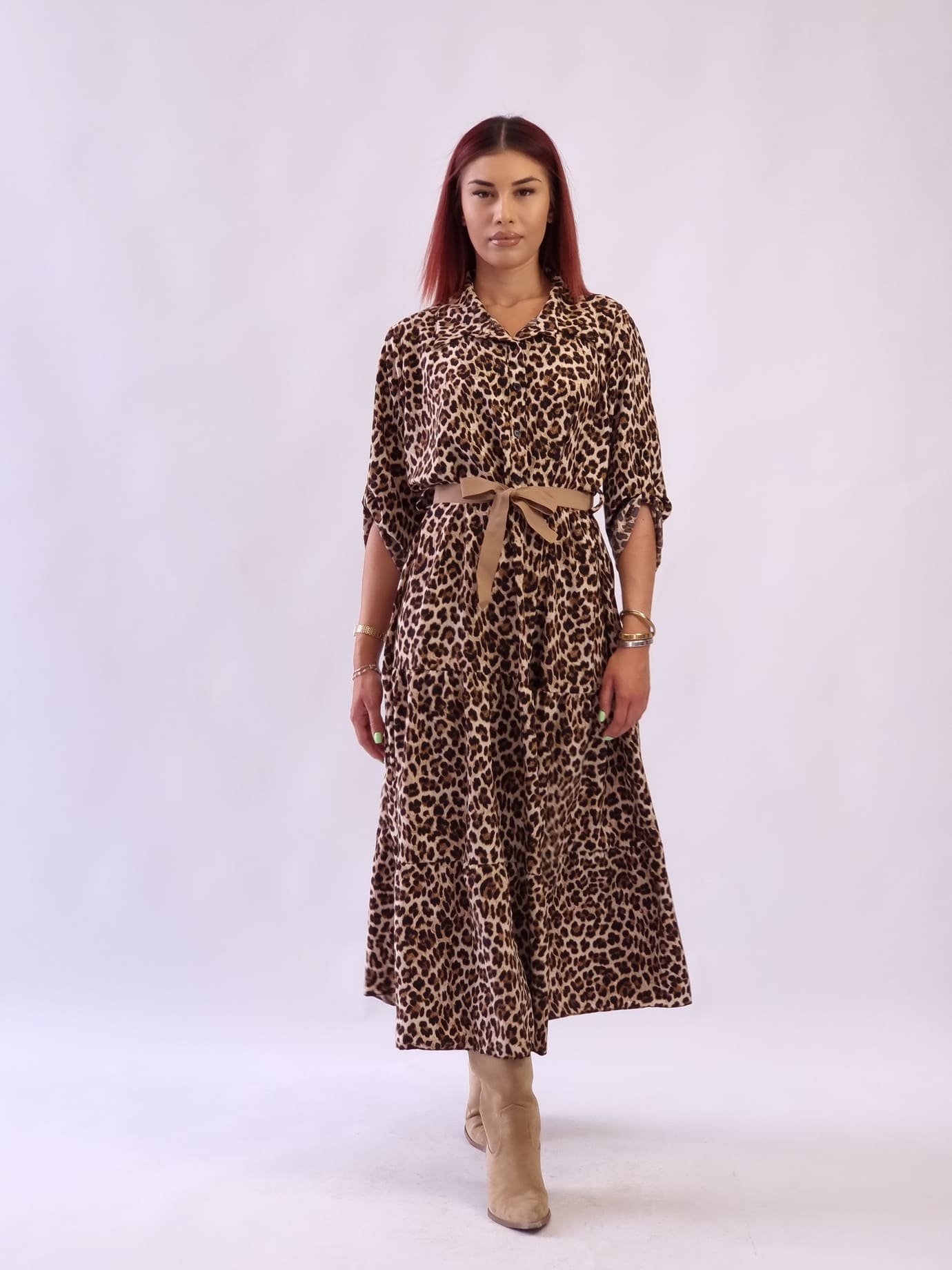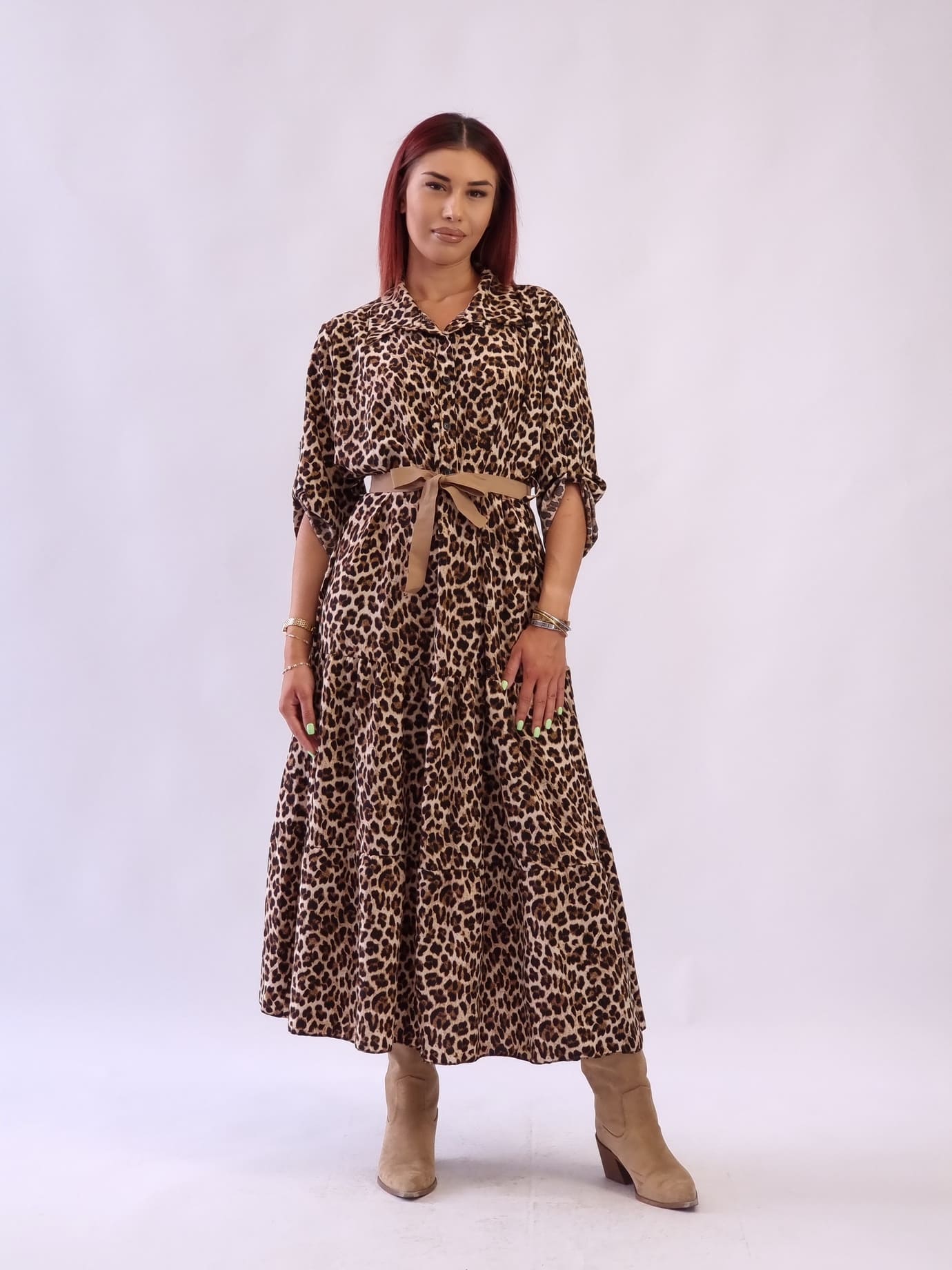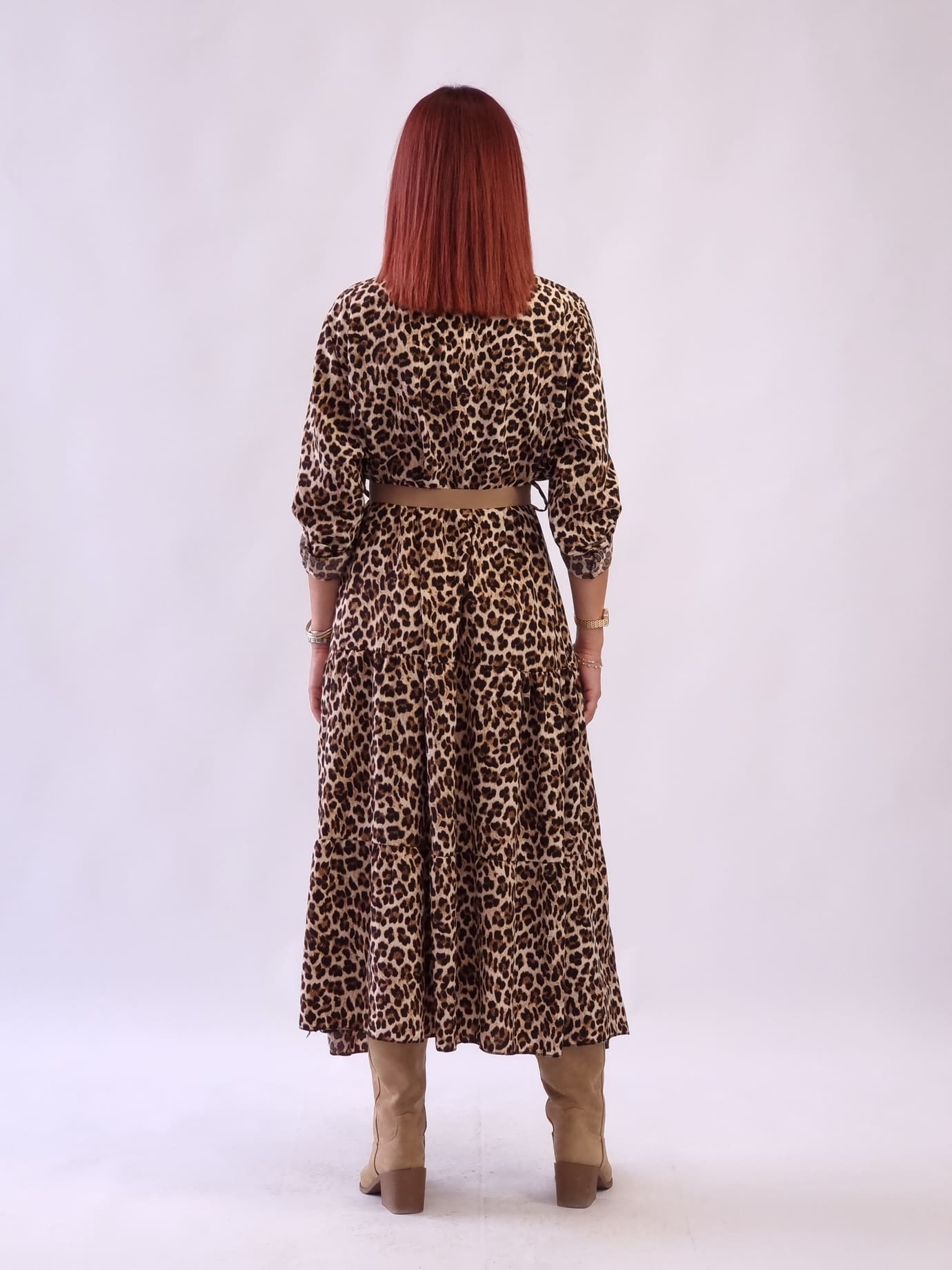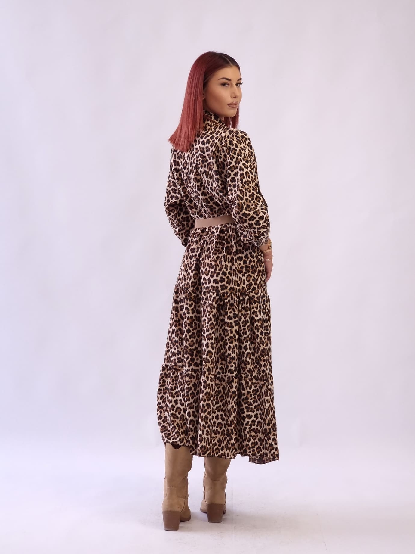 • Γυναικείο φόρεμα animal print με ζώνη Λεοπάρ