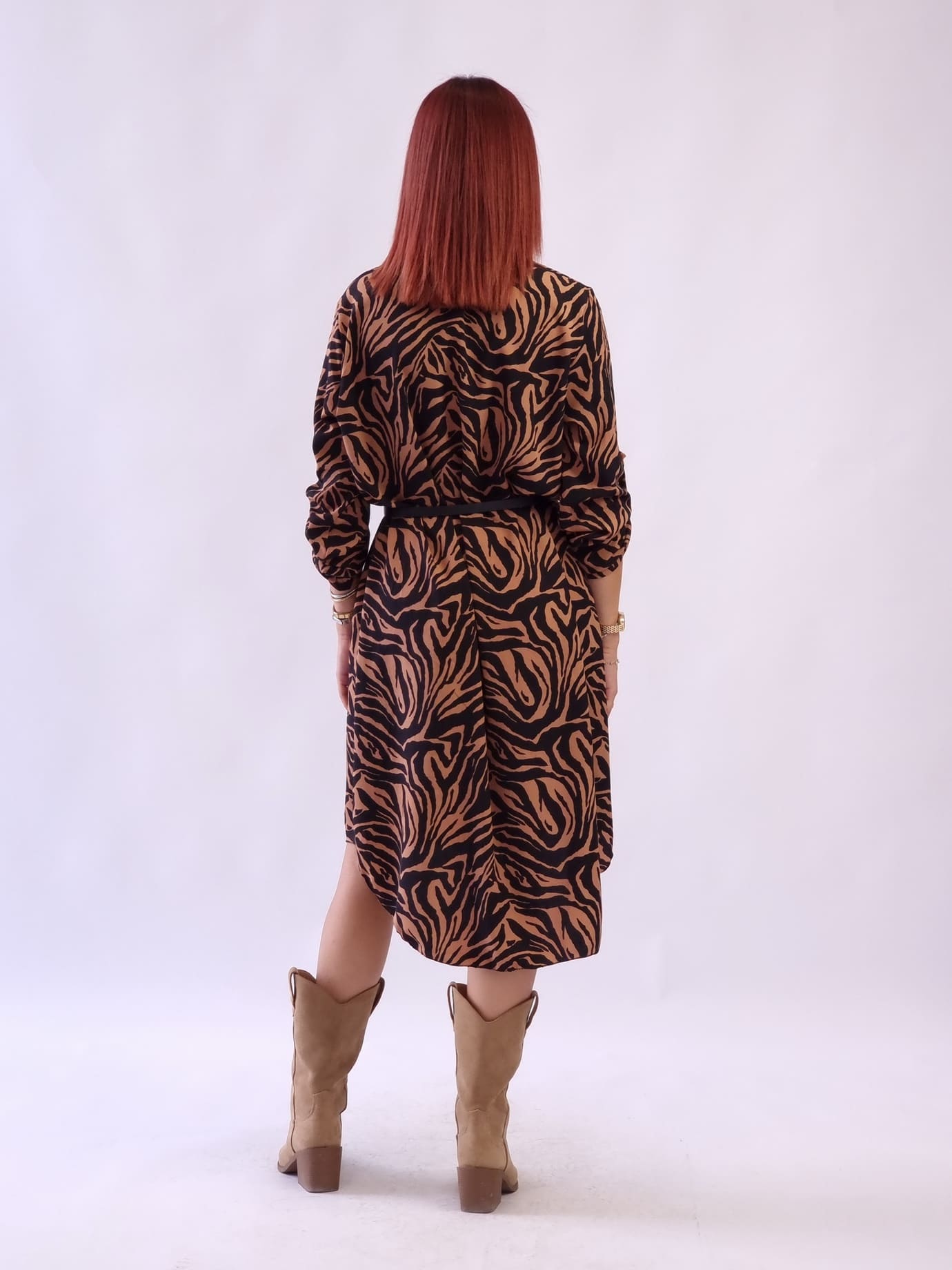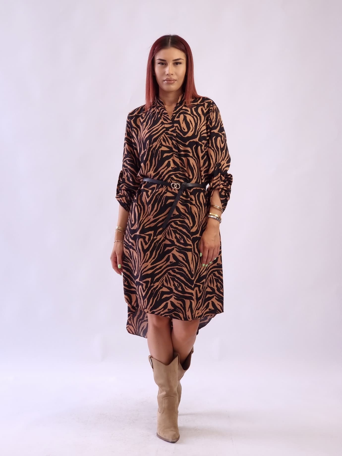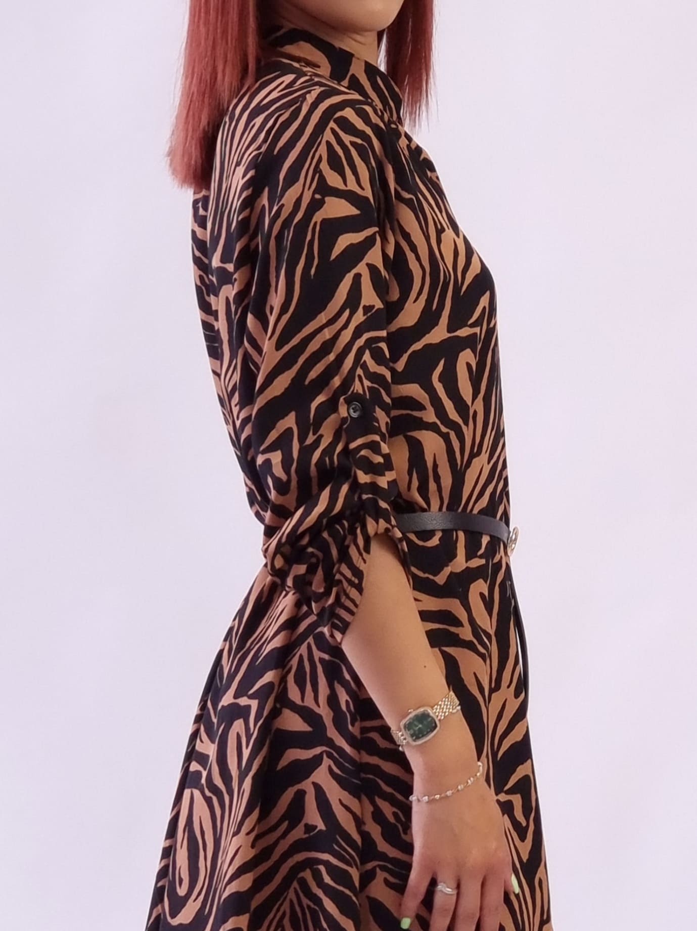 • Γυναικείο φόρεμα animal print με ζώνη Ζέβρα ταμπά