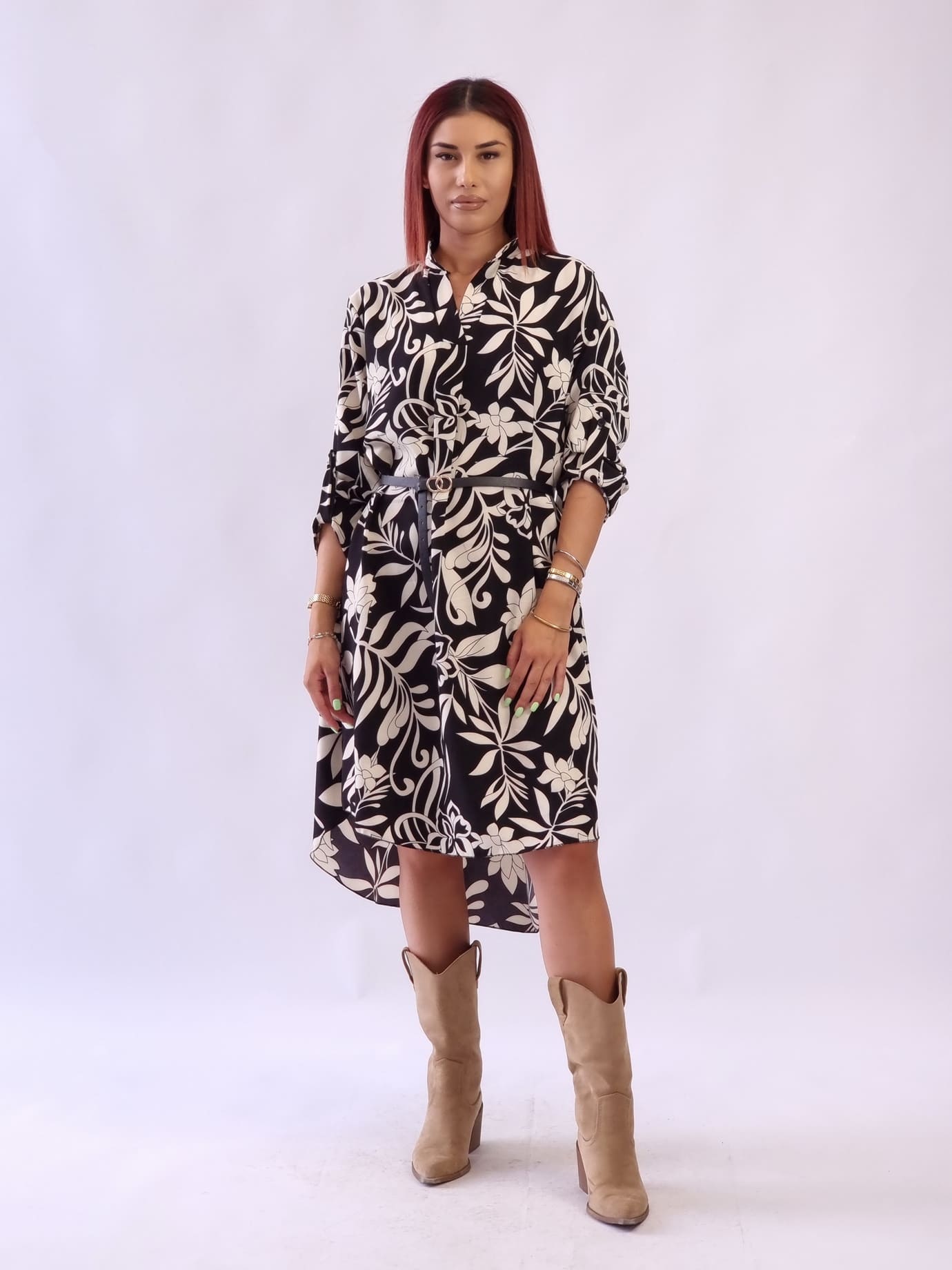 • Γυναικείο φόρεμα με ζώνη print Φλοράλ