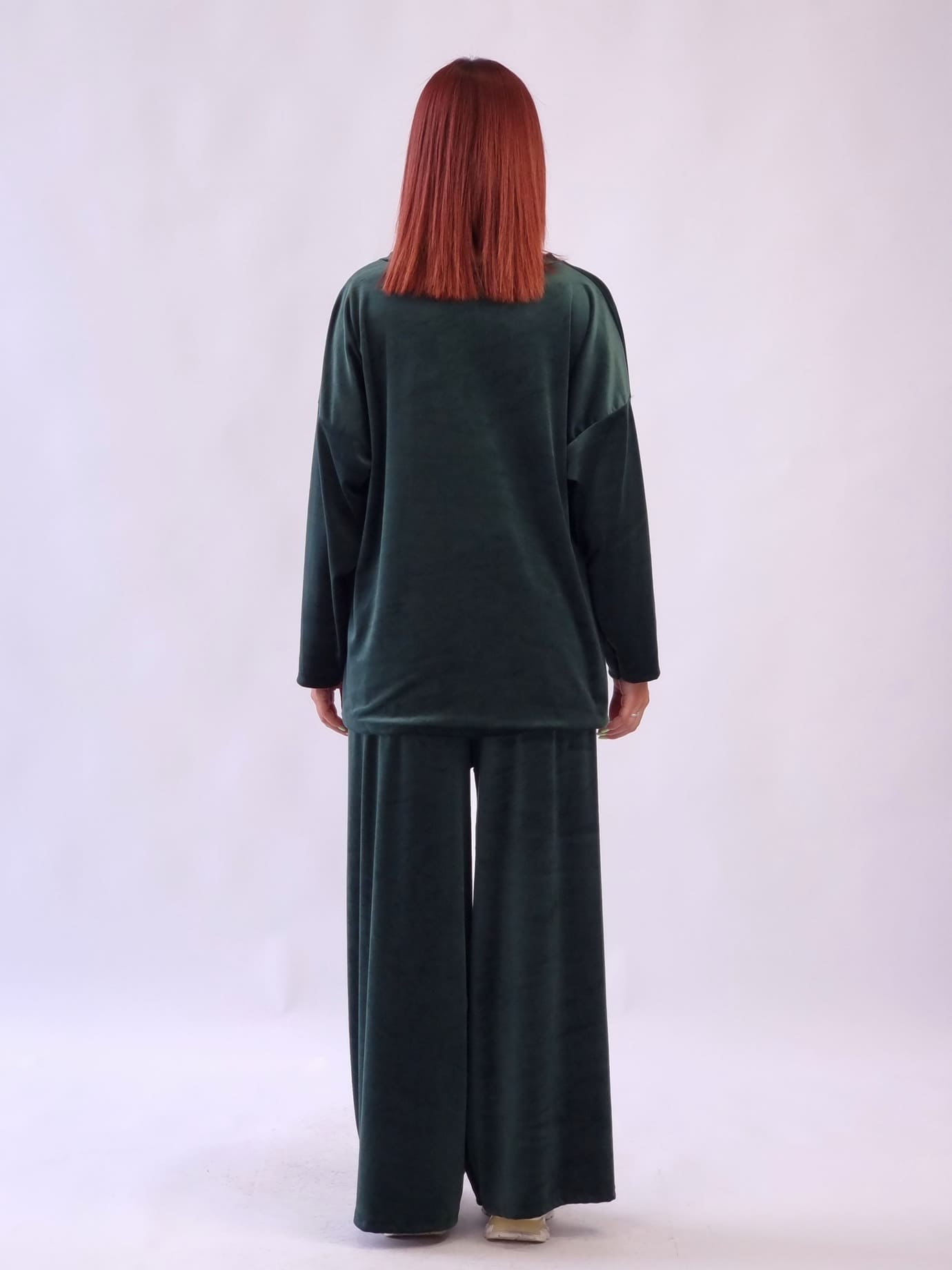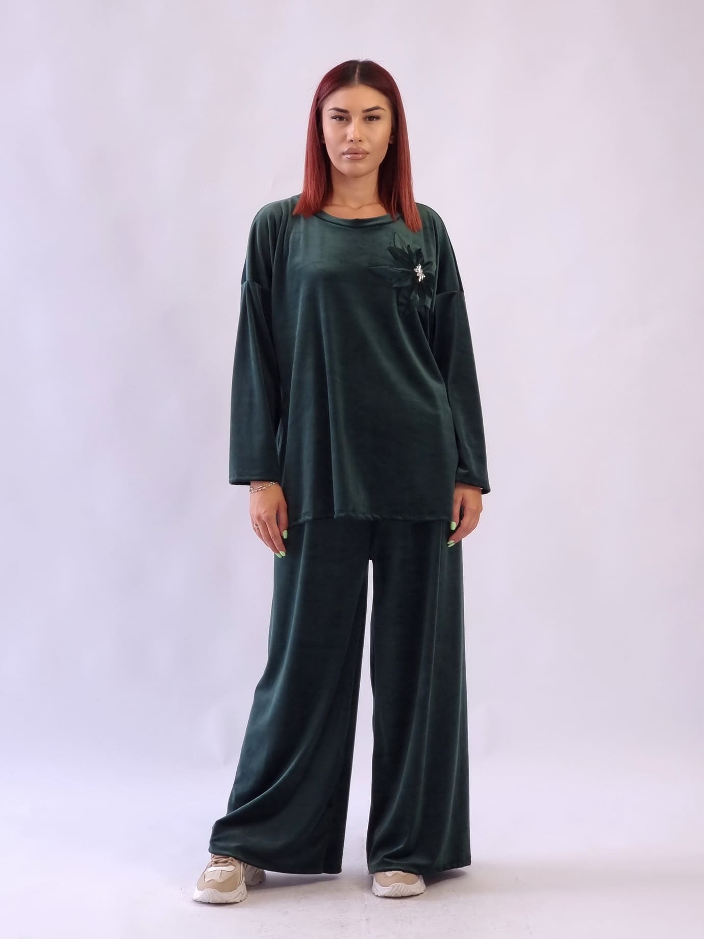 Γυναικείο σετ velvet μπλούζα με παντελόνι Κυπαρισσί