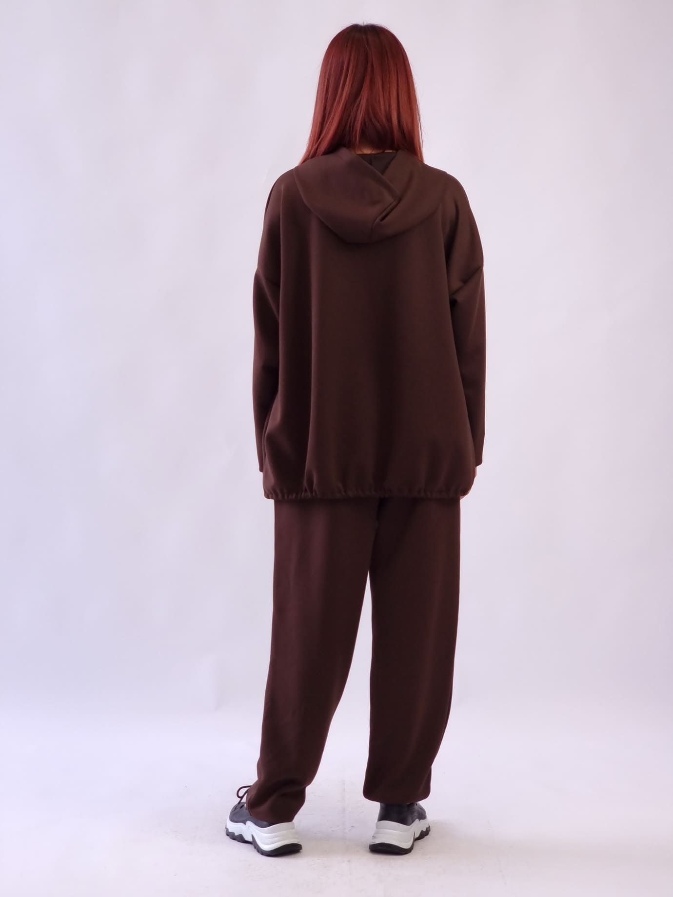• Γυναικείο σετ ζακέτα με κουκούλα παντελόνι Καφέ