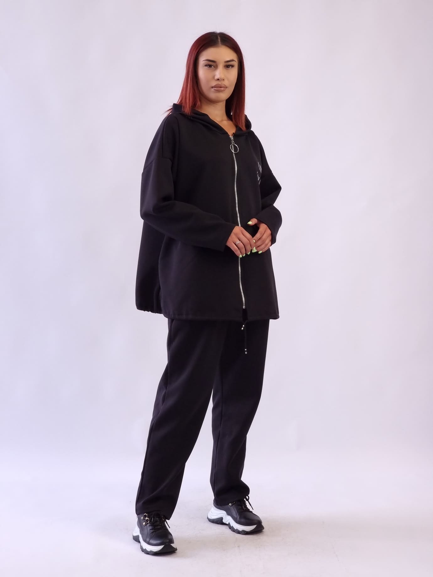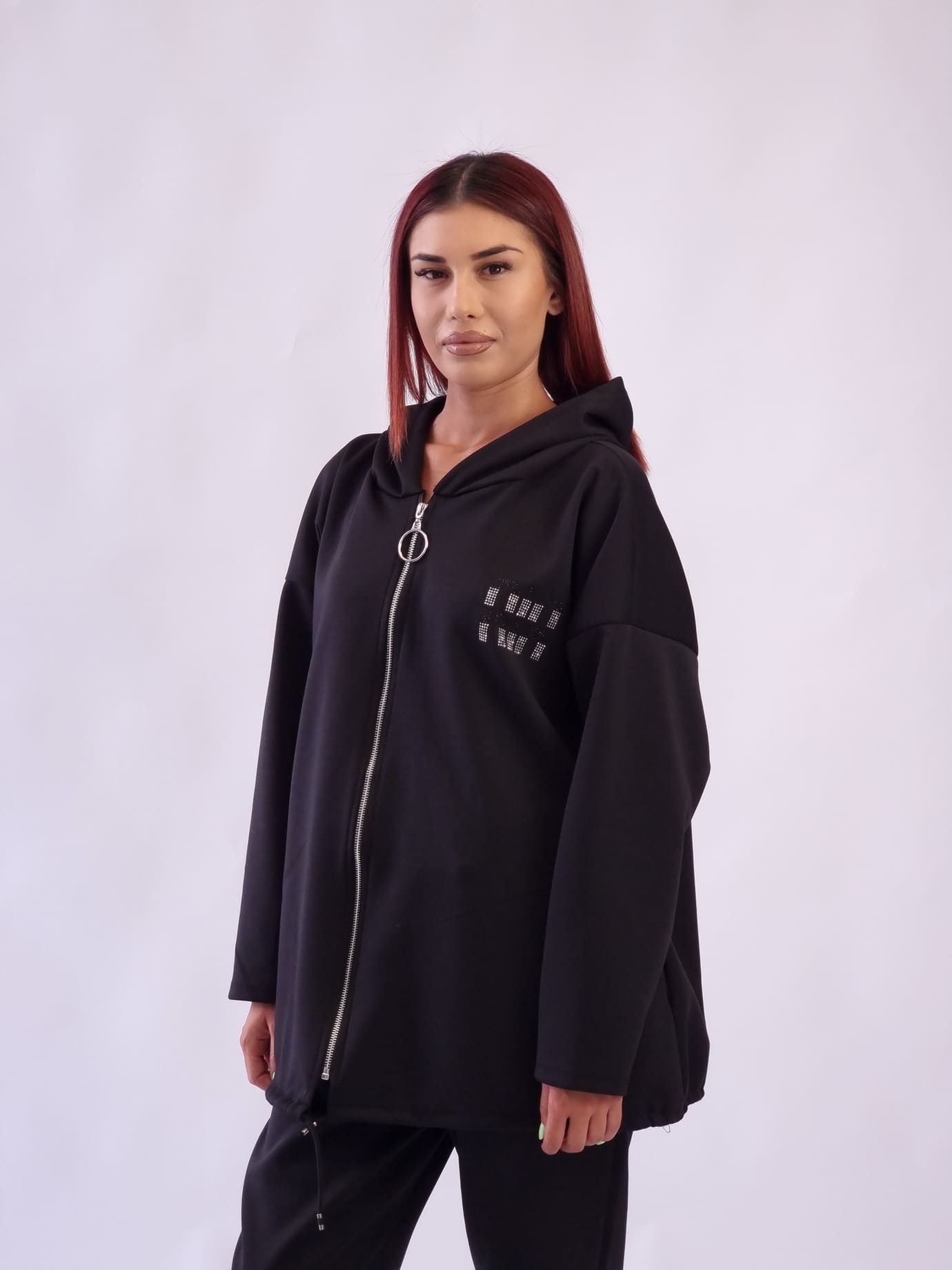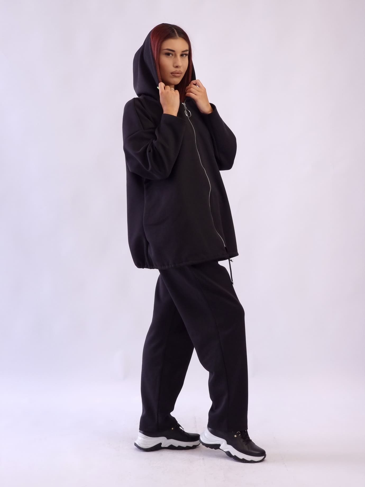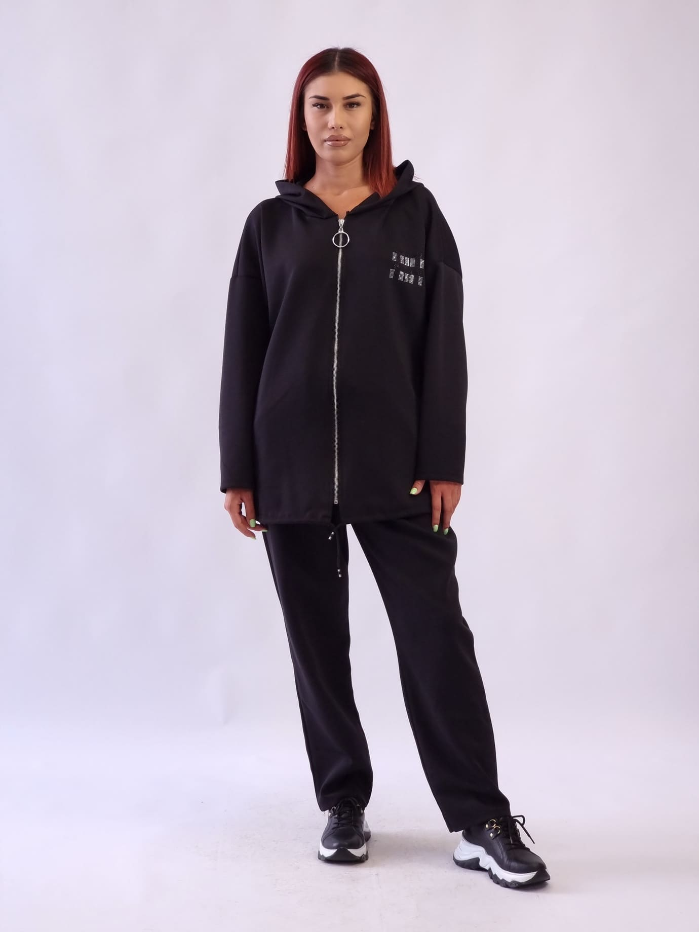 • Γυναικείο σετ ζακέτα με κουκούλα παντελόνι Μαύρο