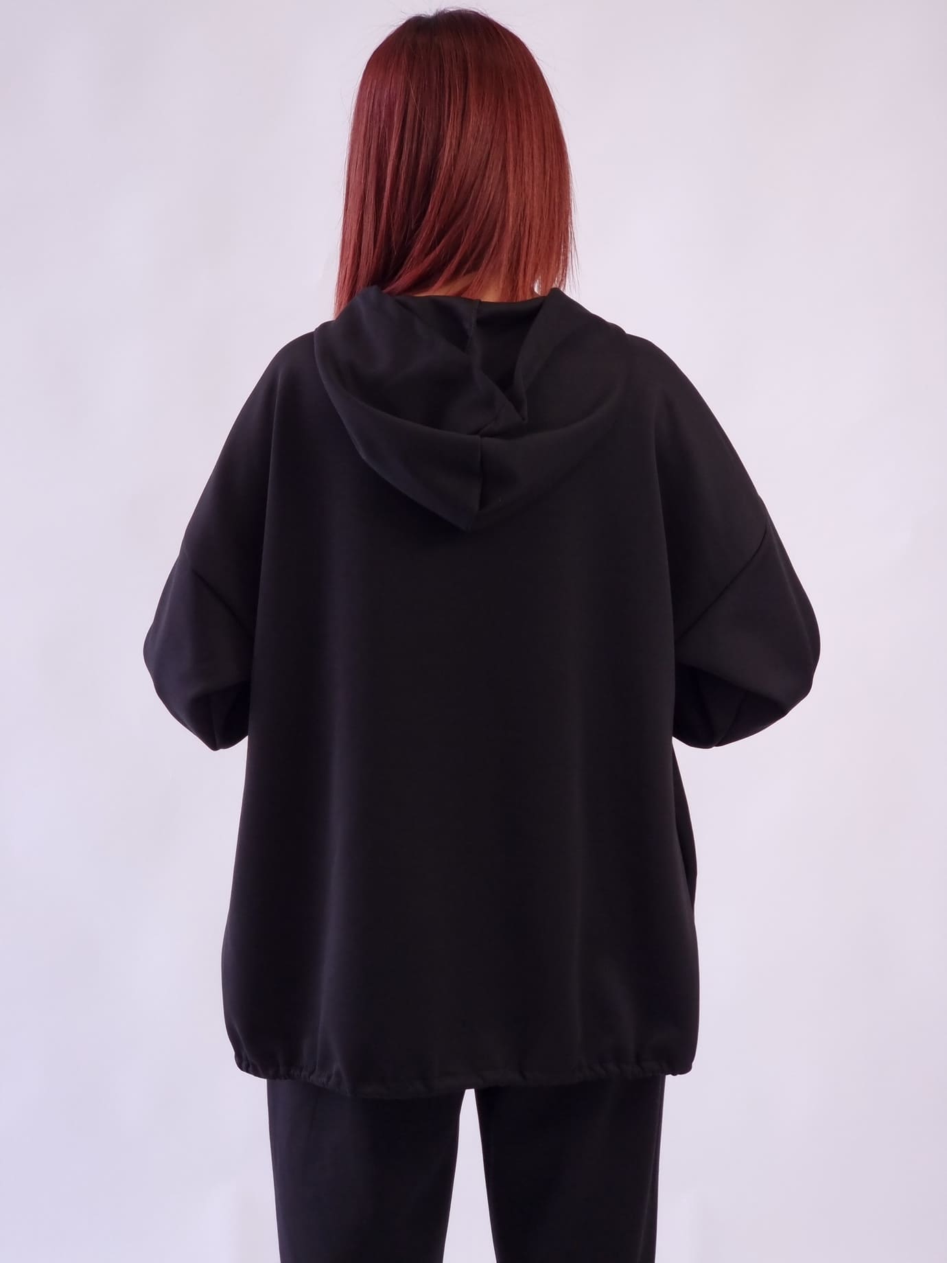 Γυναικείο σετ ζακέτα με κουκούλα παντελόνι Μαύρο