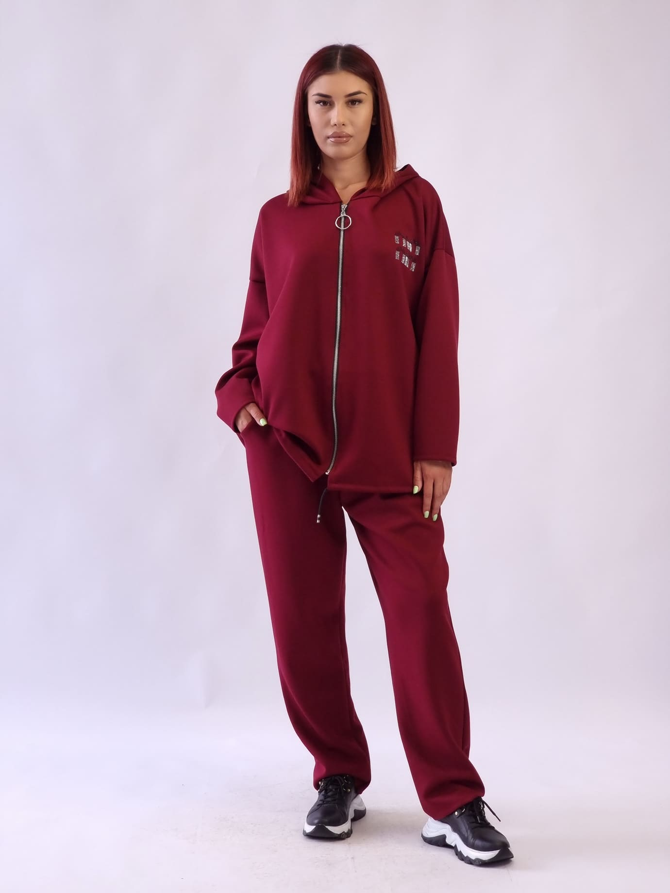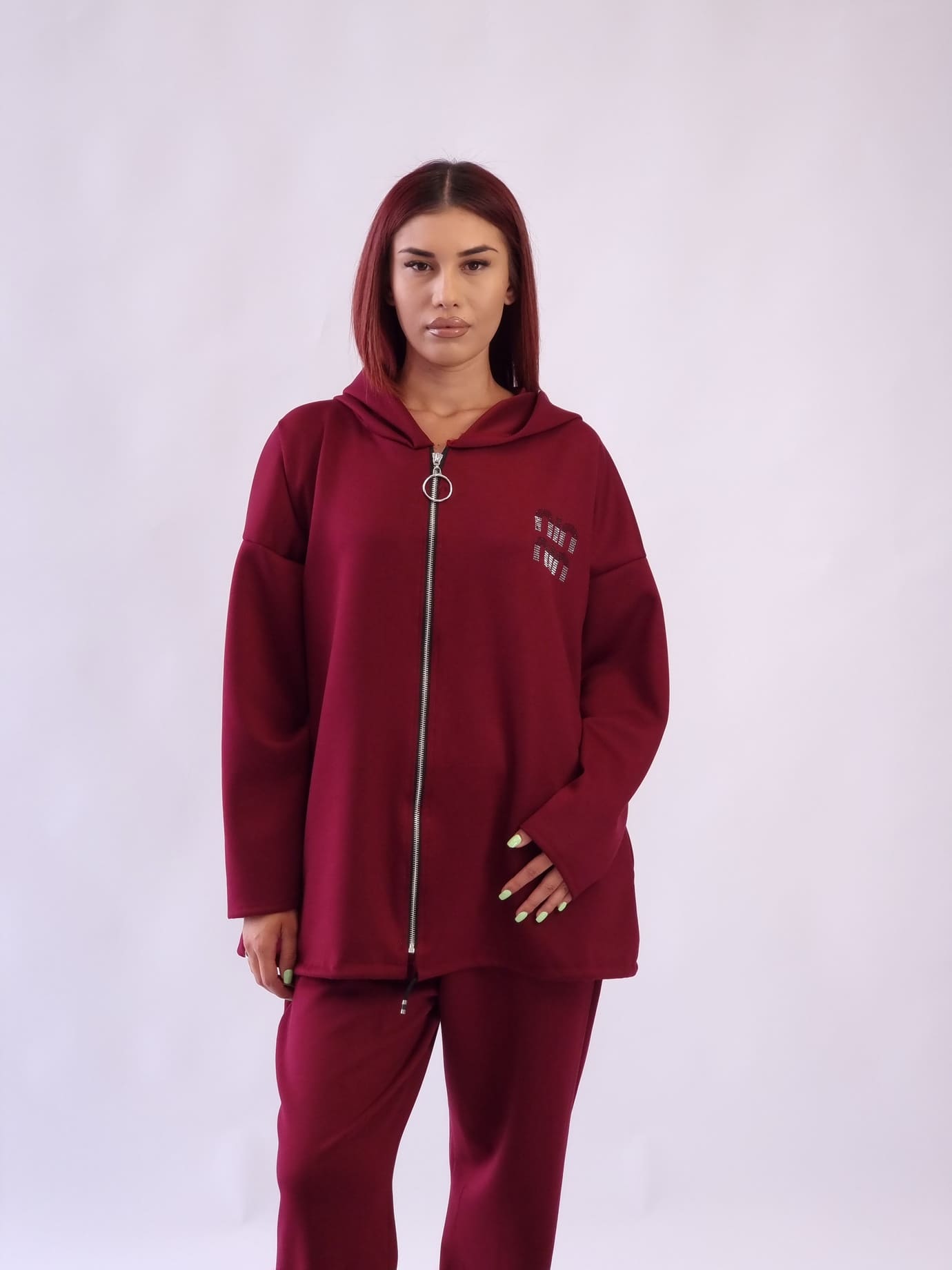 • Σετ ζακέτα με κουκούλα παντελόνι Μπορντό