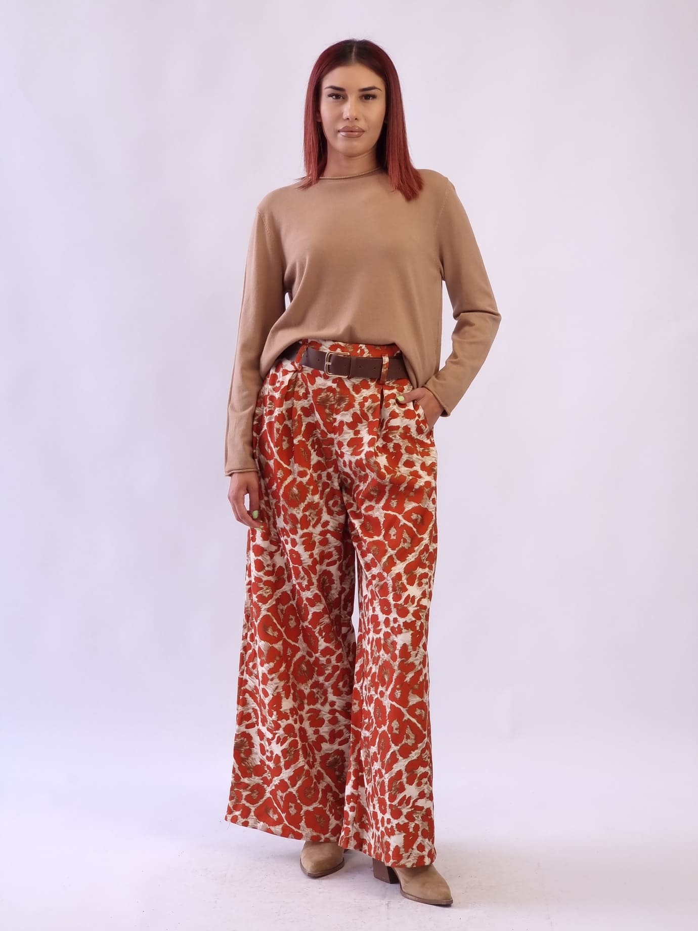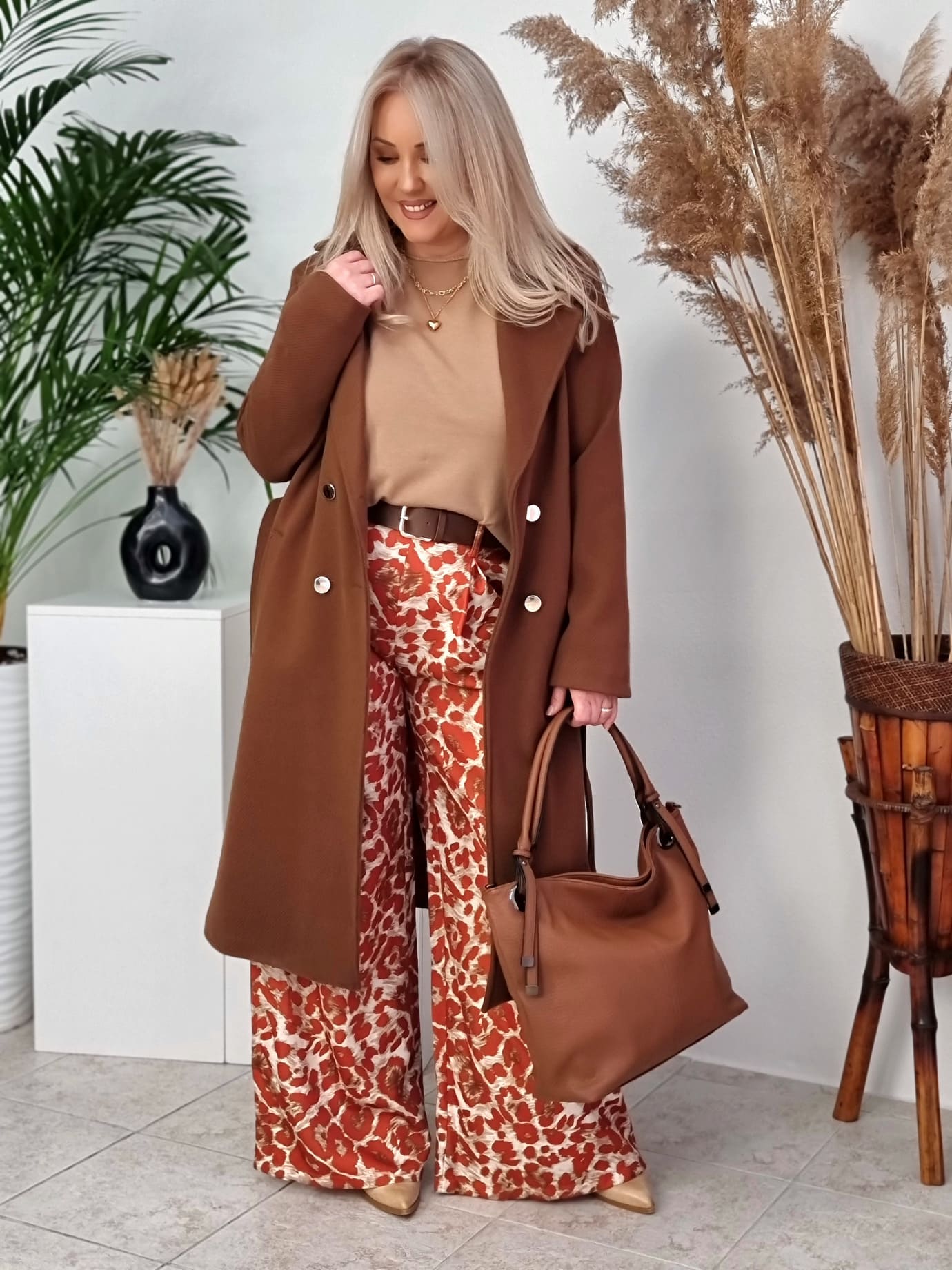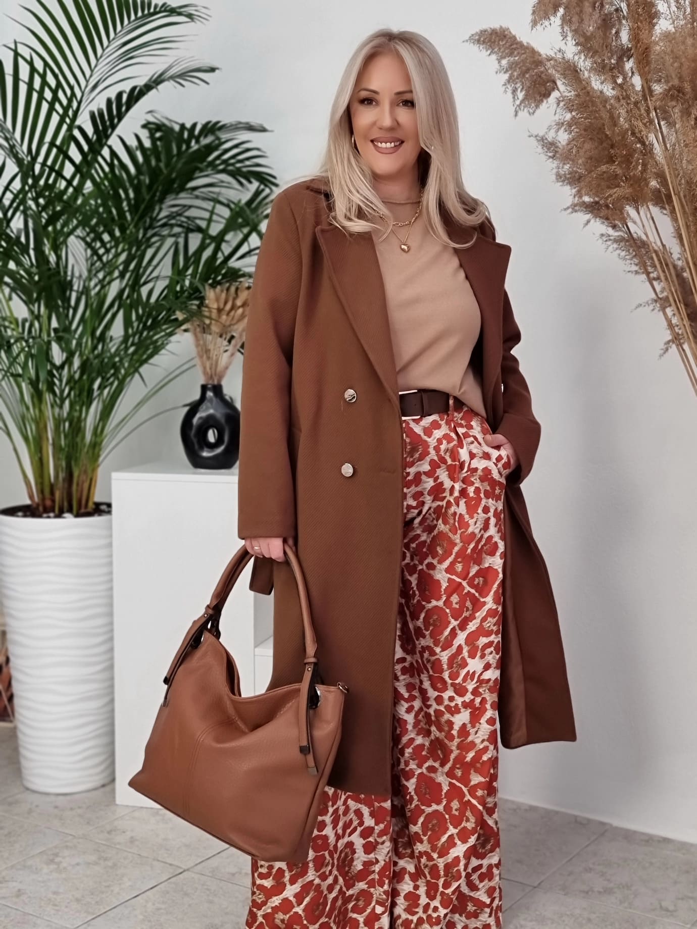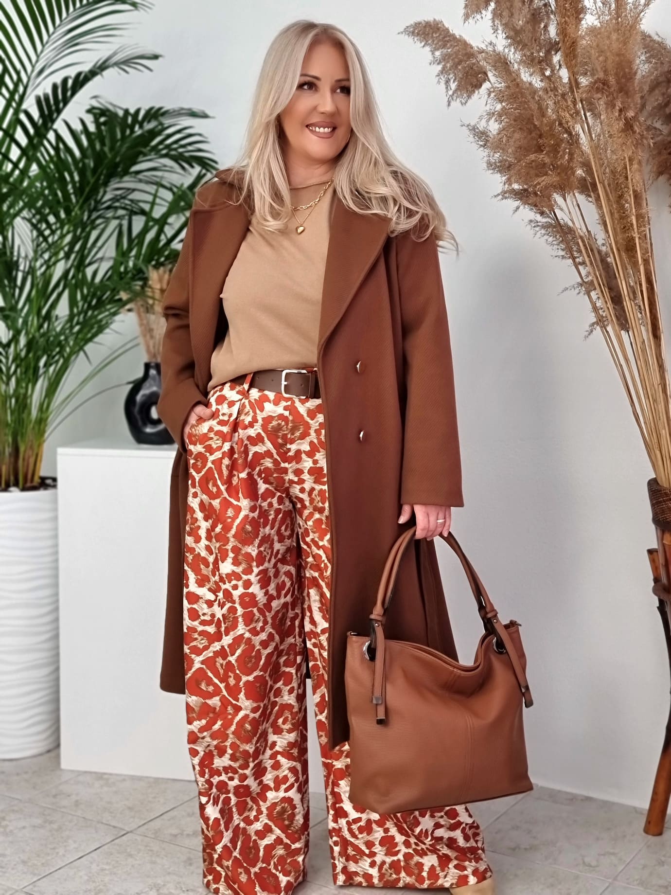 Αυτό το look είναι για εσένα που αγαπάς τη φυσική κομψότητα αλλά θέλεις και κάτι παραπάνω – ένα ντύσιμο που να ανεβάζει τη διάθεσή σου από το πρωί. Ένα look γεμάτο φως και ζεστασιά. Το καμηλό παλτό συνδυάζεται αρμονικά με τη μπεζ μπλούζα και την printed παντελόνα, δημιουργώντας μια κομψή εμφάνιση που αποπνέει σιγουριά και θηλυκή ενέργεια.