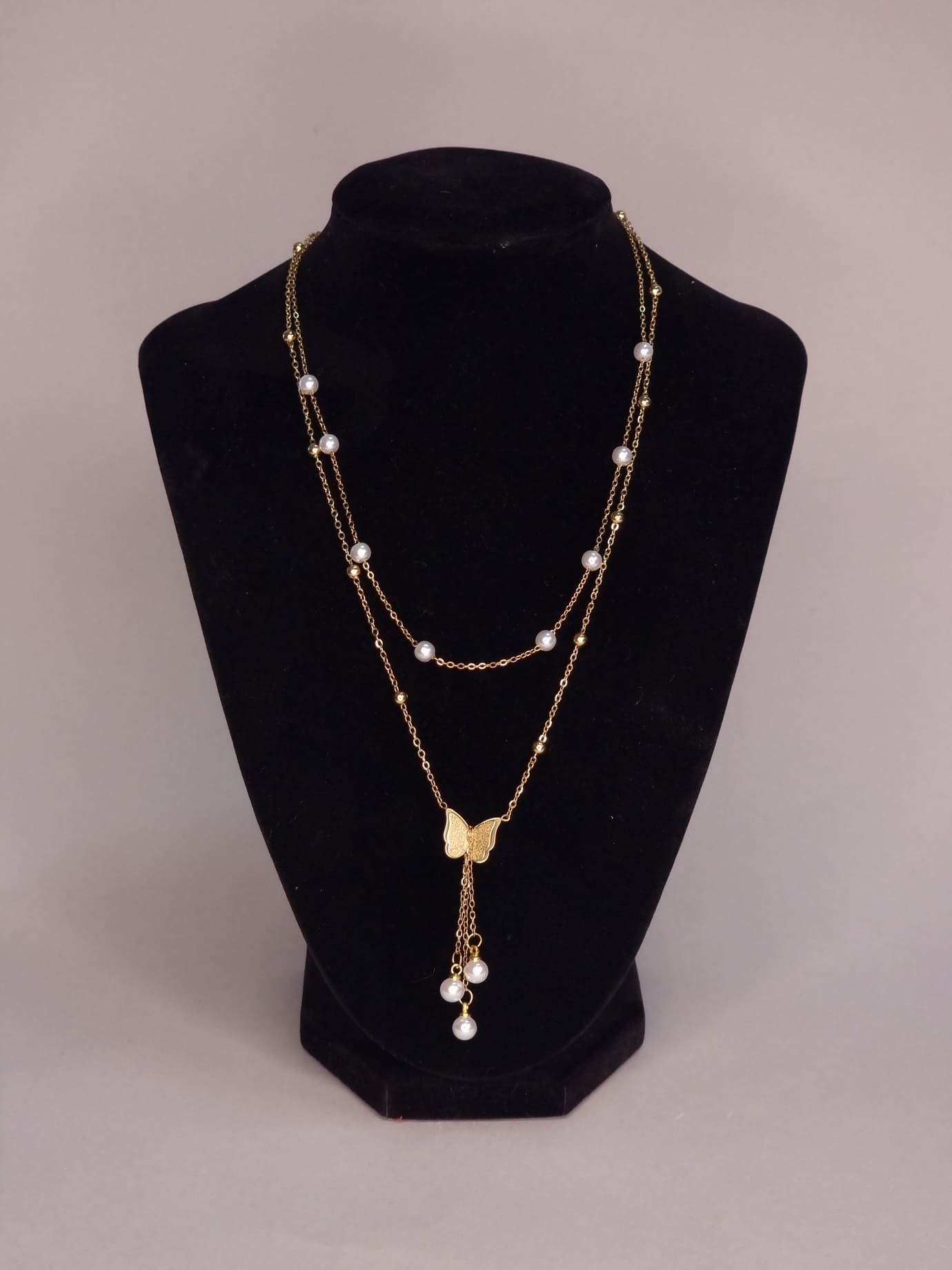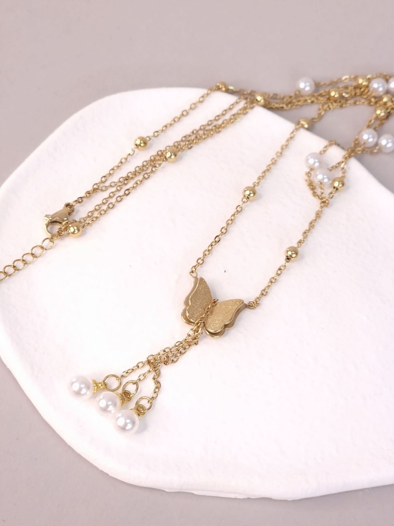 Κολιέ Ατσάλι Διπλό Πέρλα Πεταλούδα