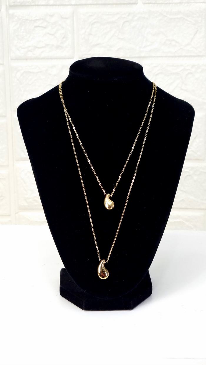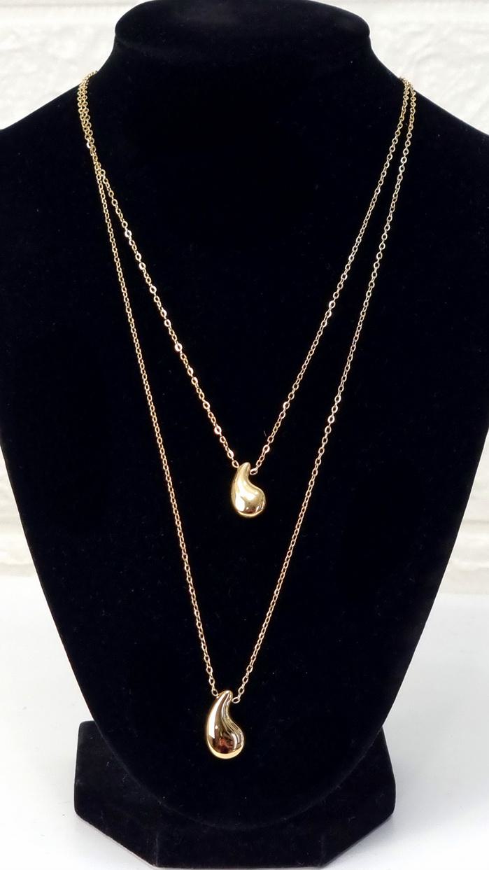 Διπλό κολιέ με σχέδιο δάκρυ σε χρυσή απόχρωση. Διαθέτει ρυθμιζόμενο κούμπωμα.